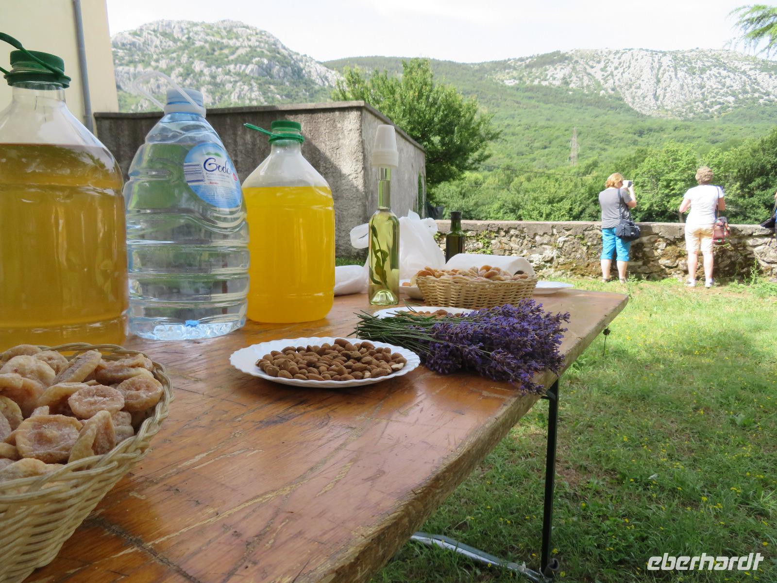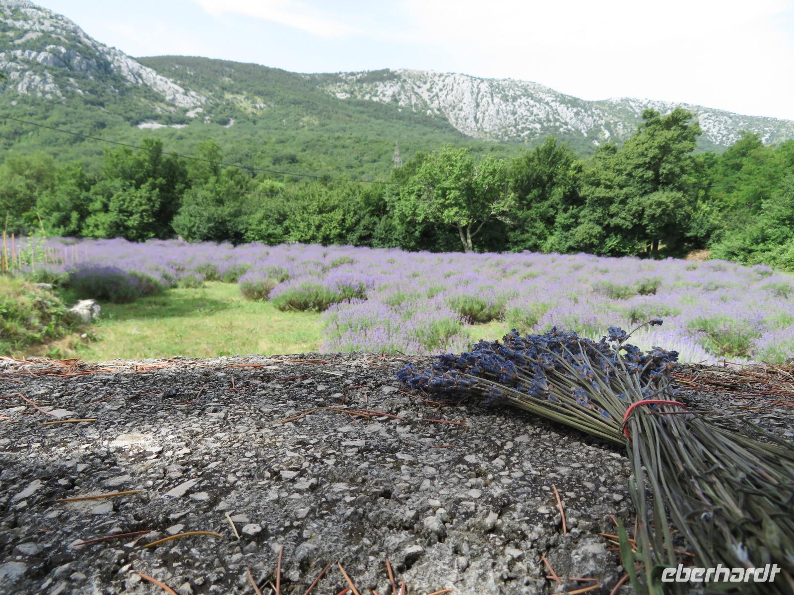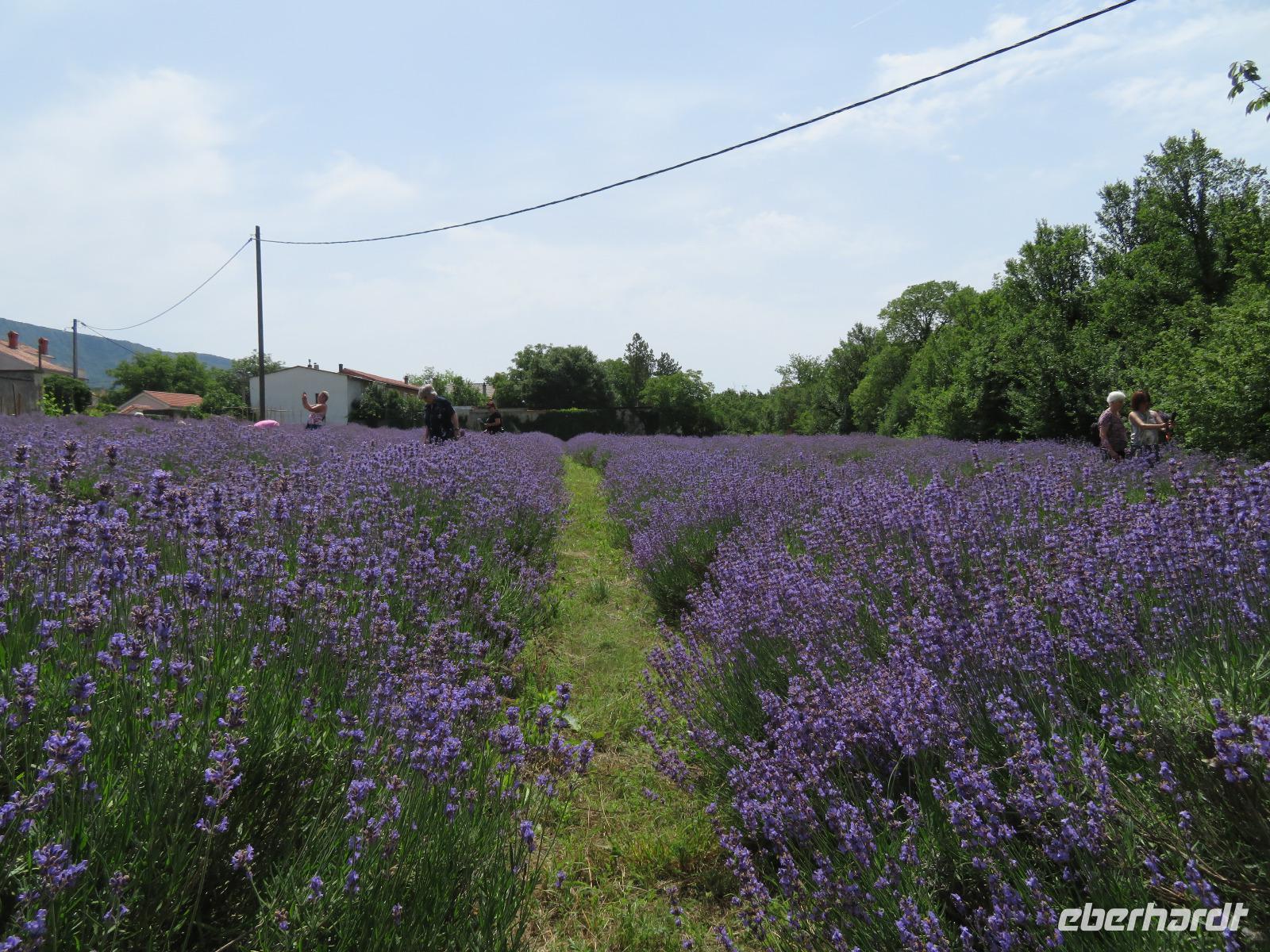 Nach einem guten Frühstück startete unser Ausflug in das Weintal Vinodol. Wir fuhren wieder von der Insel auf das Festland und Veljko erzählte über die Besonderheit des Lavendels und der kroatischen Weine. Wir fuhren ein Stück entlang der adriatischen Magistrale und kamen im kleinen Dorf Tribalj an. Dort trafen wir unter anderem auf seinen Bruder, der ebenfalls mit Gästen unterwegs zur Lavendelernte war. Tatjana, die Besitzerin des Lavendelfeldes, begrüßte uns herzlich ... natürlich mit einem kleinen Salbeischnaps. Wir nahmen Platz und lauschten gespannt den Ausführungen von Tatkjana und Veljkos Bruder, die uns viele Informationen zum Anbau und Nutzen des vielfältig einsetzbaren Lavendels gaben. Nach einer kleinen Erfrischungspause konnten wir nun an die Arbeite gehen. Endlich konnten wir unser eigenes Lavendelsträußchen für zu Hause abschneiden. Und wer wollte, auch zwei oder drei. Und wie jeder fleißige Feldarbeiter, brauchten auch wir anschließend eine kleine Stärkung. Wir fuhren nach Crikvenica und genossen ein leckeres 3-Gang-Menü auf einer Restaurant-Terrasse mit einem schönen Blick auf das adriatische Meer. Wer baden oder shoppen gehen wollte, konnte dies in der anschließenden Freizeit machen. Wieder zurück in Malinska, verabschiedeten wir unseren Busfahrer Christian und trafen uns abends auf der Hotelterrasse zur Besprechung des nächsten Tages.