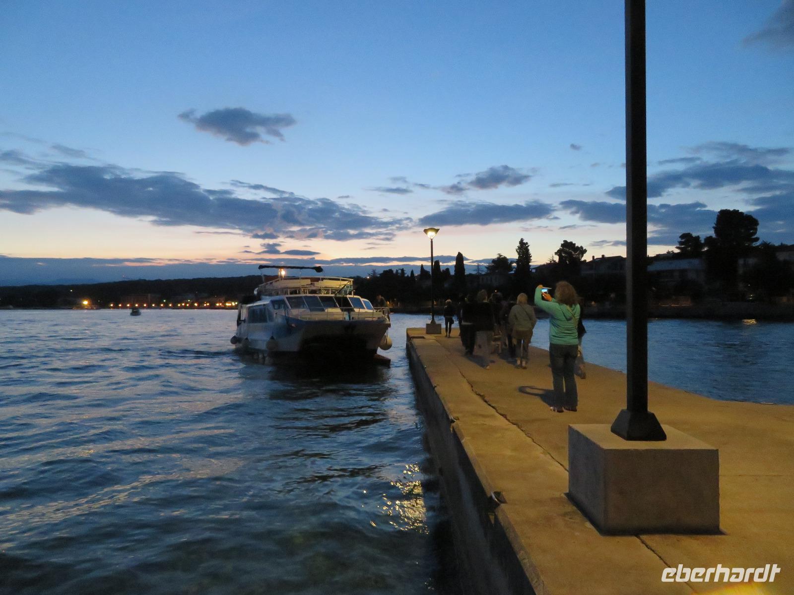 Die Wetterprognose schien für einen Sonnenaufgang auf See nicht geeignet zu sein, so entschlossen wir uns, das Programm ein wenig zu tauschen. Also hatten wir den ganzen Tag Zeit für eigene Erkundungen oder zum Entspannen. Für einen Teil der Reisegruppe war anfänglich zwar geplant, mit dem Bus nach Rijeka zu fahren, doch als sich dieser als ausgebucht erwies, änderten wir auch hier wieder kurzerhand die Tagespläne. Wir fuhren spontan in das kleine hübsche Städtchen Krk. Ein paar Gäste der Ausflugsgruppe entschlossen sich trotzdem, auf den späteren Bus nach Rijeka zu warten oder entspannt mit dem Taxi in die Hafenstadt auf dem Festland zu fahren. Am Abend trafen wir uns wieder zum gemeinsamen Abendessen und jeder erzählte von den Erlebnissen des Tages. Wir erfuhren von einem wundervollen Wanderweg nach Porat, einem Spazierweg der sich „Paradiesweg" nannte und netten Taxifahrern, die mit unseren Reisegästen nach Rijeka und zurück unterwegs waren.
