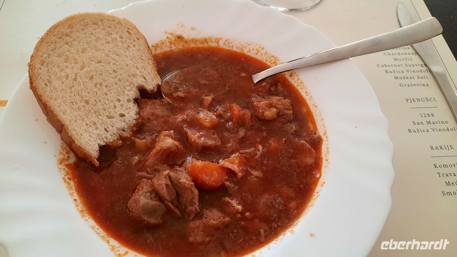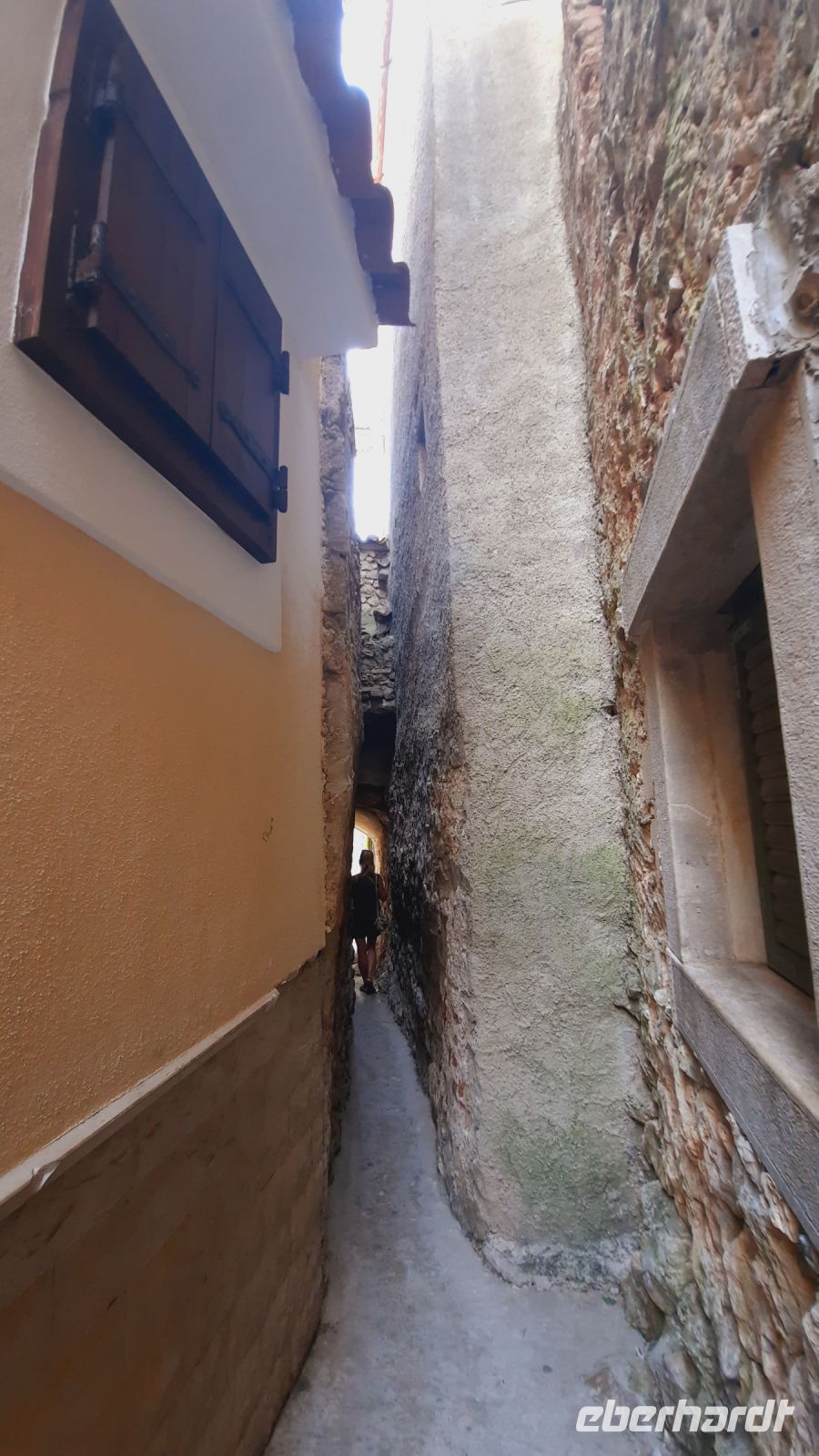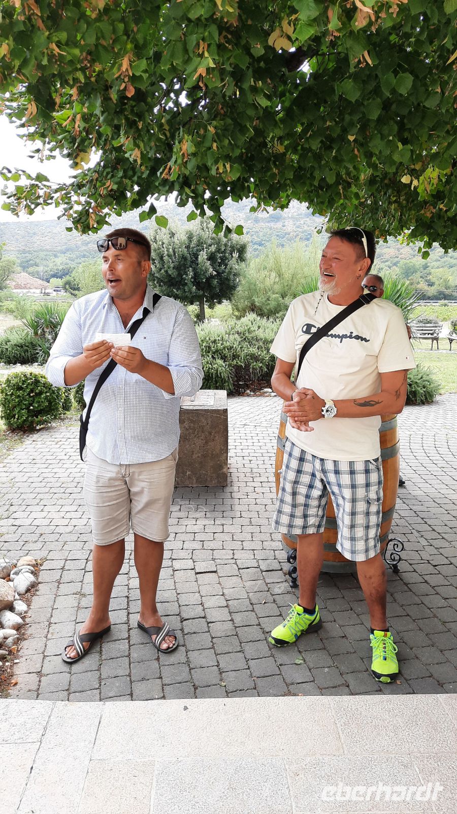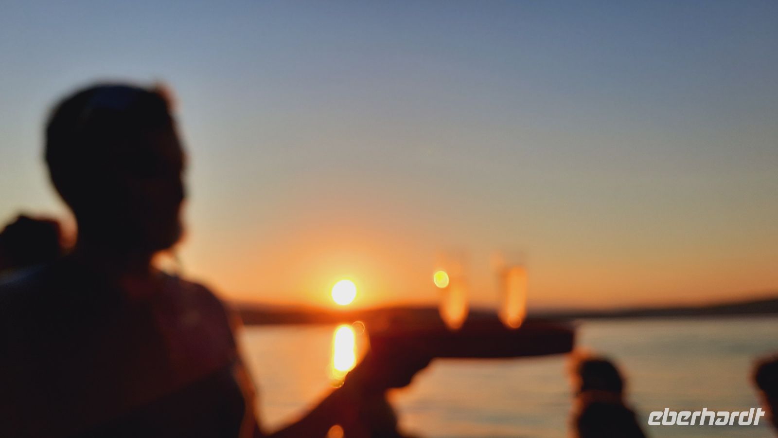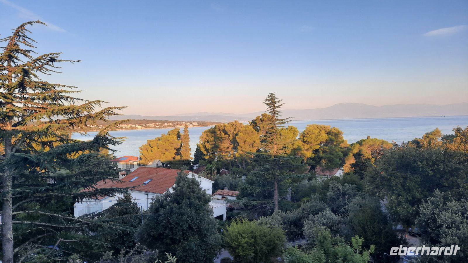 Der frühe Vogel fängt den Wurm - allerdings waren wir am heutigen Tag so zeitig unterwegs, dass alle Vögel wahrscheinlich noch schliefen. 6 Uhr legte unser Katamaran am Hotel ab und schipperte mit uns auf das Meer hinaus. Nach dem ersten Kaffee mit Schoko-Croissant wurden wir munterer und warteten gespannt auf die ersten Sonnenstrahlen. Durch ein paar kleine Wolken über dem Velebit-Gebirge gestaltete sich der Aufgang etwas spannend aber dann endlich war sie da. Wir stießen auf den neuen Tag mit einer Runde Sekt an und genossen die warmen Sonnenstrahlen im Gesicht. Pünktlich zum Frühstück waren wir wieder im Hotel. Anschließend trafen wir uns mit Tomy und Branko vor dem Hotel und fuhren nach Krk-Stadt. Auf dem Weg nach Krk erklärte uns Tomy die Inseln und Geschichte, wie die Kroaten entstanden sind. Insgesamt gibt es 1.242 Inseln, Eiland und Klippen und davon sind nur ganze 67 Inseln bewohnt. Wir schlenderten entlang des Hafens in die Altstadt und stoppten einige Male, um den Ausführungen unseres lieben Reiseleiters zu folgen. So entdeckten wir eine alte Waschstelle, eine Olivenölpresse, die 24-stündige Uhr am Rathaus, kleine urige Gassen, einen tollen Eisladen und das Kastell mit seinen mächtigen Mauern und dem Frakopaner-Turm. Als unsere Besichtigungsrunde beendet war, konnten wir bei ein wenig Freizeit die kleinen Gassen auf eigene Faust erkunden und ein paar Souvenirs für die Lieben zu Hause erstehen. Unser Ausflug führte uns anschließend nach Vrbnik. Unterwgs erklärt uns Tomy die Besonderheit der britischen Schafe, die im Meer trinken und über Olivenbäume. Wir sehen den größten privaten Hafen in Punat und eine kleine vorgelagerte Klosterinsel, wo noch immer Franziskanermönche leben. Wir fuhren durch das größte Weingebiet der Insel und erfuhren die Unterschiede der verschiedenen angebauten Weine. In Vrbnik angekommen, bummelten wir gemeinsam durch die Altstadt und konnten herrliche Ausblicke auf die Küste genießen. Tomy ließ es sich auch nicht nehmen, uns auch die schmalste Gasse von ganz Kroatien zu zeigen. Nach diesen Anstrengungen, mussten wir uns wieder stärken. In einem örtlichen Restaurant erlebten wir eine Weinverkostung mit kulinarischen Spezialitäten. Wir ließen uns den getrockneten Schinken und Käse schmecken und probierten die verschiedenen Weine. Anschließend konnte man sagen, dass wir zum Lachen in den Keller gingen...denn da gab es noch so einigen landestypischen Schnaps zum testen. Gut gelaunt mit einigem Wein im Gepäck fuhren wir zurück zum Hotel und ließen die Seele bis zum Abendessen baumeln. Den gemeinsamen Abend verbrachten wir gesellig auf der großen Hotelterrasse.