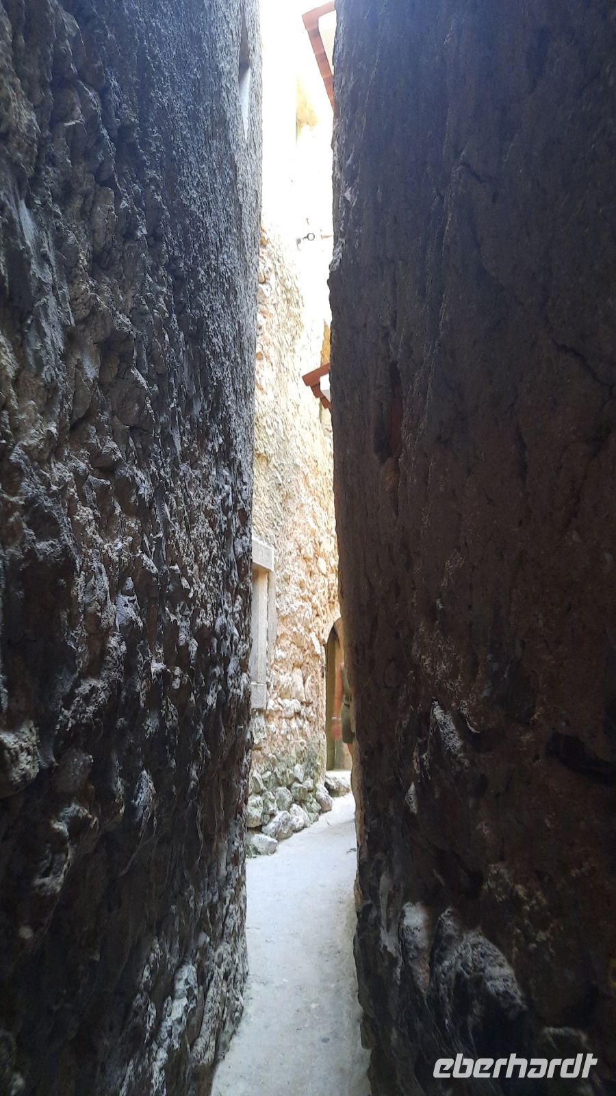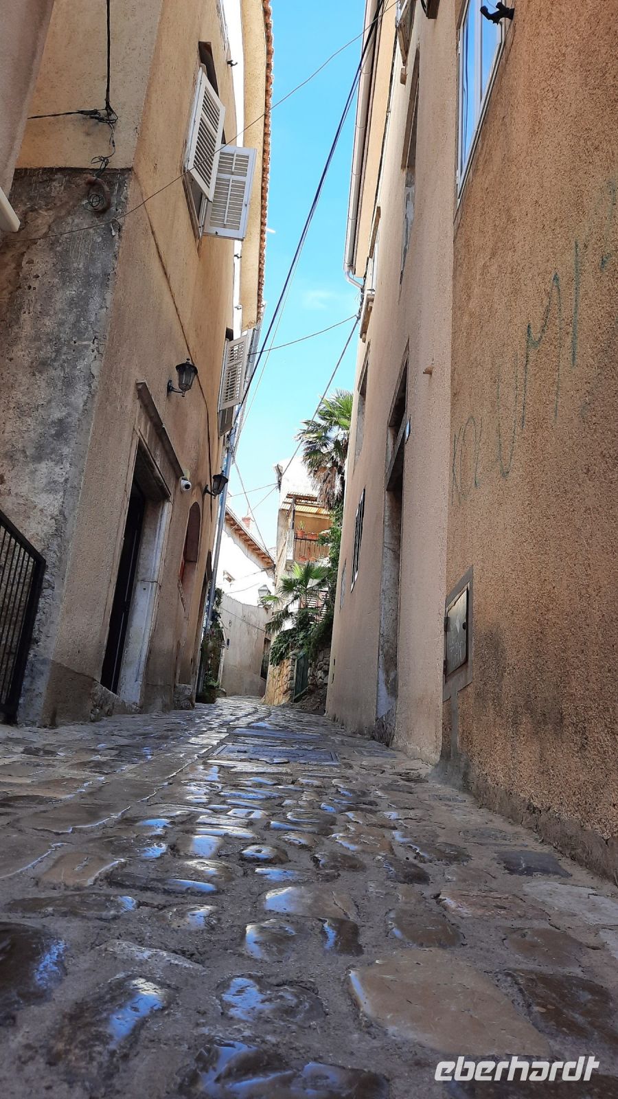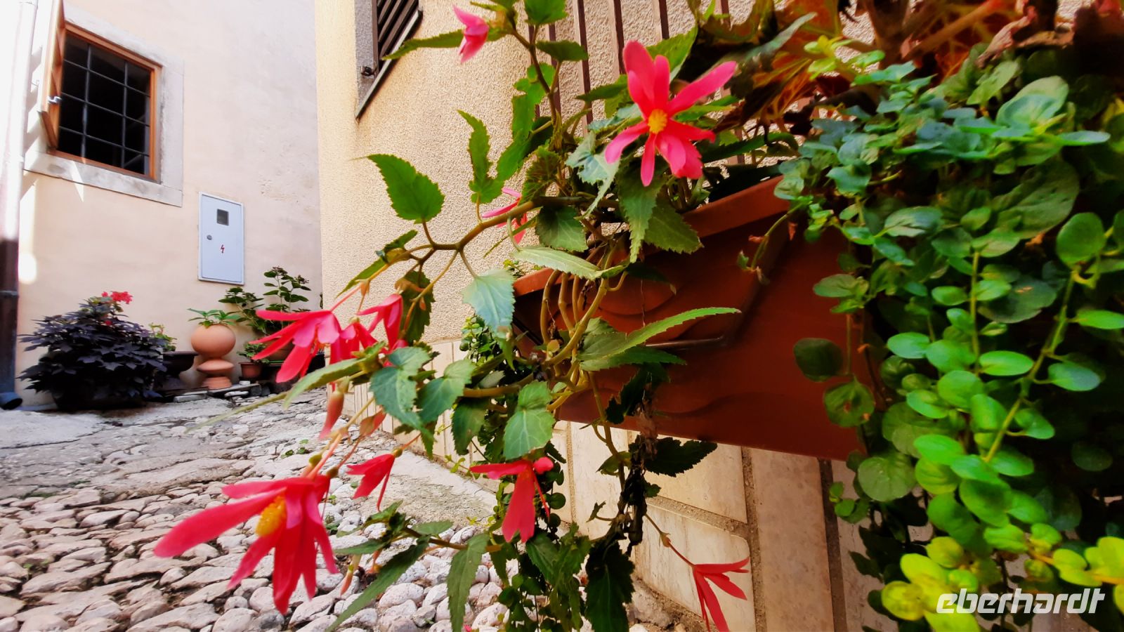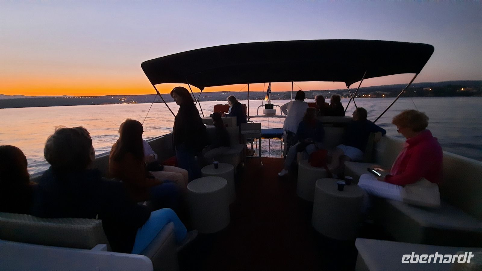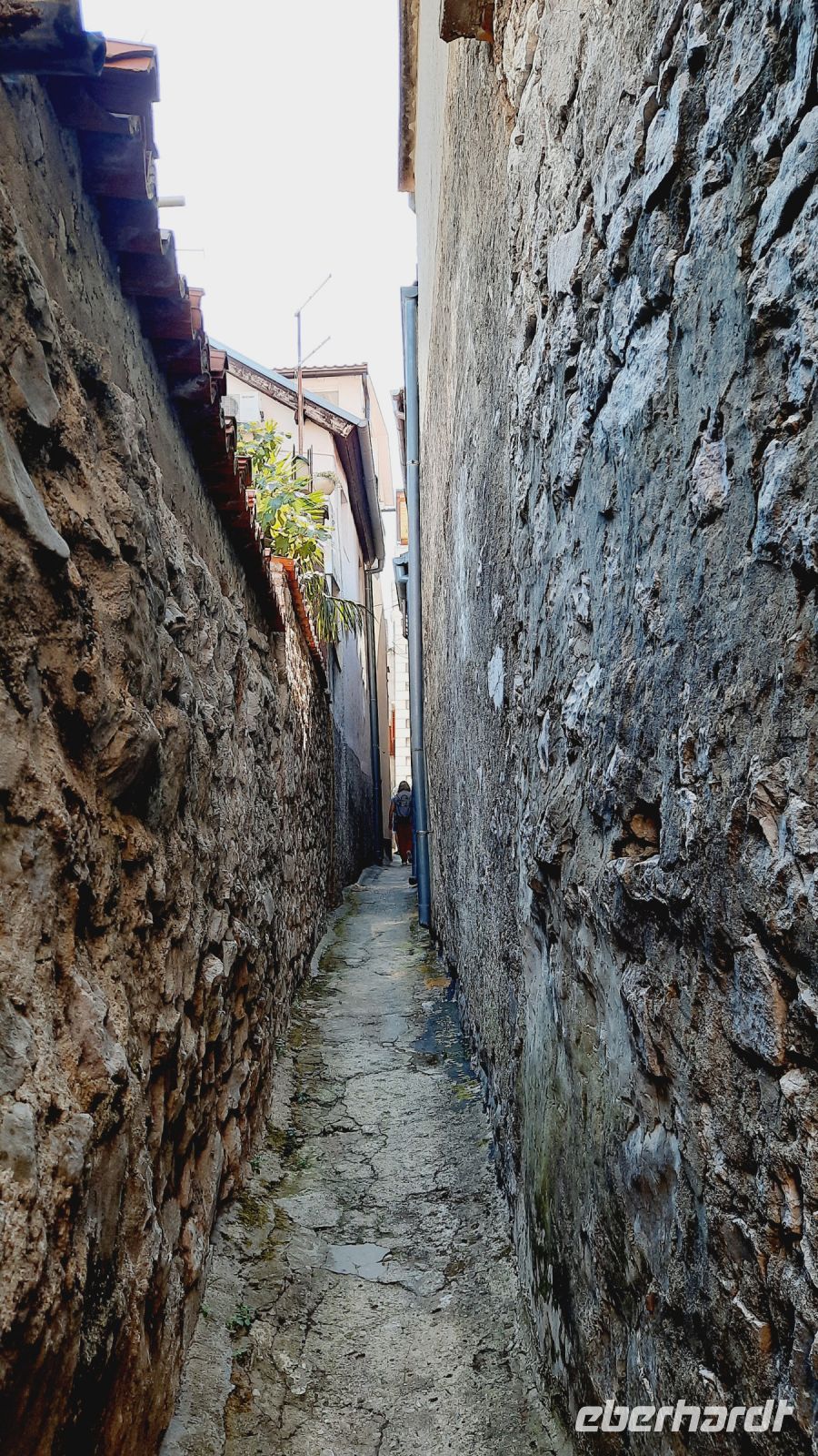 Der frühe Vogel fängt den Wurm - allerdings waren wir am heutigen Tag so zeitig unterwegs, dass alle Vögel wahrscheinlich noch schliefen. 6 Uhr legte unser Katamaran am Hotel ab und schipperte mit uns auf das Meer hinaus. Nach dem ersten Kaffee mit Schoko-Croissant wurden wir munterer und warteten gespannt auf die ersten Sonnenstrahlen. Durch ein paar kleine Wolken über dem Velebit-Gebirge gestaltete sich der Aufgang etwas spannend aber dann endlich war sie da. Wir stießen auf den neuen Tag mit einer Runde Sekt an und genossen die warmen Sonnenstrahlen im Gesicht. Pünktlich zum Frühstück waren wir wieder im Hotel. Anschließend trafen wir uns mit Tomy und Branko vor dem Hotel und fuhren nach Krk-Stadt. Auf dem Weg nach Krk erklärte uns Tomy die Inseln und Geschichte, wie die Kroaten entstanden sind. Insgesamt gibt es 1.242 Inseln, Eiland und Klippen und davon sind nur ganze 67 Inseln bewohnt. Wir schlenderten entlang des Hafens in die Altstadt und stoppten einige Male, um den Ausführungen unseres lieben Reiseleiters zu folgen. So entdeckten wir eine alte Waschstelle, eine Olivenölpresse, die 24-stündige Uhr am Rathaus, kleine urige Gassen, einen tollen Eisladen und das Kastell mit seinen mächtigen Mauern und dem Frakopaner-Turm. Als unsere Besichtigungsrunde beendet war, konnten wir bei ein wenig Freizeit die kleinen Gassen auf eigene Faust erkunden und ein paar Souvenirs für die Lieben zu Hause erstehen. Unser Ausflug führte uns anschließend nach Vrbnik. Unterwgs erklärt uns Tomy die Besonderheit der britischen Schafe, die im Meer trinken und über Olivenbäume. Wir sehen den größten privaten Hafen in Punat und eine kleine vorgelagerte Klosterinsel, wo noch immer Franziskanermönche leben. Wir fuhren durch das größte Weingebiet der Insel und erfuhren die Unterschiede der verschiedenen angebauten Weine. In Vrbnik angekommen, bummelten wir gemeinsam durch die Altstadt und konnten herrliche Ausblicke auf die Küste genießen. Tomy ließ es sich auch nicht nehmen, uns auch die schmalste Gasse von ganz Kroatien zu zeigen. Nach diesen Anstrengungen, mussten wir uns wieder stärken. In einem örtlichen Restaurant erlebten wir eine Weinverkostung mit kulinarischen Spezialitäten. Wir ließen uns den getrockneten Schinken und Käse schmecken und probierten die verschiedenen Weine. Anschließend konnte man sagen, dass wir zum Lachen in den Keller gingen...denn da gab es noch so einigen landestypischen Schnaps zum testen. Gut gelaunt mit einigem Wein im Gepäck fuhren wir zurück zum Hotel und ließen die Seele bis zum Abendessen baumeln. Den gemeinsamen Abend verbrachten wir gesellig auf der großen Hotelterrasse.