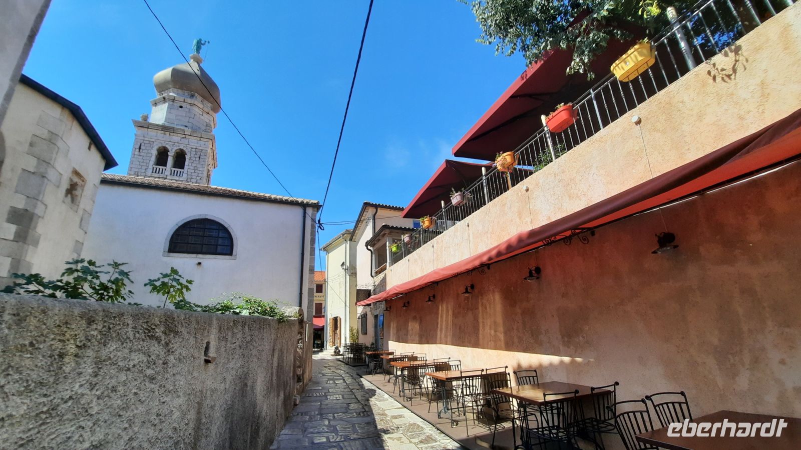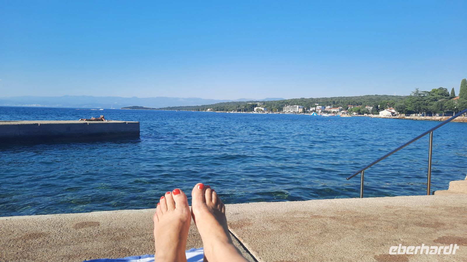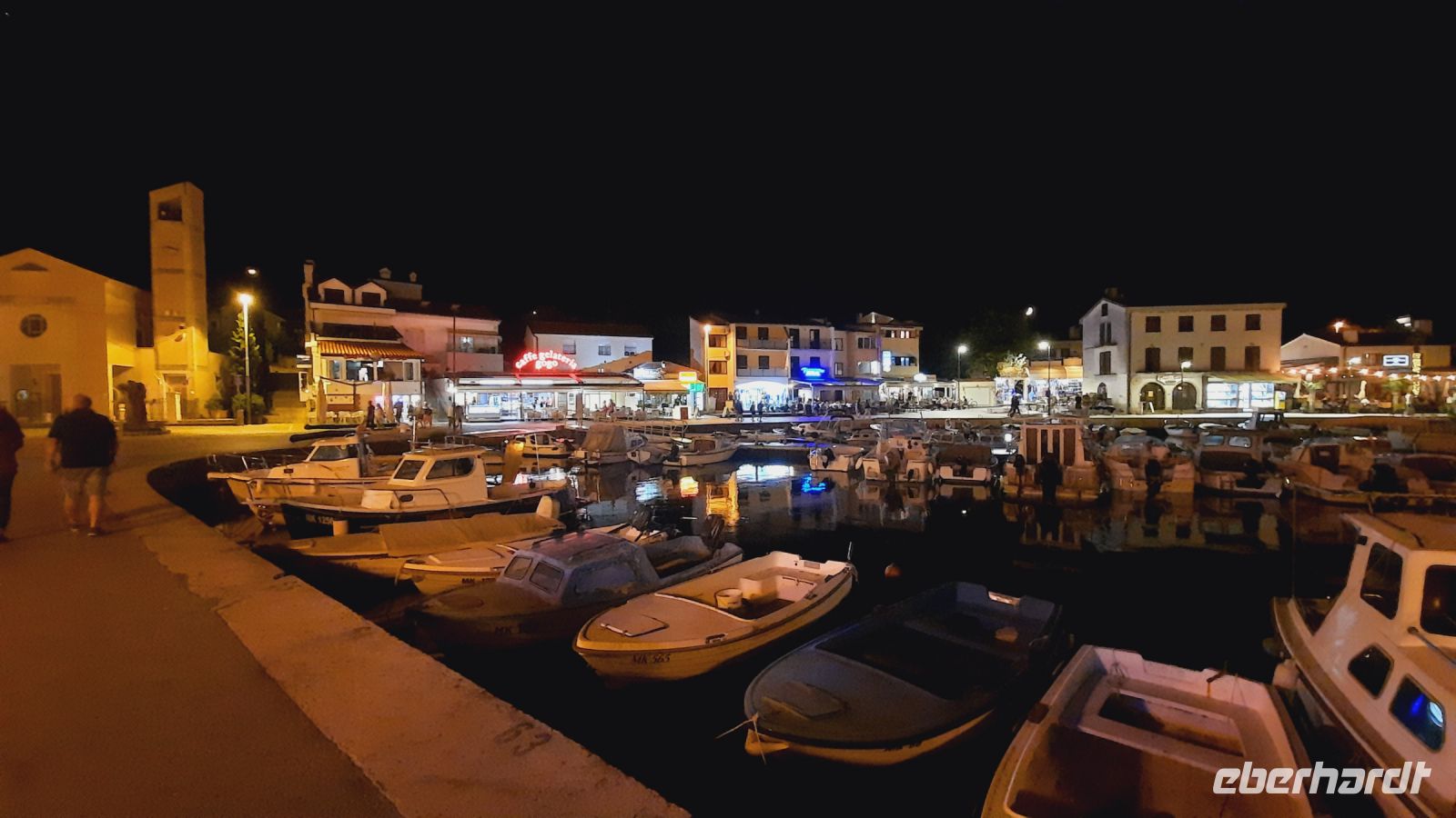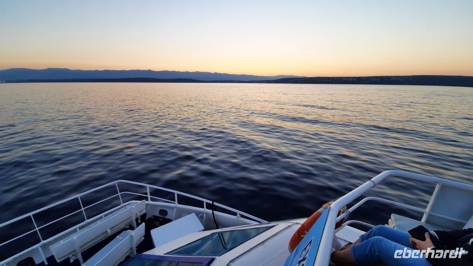 Wir erreichten eine kleine Bucht auf der Insel Cres und gingen von Bord. Ein leckeres Grill-Fischessen stillte unseren Hunger und die anschließende Freizeit nutzten viele, um ausgiebig das glasklare Wasser zu genießen. Vergnügt und gut gelaunt fuhren wir mit Sommermusik wieder zurück zur Insel Krk und genossen erneut ein Bad im Meer. Nach dem Abendessen schlenderten noch einige Gäste bis zum hübschen Hafen.
