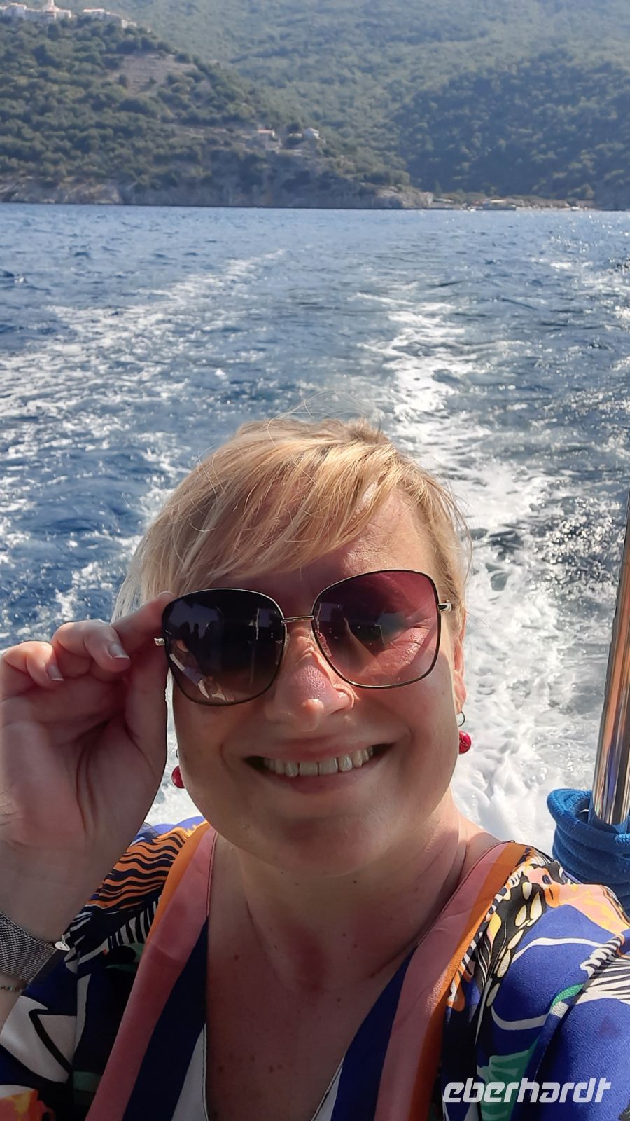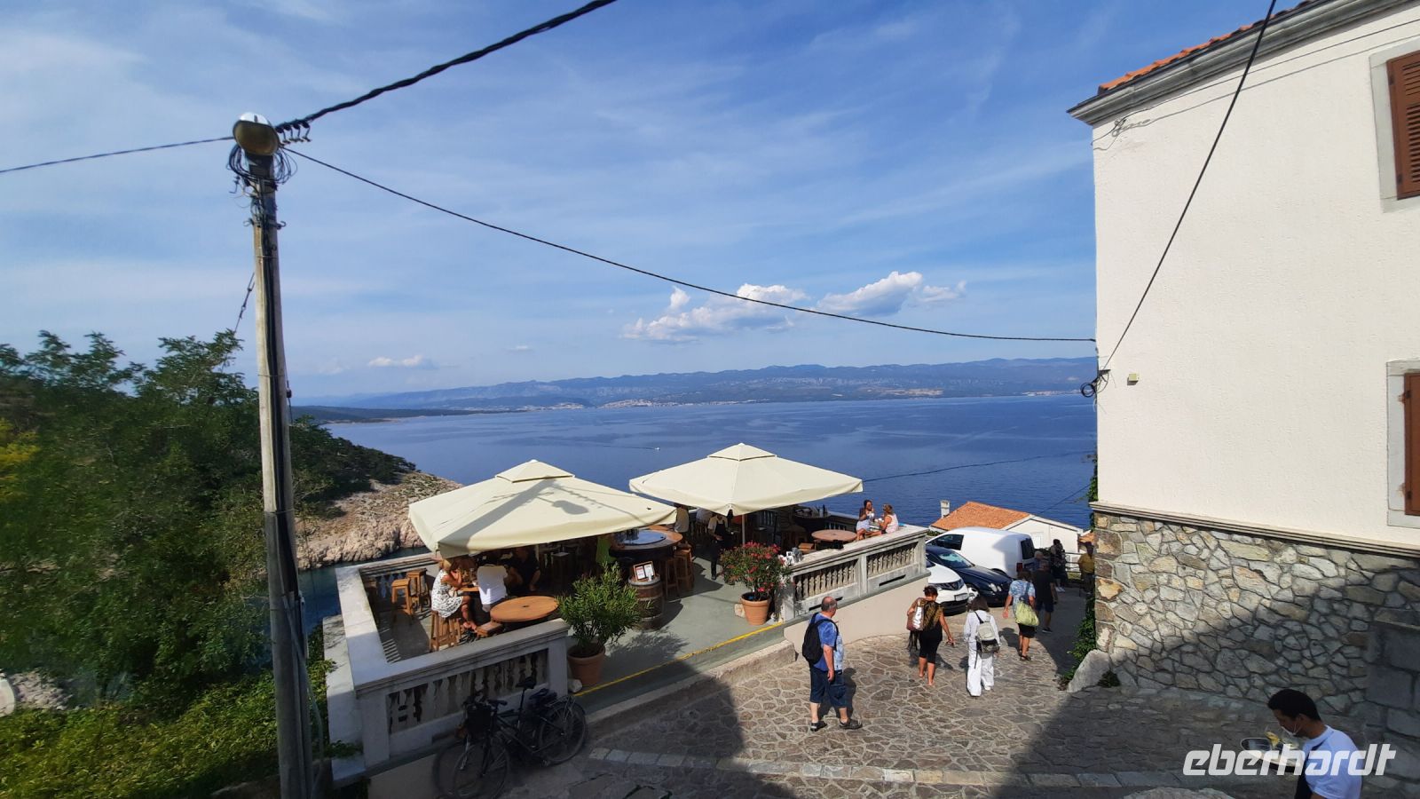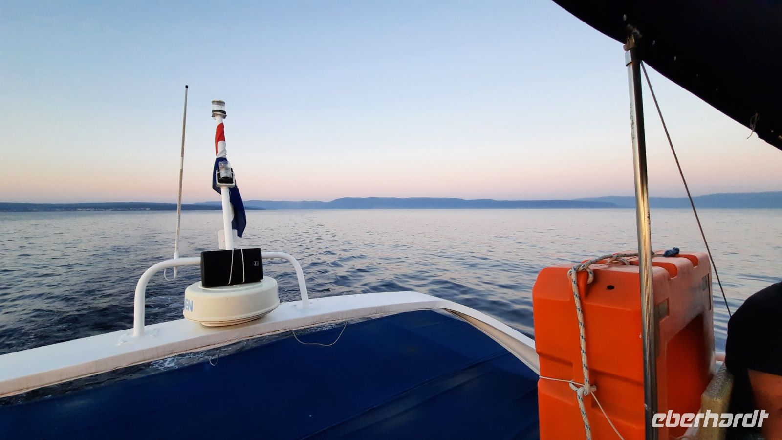 Nach einem guten Frühstück trafen wir uns am Vormitttag zu einem ganztägigen Bootsausflug. Wir bestiegen unseren Katamaran vom Vortag und die Bootsfahrt startete. Wir hielten noch kurz im Hafen von Malinska um weitere Gäste an Bord zu begrüßen und fuhren auf das Meer hinaus. Unterwegs genossen wir die Ausblicke zur Küste und zu kleinen Buchten, uns wurde typisch Kroatischer Grappa mit Kirschen gereicht und Tomy erzählte über den für die Insel Cres typischen Weißkopf-Gänsegeier. Neben dem Albatros und dem Condor zählt dieser zu den größten fliegenden Vögeln weltweit!