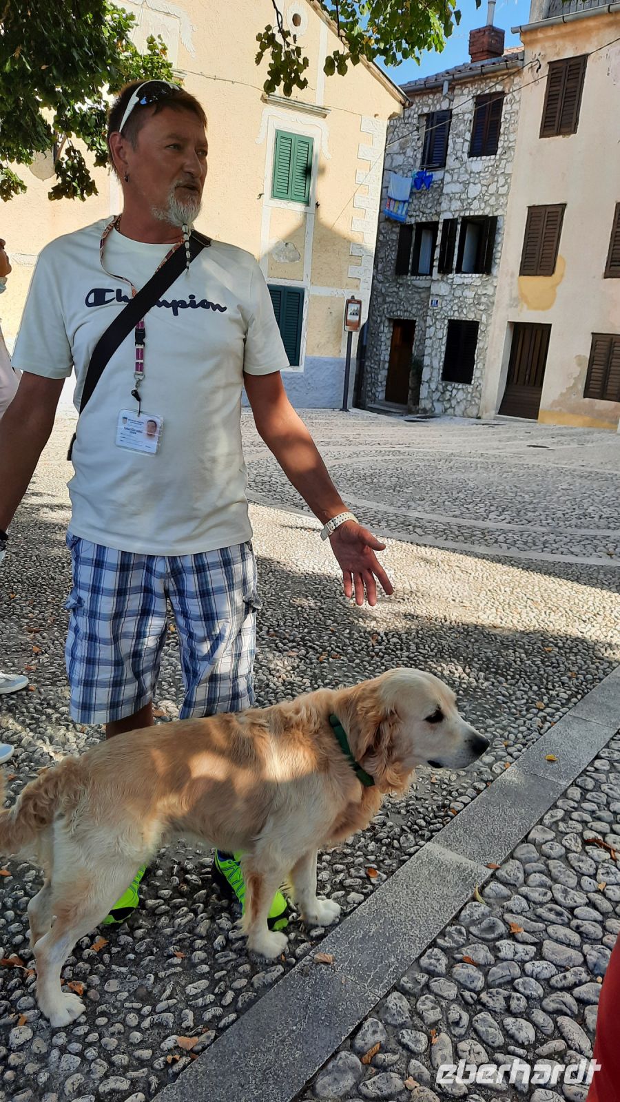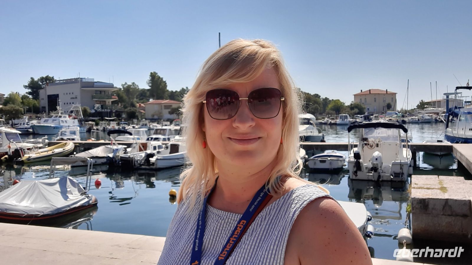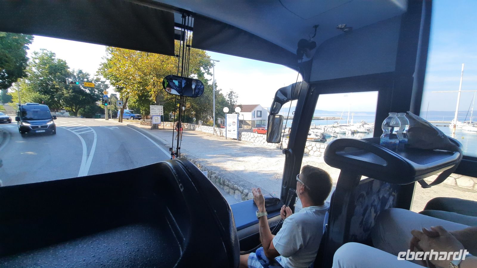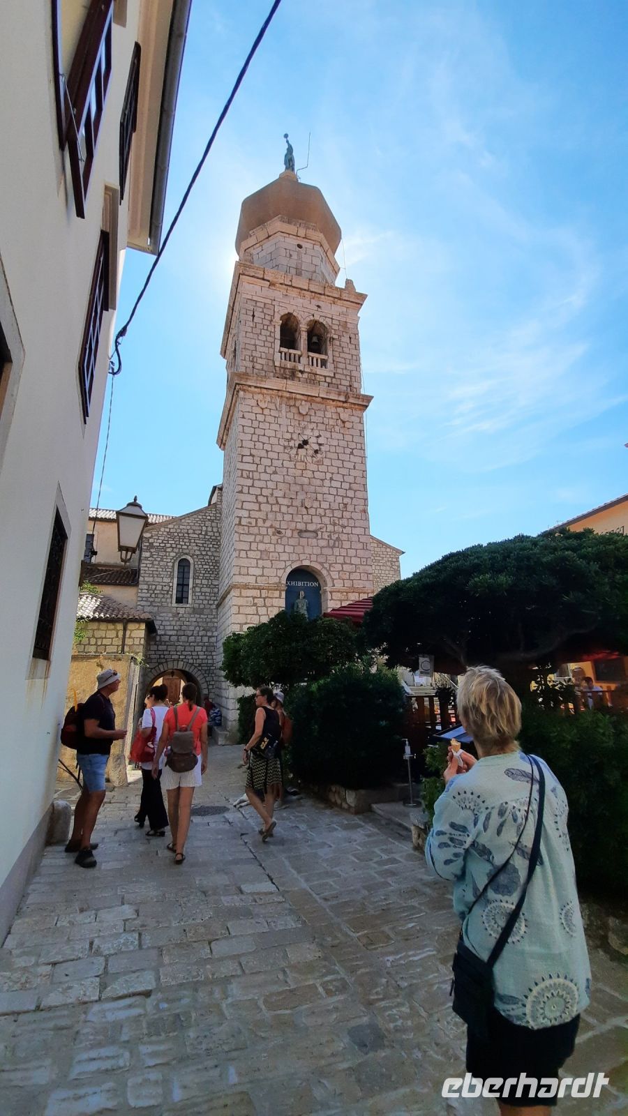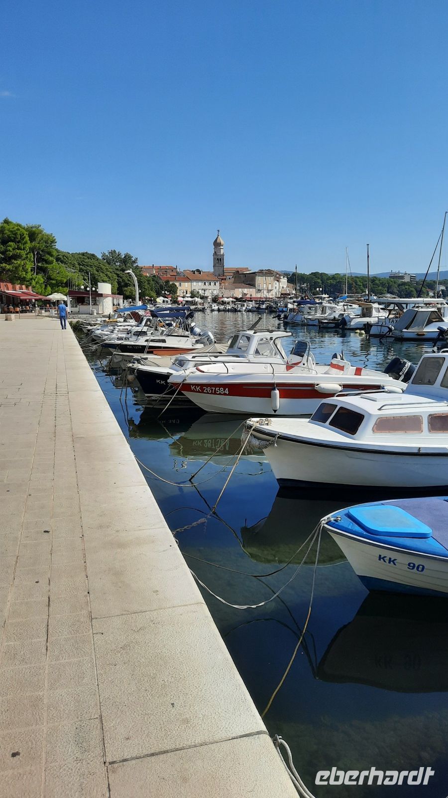 Auf nach Kroatien - zur Urlaubsinsel Krk. Der Tag begann für viele Gäste der Eberhardt-Reisegruppe sehr zeitig, kamen wir doch aus allen Ecken des Landes. Wir trafen uns am neuen Berliner Flughafen, checkten ein und freuten uns auf den Start der Reise. Nach kurzen 1 ½ Stunden Flug erreichten wir Rijeka, den winzigen Flughafen der Mittelmeerinsel. Dort erwartete uns schon unser Reiseleiter Tomy. Anscheinend bekannt, wie ein bunter Hund, brachte er Stimmung in unsere, von der langen Anreise etwas müde Gruppe. Das wird lustig, freuten wir uns. Gemeinsam fuhren wir nach Malinska, ein beschaulicher kleiner Urlaubsort in einer Bucht im Nordwesten der Insel Krk. Wir bezogen unsere Zimmer in unserem 4-Sterne-Hotel Malin und konnten den Rest des Tages bei sommerlichen Temperaturen genießen. Viele Gäste nutzten die Gelegenheit und testeten schon mal das glasklare Wasser der Adria, andere erkundeten die Gegend und tranken einen Kaffee. Bis spät in die Nacht erreichten noch sechs weitere Eberhardt-Gäste das Hotel, sodass wir am nächsten Tag vollzählig waren.