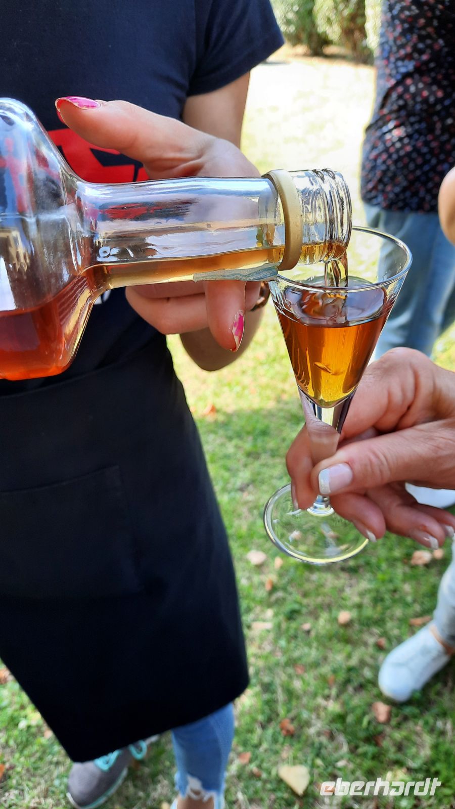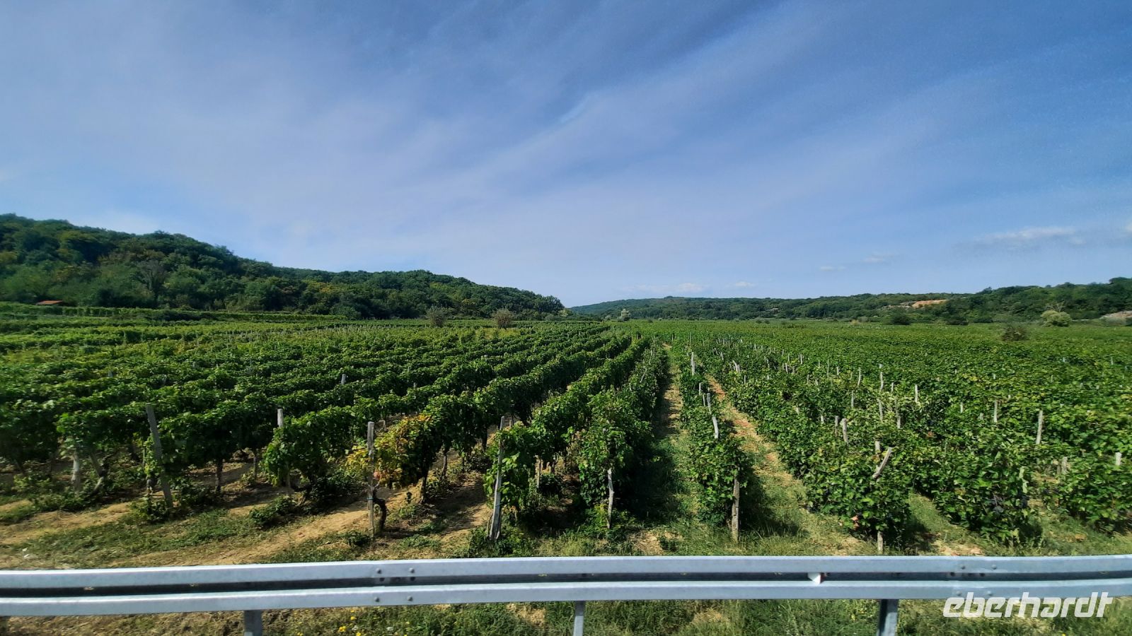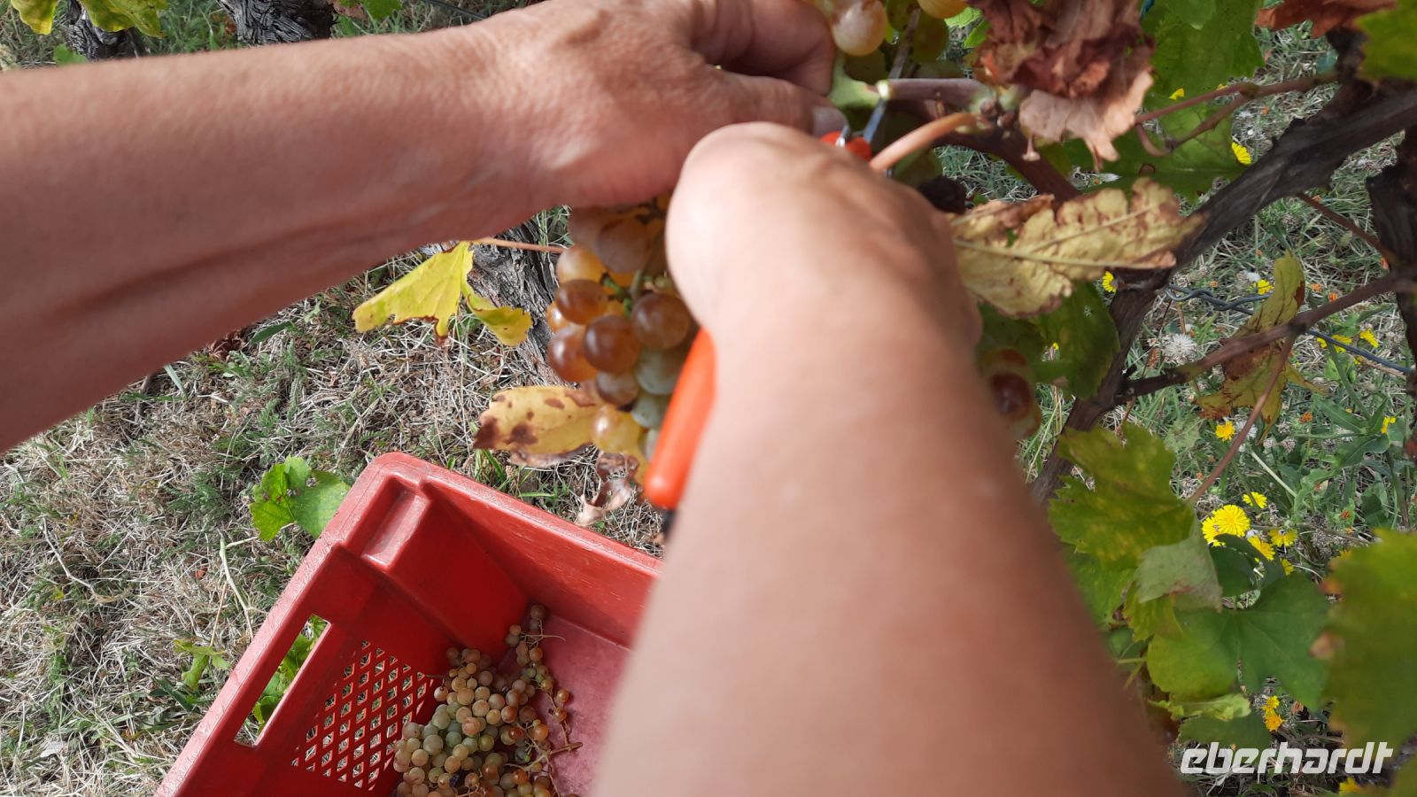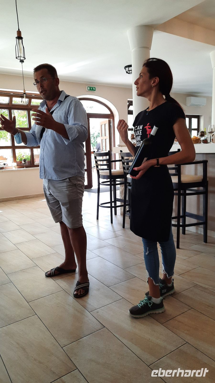 Wir starteten am Vormittag zu unserem Ausflug im Zeichen des Weines. Tomy erklärte wieder auf bekannt charmante Weise den Tag und bereitete die Gäste auf die „körperlich harte Arbeit“ vor, die ihnen bevorstand. Er erzählte außerdem über das Leben, den Verdienst und Versicherungen in Kroatien. Wir fuhren entlang der Küste, immer uns rechts begleitend, die Insel Krk. Wir fuhren vorbei an an Czribniza, wo viele Amphoren gefunden wurden. Von Tomy erfuhren wir auch über männliche und weibliche Amphoren und dass dies natürlich der Form der Form abgeleitet werden kann. Bevor wir zur Weinlese kamen, zeigte uns Tomy seine hübsche kleine Heimatstadt Novi bei einem Rundgang und wir konnten sogar Tomys Hund Alex ein paar Streicheleinheiten geben. Eine kurze Busfahrt später erreichten wir das Weinanbaugebiet, wo wir herzlich von Schatzi Miro und kroatischer Folkloremusik empfangen wurden. Wir genossen unseren Aufenthalt auf dem Weingut sehr. Wir kosteten verschiedene Liköre, erkundeten den Weinkeller mit seinen riesigen Fässern und schnappten uns anschließend die Scheren und lasen im Takt zur Musik den süßen Wein - kistenweise! Wer gut arbeitet muss auch gut essen. Wieder genossen wir den typischen Schinken mit Käse und lobten den Koch für sein leckeres Gulasch. Natürlich wurden auch die Weinleseköniginnen gebührend gekürt und wir verabschiedeten uns von Schatzi Miro und den anderen lieben Mitarbeitern des Weingutes. Vergnügt fuhren wir entlang der Küste zurück nach Malinska und tauschten das Erlebte am Abend aus.