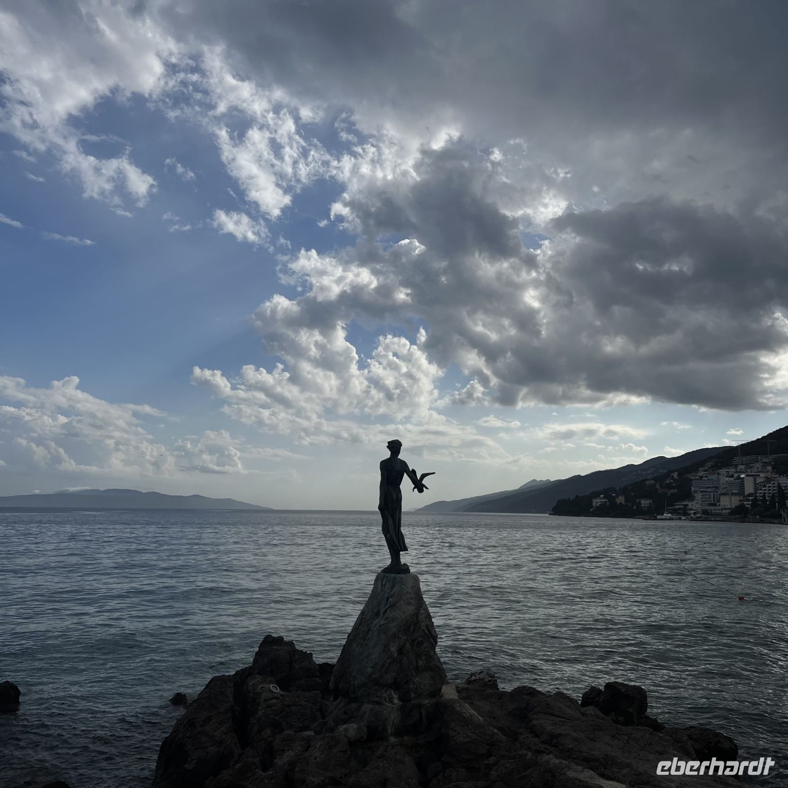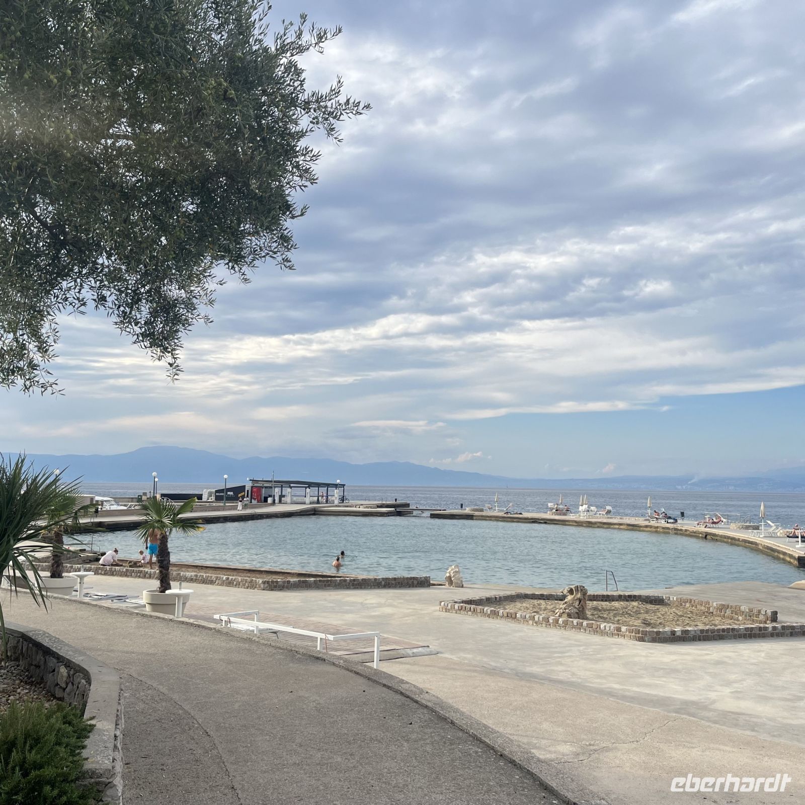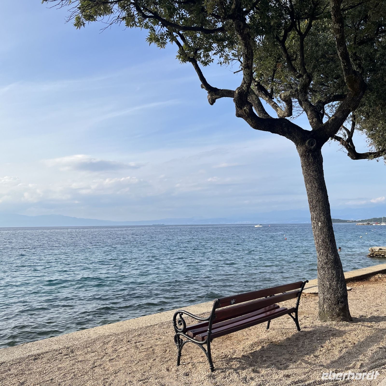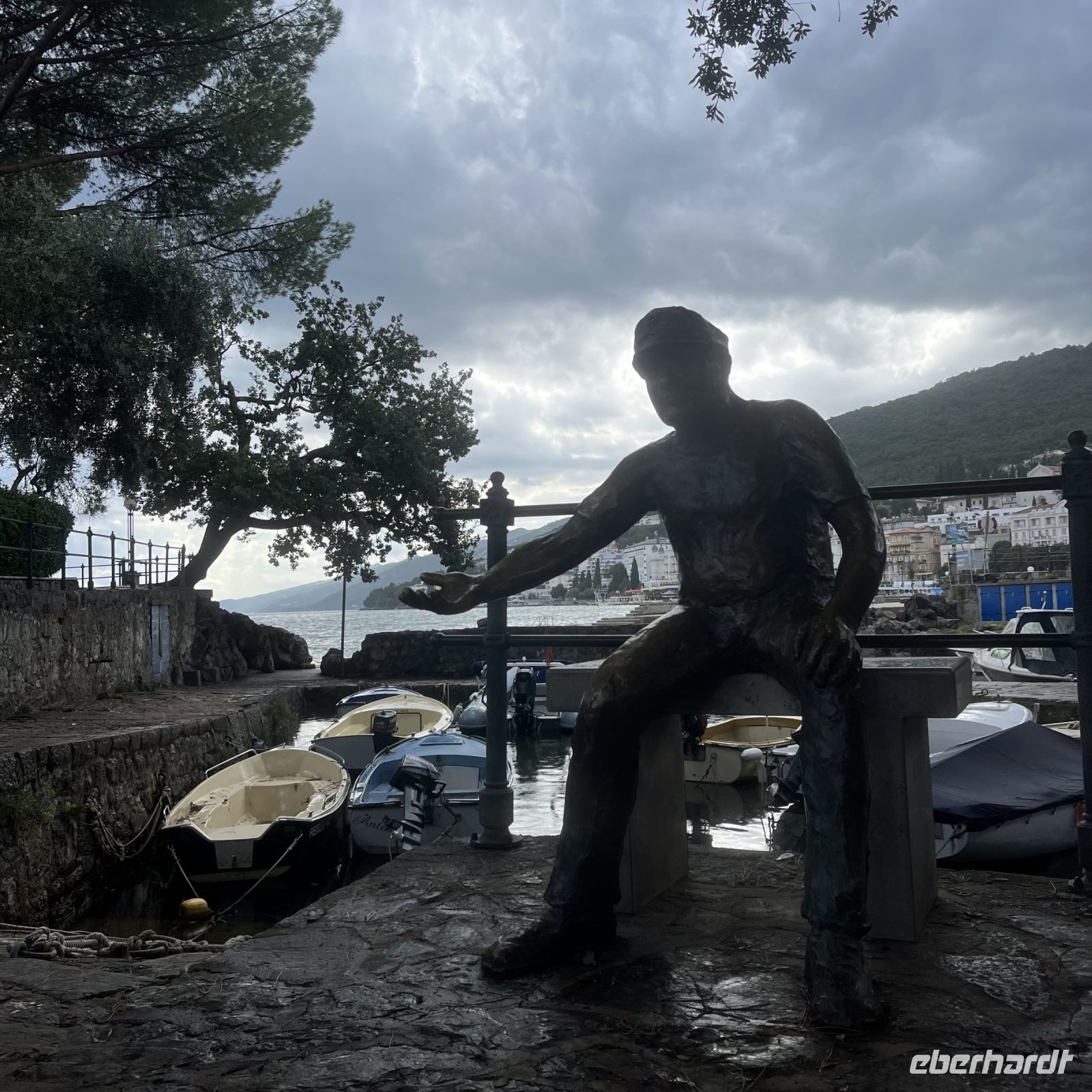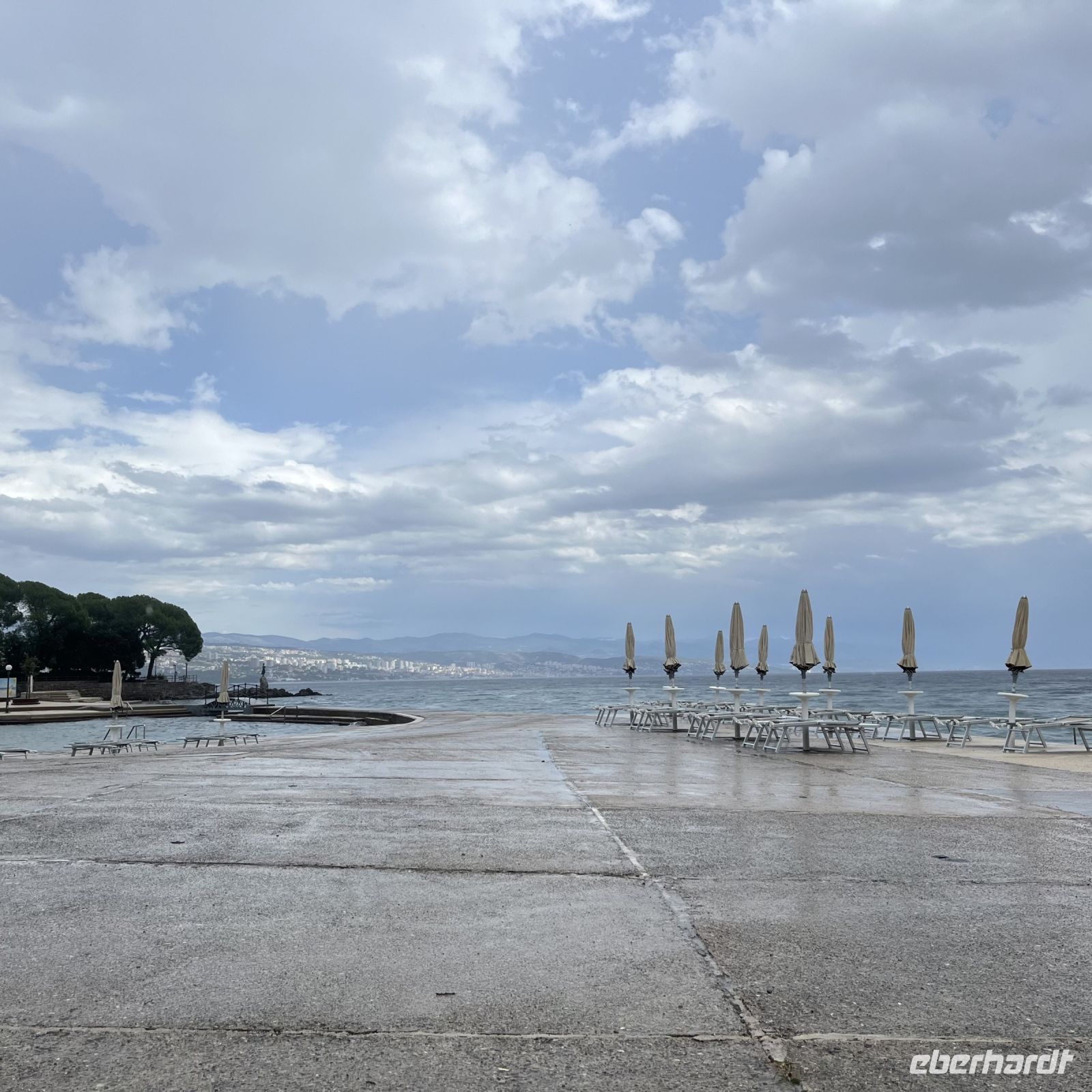 Der heutige Tag stand zur freien Verfügung, aber wir waren uns einig, dass wir an dem fakultativen Ausflug nach Rijeka und Opatija teilnehmen würden. Zwei wunderschöne Städte mit einem besonderen Charme. Rijea hat ein paar Überraschungen für uns parat: Der graue Himmel, der Regen ankündigte, öffnete sich und es regnete heftig. Nicht weit davon entfernt erwartete uns Opatija mit seinem durch das bewölkte Wetter und den zeitweiligen Nieselregen geheimnisvoll gewordenen Charme und lud uns ein, in einem Café Schutz zu suchen und das nun bleifarbene Meer zu bewundern. Die alten Hotels, Parks und Skulpturen von einzigartiger Schönheit gaben uns einen Eindruck von der Pracht der Stadt. Langsam verlassen wir Opatija und näherten uns unserer Insel. Das Wetter wurde immer besser, und als wir dort ankamen, war der Abend so mild und angenehm, dass wir beschlossen, einen Spaziergang am Strand zu machen und vor dem Abendessen in einem Café einen Eiskaffee zu trinken.