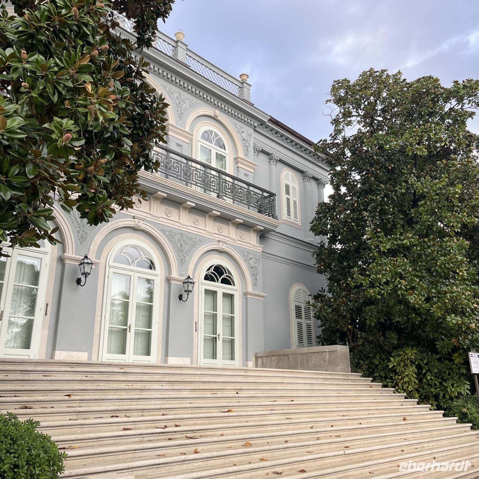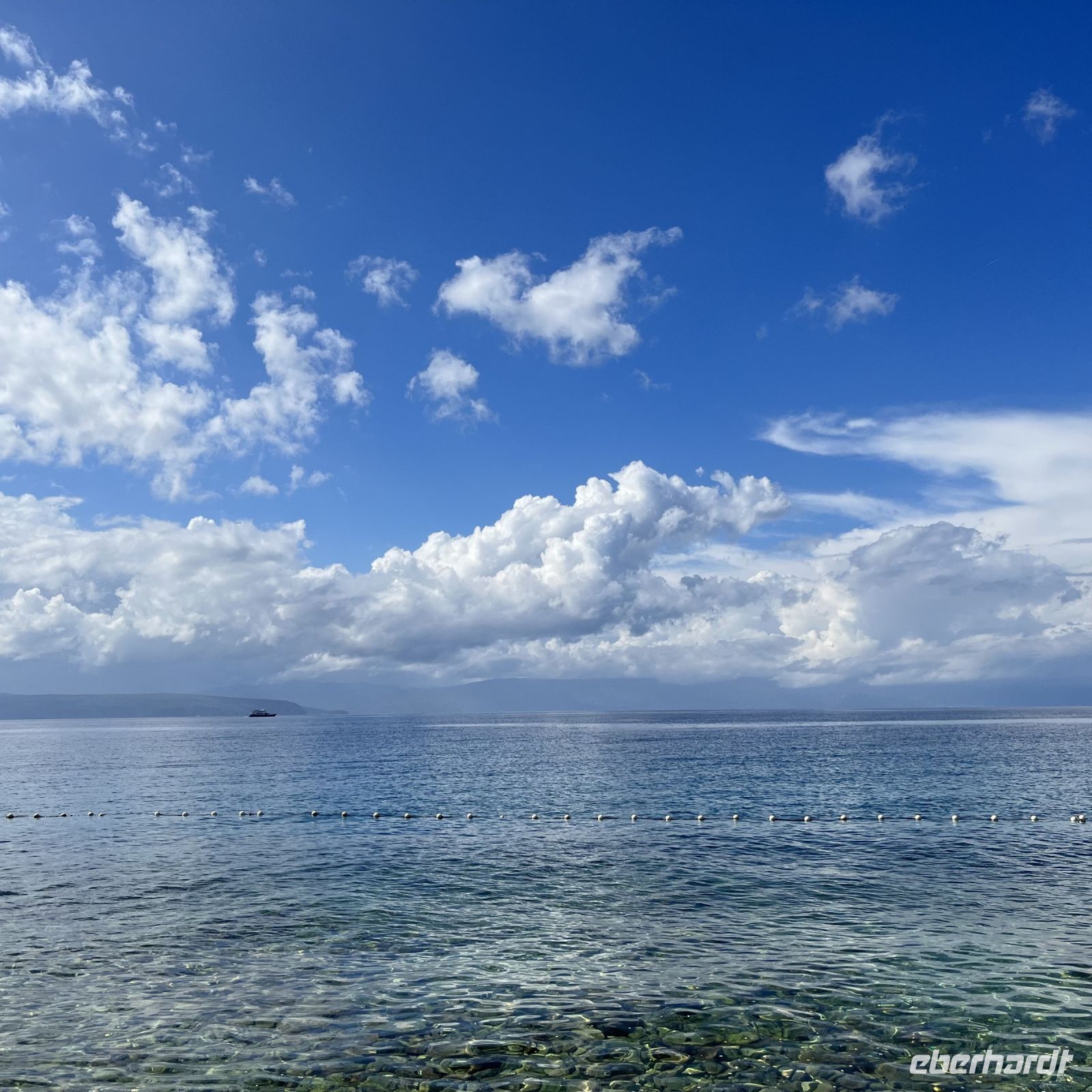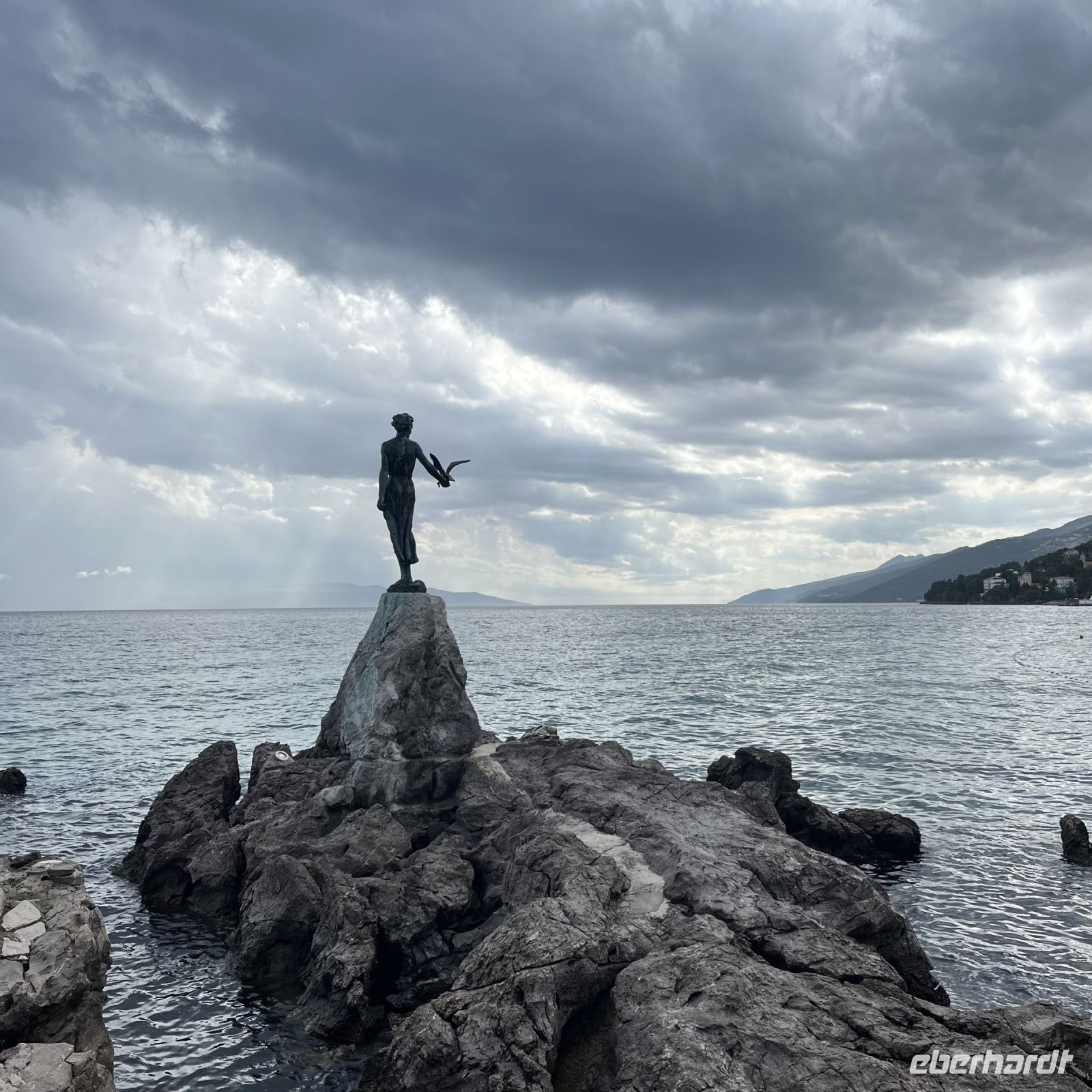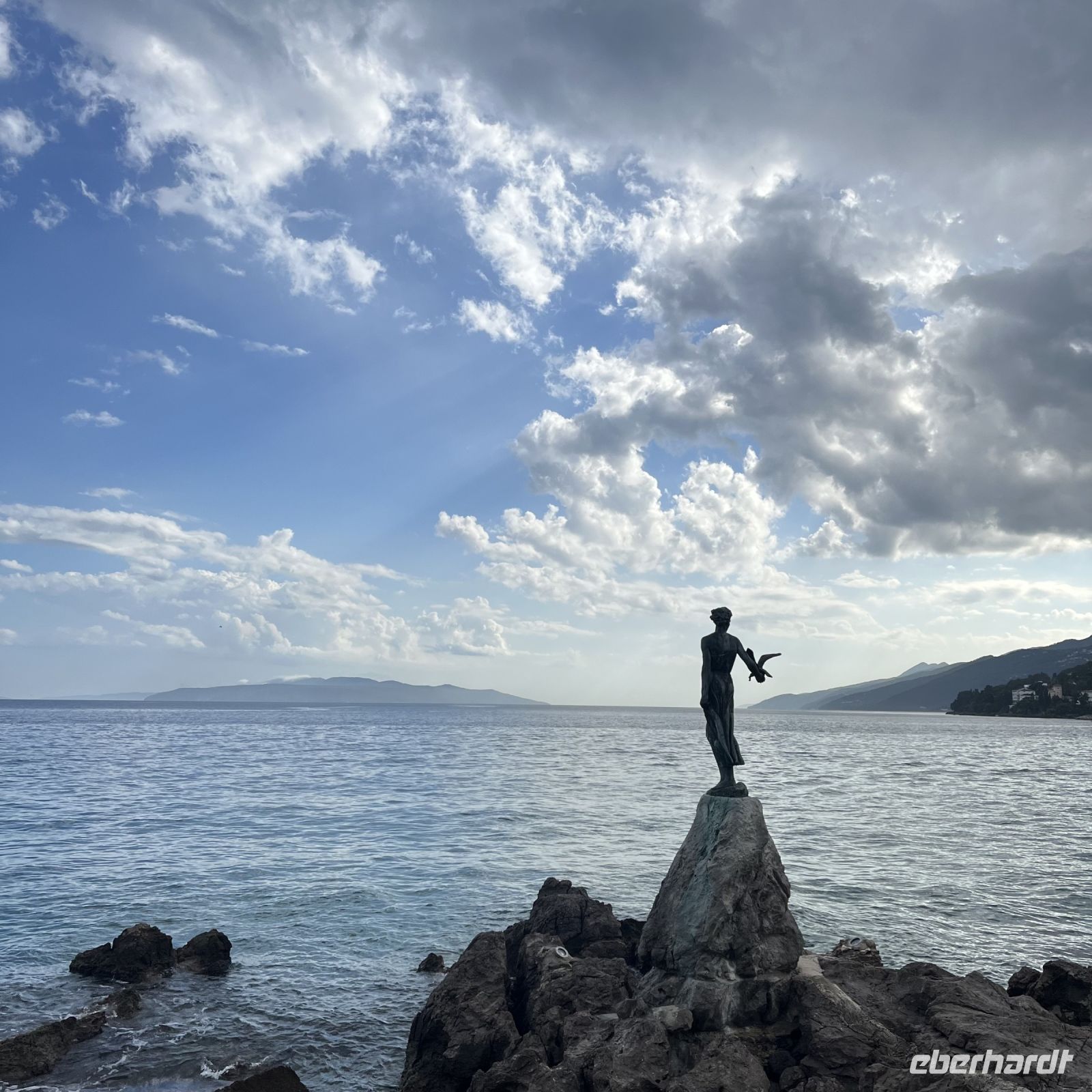 Der heutige Tag stand zur freien Verfügung, aber wir waren uns einig, dass wir an dem fakultativen Ausflug nach Rijeka und Opatija teilnehmen würden. Zwei wunderschöne Städte mit einem besonderen Charme. Rijea hat ein paar Überraschungen für uns parat: Der graue Himmel, der Regen ankündigte, öffnete sich und es regnete heftig. Nicht weit davon entfernt erwartete uns Opatija mit seinem durch das bewölkte Wetter und den zeitweiligen Nieselregen geheimnisvoll gewordenen Charme und lud uns ein, in einem Café Schutz zu suchen und das nun bleifarbene Meer zu bewundern. Die alten Hotels, Parks und Skulpturen von einzigartiger Schönheit gaben uns einen Eindruck von der Pracht der Stadt. Langsam verlassen wir Opatija und näherten uns unserer Insel. Das Wetter wurde immer besser, und als wir dort ankamen, war der Abend so mild und angenehm, dass wir beschlossen, einen Spaziergang am Strand zu machen und vor dem Abendessen in einem Café einen Eiskaffee zu trinken.