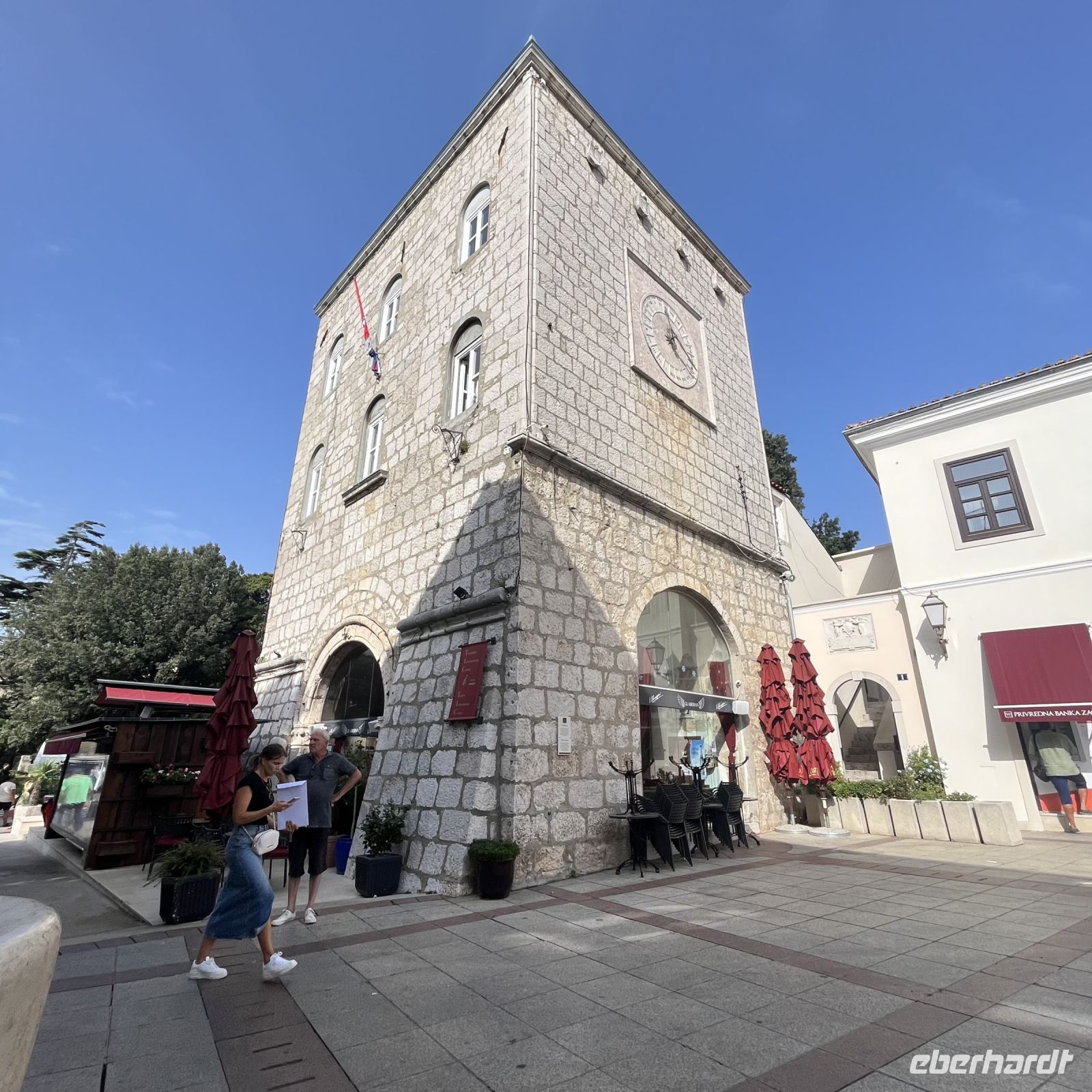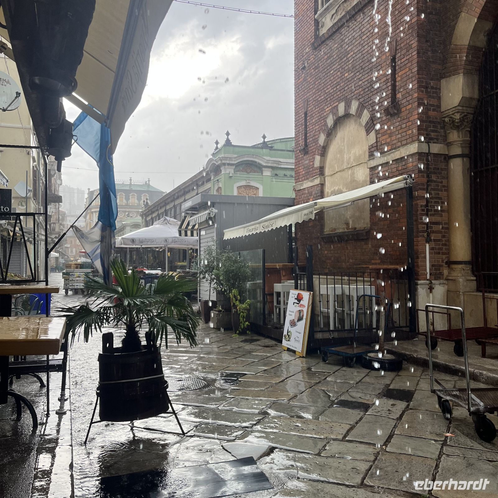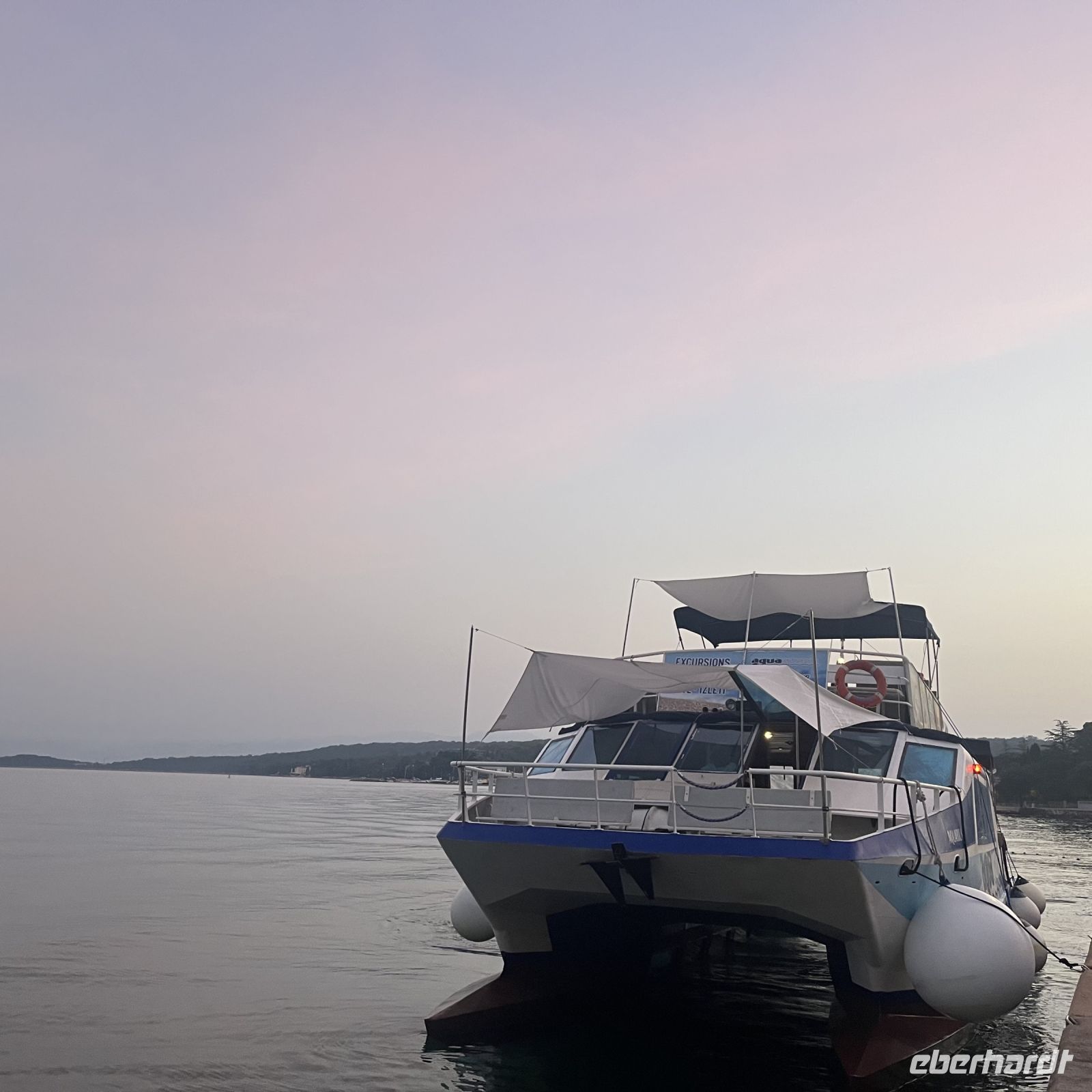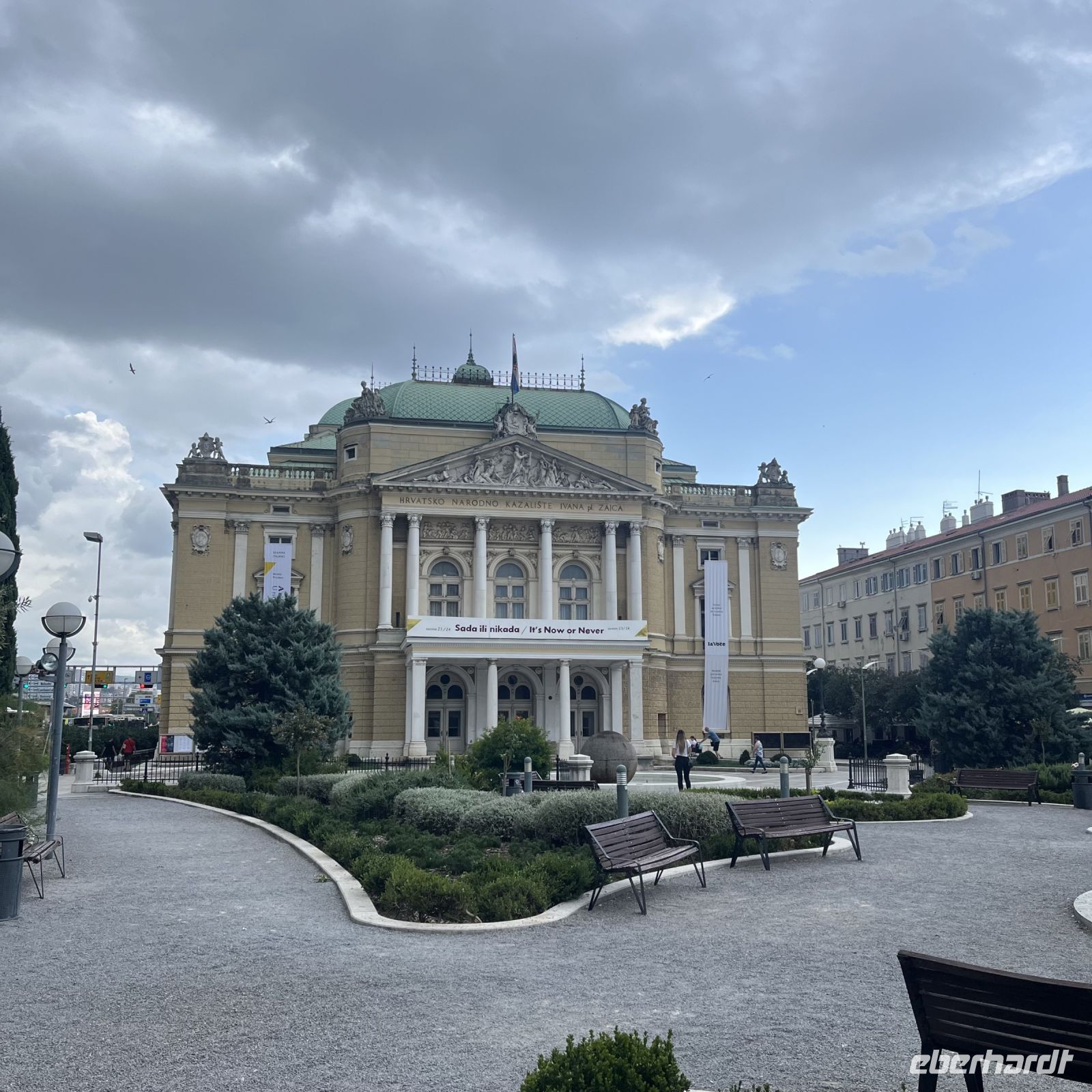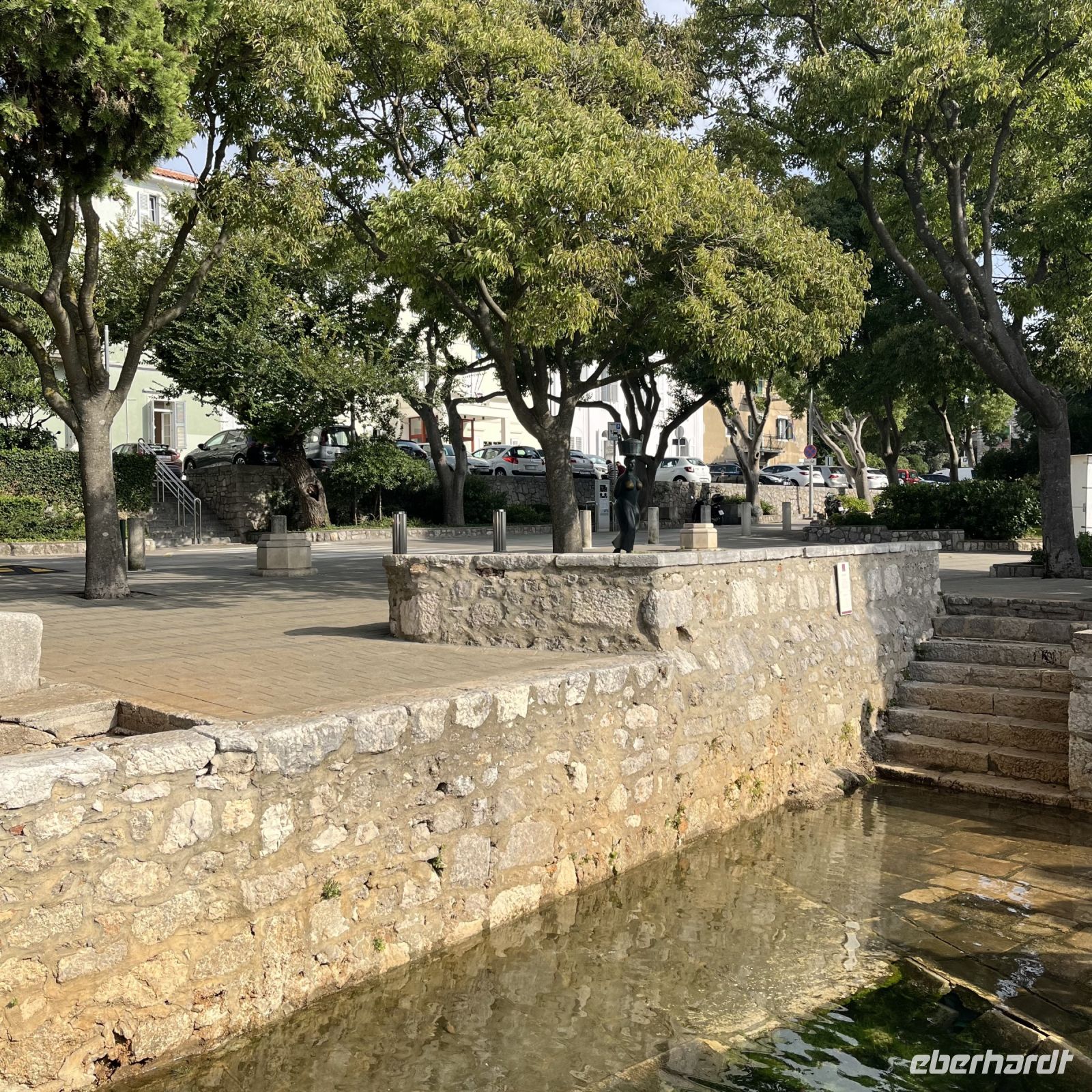 Der heutige Tag stand zur freien Verfügung, aber wir waren uns einig, dass wir an dem fakultativen Ausflug nach Rijeka und Opatija teilnehmen würden. Zwei wunderschöne Städte mit einem besonderen Charme. Rijea hat ein paar Überraschungen für uns parat: Der graue Himmel, der Regen ankündigte, öffnete sich und es regnete heftig. Nicht weit davon entfernt erwartete uns Opatija mit seinem durch das bewölkte Wetter und den zeitweiligen Nieselregen geheimnisvoll gewordenen Charme und lud uns ein, in einem Café Schutz zu suchen und das nun bleifarbene Meer zu bewundern. Die alten Hotels, Parks und Skulpturen von einzigartiger Schönheit gaben uns einen Eindruck von der Pracht der Stadt. Langsam verlassen wir Opatija und näherten uns unserer Insel. Das Wetter wurde immer besser, und als wir dort ankamen, war der Abend so mild und angenehm, dass wir beschlossen, einen Spaziergang am Strand zu machen und vor dem Abendessen in einem Café einen Eiskaffee zu trinken.