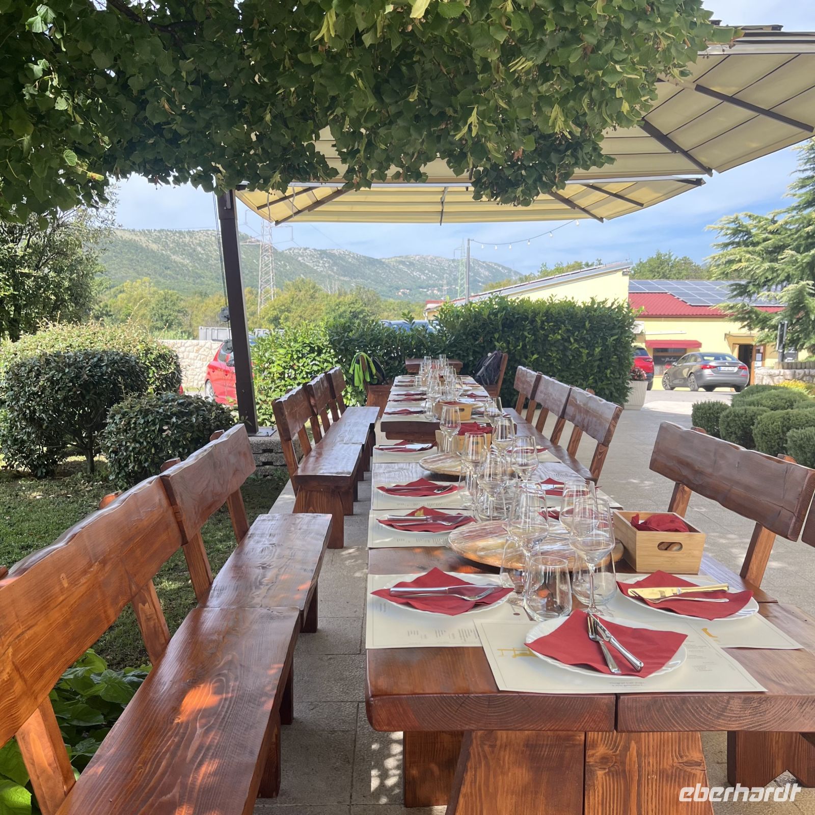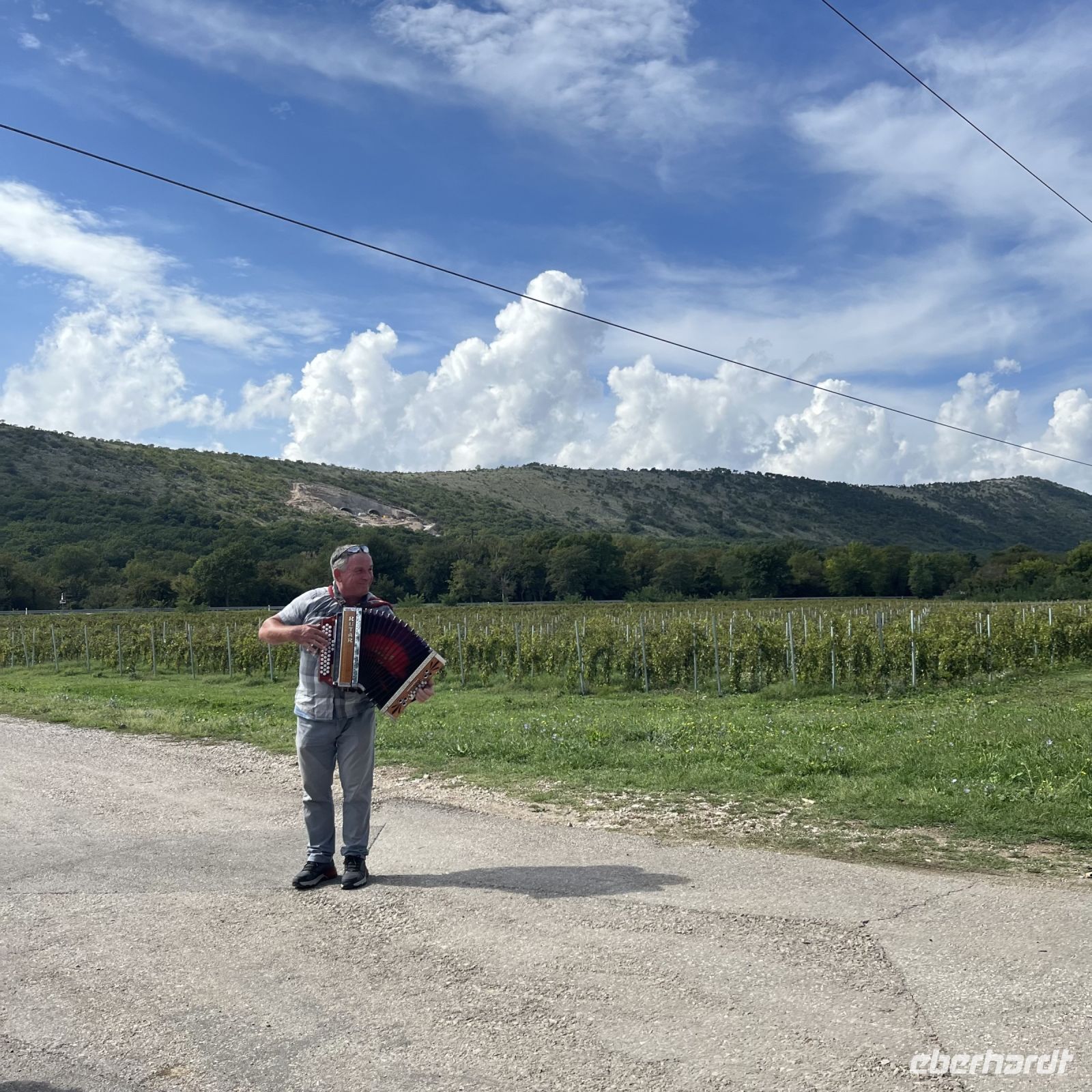 Der heutige Tag sollte ein besonders schöner, aber auch ein anstrengender Tag werden. Nach einem kurzen Besuch des Dorfes Novi Vinodolski fuhren wir in die schönen Weinberge, wo wir von Akkordeonklängen begrüßt wurden. Nach einer Besichtigung der Weinkeller wurde uns gesagt, dass vor dem Mittagessen noch Arbeit anstände. Die Trauben sind in derzeit voll ausgereift und müssten geerntet werden, mit der Besonderheit, dass dies zum fröhlichen Rhythmus des Akkordeons geschieht. Ein wohlverdientes Mittagessen stillte unseren Hunger, und die Weinprobe löschte unseren Durst. Etwas schläfrig, sei es von der Arbeit, der alkalischen Flut, dem Geist des Weins oder von allen dreien, lehnten wir uns in den Bussitzen zurück und bewunderten die Landschaft, während wir uns auf den Weg zu unserem Hotel machten.