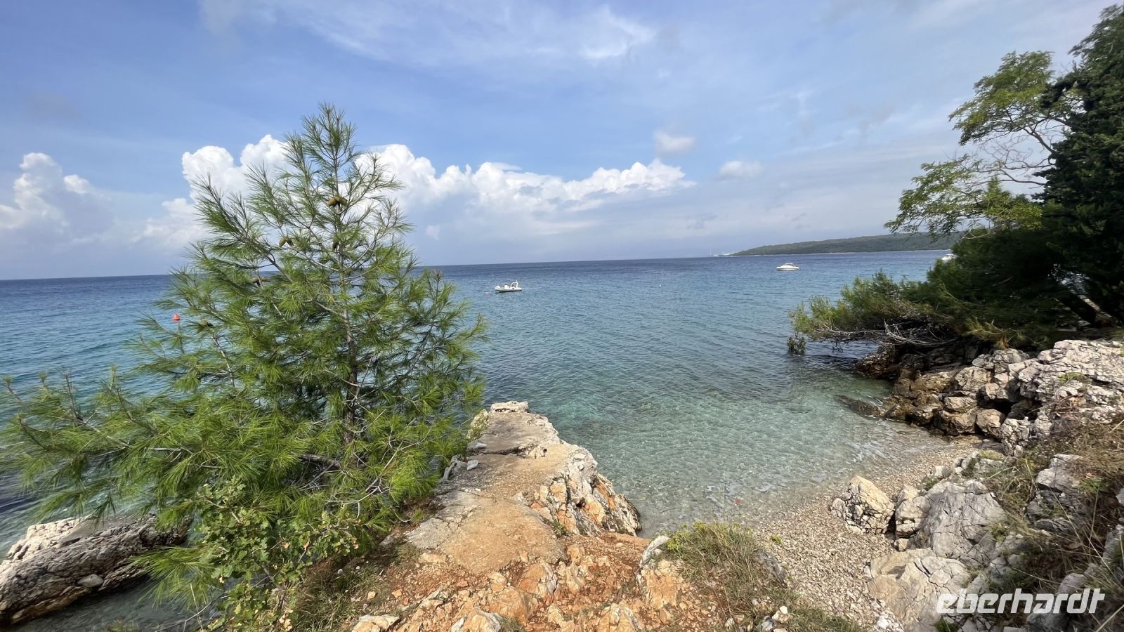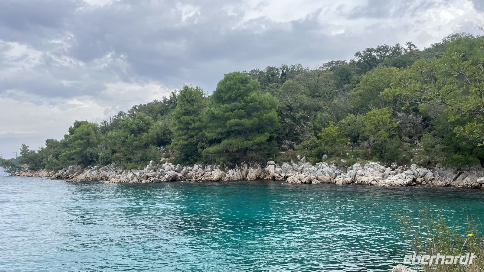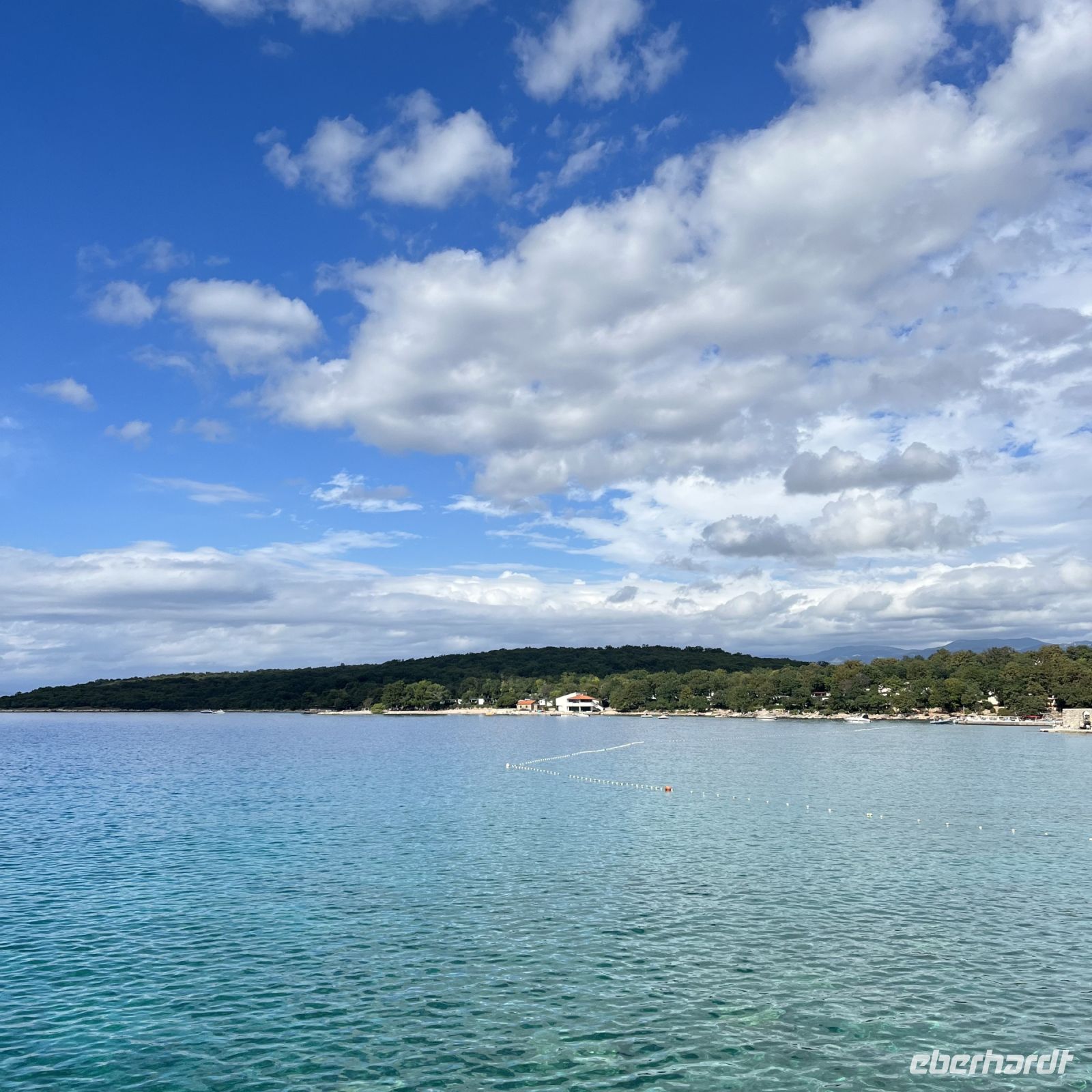 Nach einem ersten gemeinsamen Frühstück machten wir uns auf den Weg nach Fuzine, eine kurze Fahrt von der Insel über die Brücke, die uns mit dem kroatischen Festland verbindet. Die engen Straßen der Insel mit ihren schönen Gärten mit Olivenbäumen und kleiner Vegetation gehen in felsige Hänge am Straßenrand über, die dann in grüne Wälder übergehen, die einen schönen See umgeben, der uns in Fuzine willkommen heißt. Wir machten uns auf den Weg zu den Vrelo-Höhlen, in denen uns eine kleine Überraschung erwartete, und wir sind nicht die ersten, denn auch Winnetou war schon dort. Nach einem angenehmen Spaziergang um den See, bei dem viel geplaudert und gelacht wurde, bekamen wir Appetit, der Minuten später durch einen leckeren und riesigen Kuchen mit Kaffee gestillt wurde! Einige von uns, die etwas hungriger waren, fragten nach der Spezialität des Hauses: .... "Ancas de Rana"! Aber heute bleibt dafür keine Zeit, denn auf der Insel erwartete uns ein herrliches Meer, in dem wir uns erfrischten und von dem tiefen Blau, das uns fast hypnotisierte, verzaubern lassen wollen.