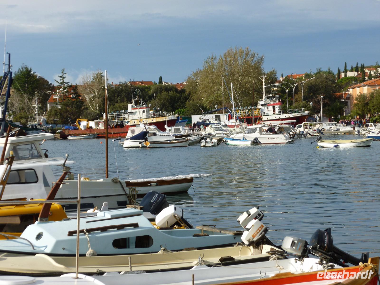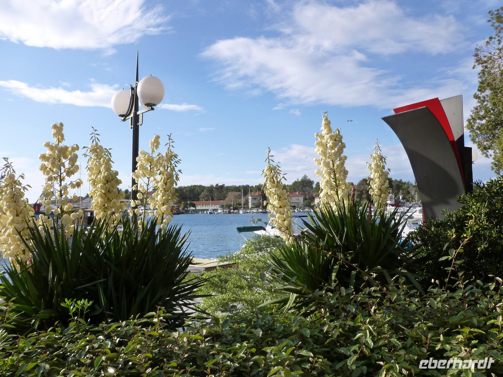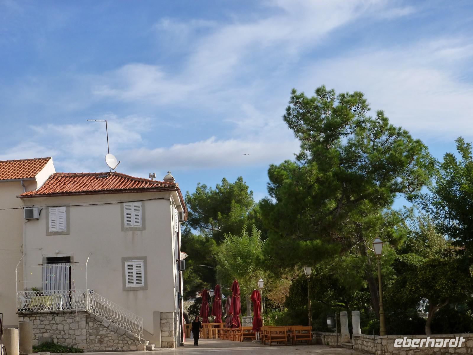 Am heutigen Tag nutzten einige Gäste den Tag für eine Inseltour über die Nachbarinseln Cres und Losinj. Mit der Fähre setzten wir zunächst auf die Insel Cres über und unternahmen in der gleichnamige Stadt einen Rundgang. Die Stadt Cres liegt im nordöstlichen Teil auf der gleichnamigen Insel Cres in einer großen und gut geschützten Bucht. Eine weite Bucht, die von der Hochebene abgeschirmt wird und ein Hinterland, das sanft nach Süden einfällt, haben hier seit der Antike menschliche Siedlungen begünstigt. Die Altstadt von Cres besteht aus einem dichten Kern aus Häusern, aneinandergebaut und untereinander verbunden. Weiter führte uns die Rundfahrt nach Osor, wo beide Inseln (Cres und Losinj) mit einer Schwenkbrücke verbunden sind. Die ca. 75 km2 große Insel Losinj, ist ein blumen- und pinienreiches Paradies. Auf der Insel findet man eine subtropische Vegetation mit Palmen, Pinien, Agaven, Oleander, Zitrusbäumen, Salbei und Lavendel. Mit über 2500 Sonnenstunden im Jahr, das entspricht ungefähr 300 wolkenlosen oder wolkenarmen Tagen, zählt Losinj zu den sonnigsten Plätzen Europas. Auf der Insel Losinj besuchten wir den Ort Mali Lošinj, den Hauptort dieser Insel. Nach einem kleinen Stadtrundgang nutzten wir die Zeit zum Bummeln und Kaffeetrinken.
