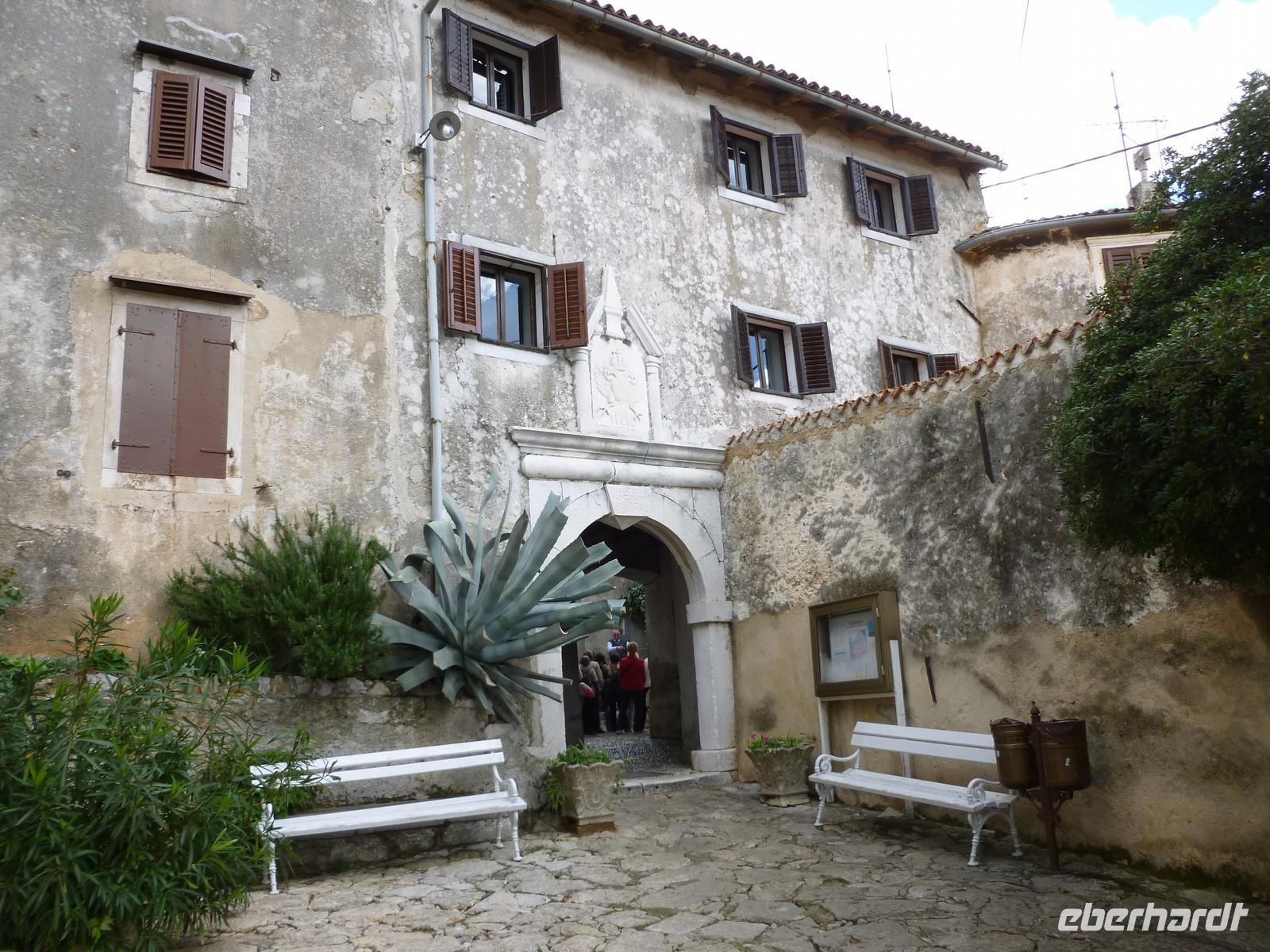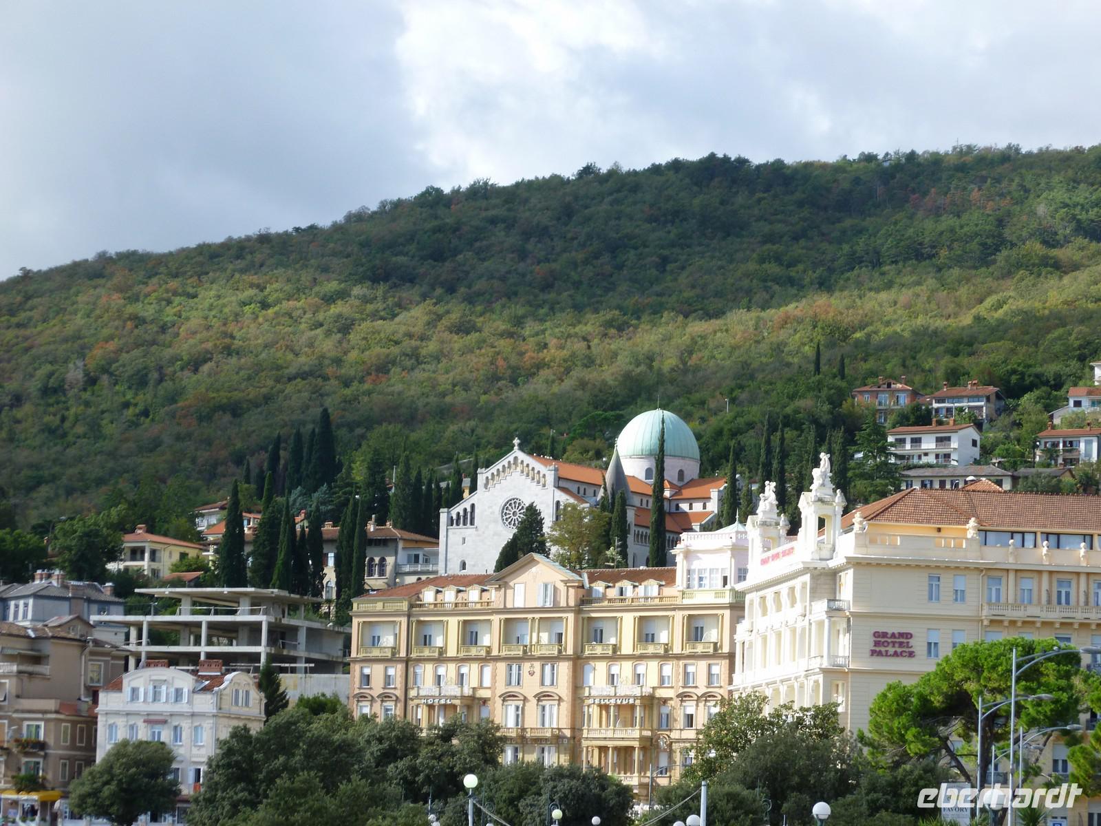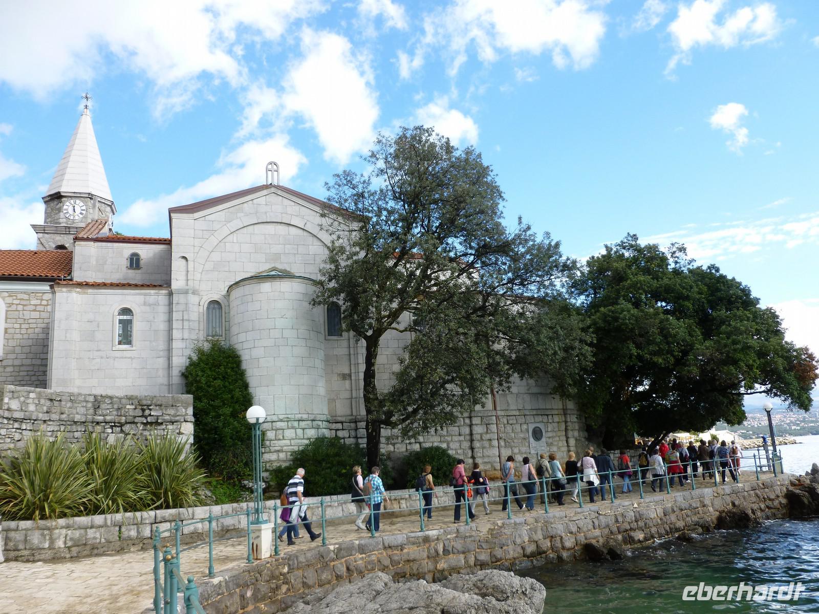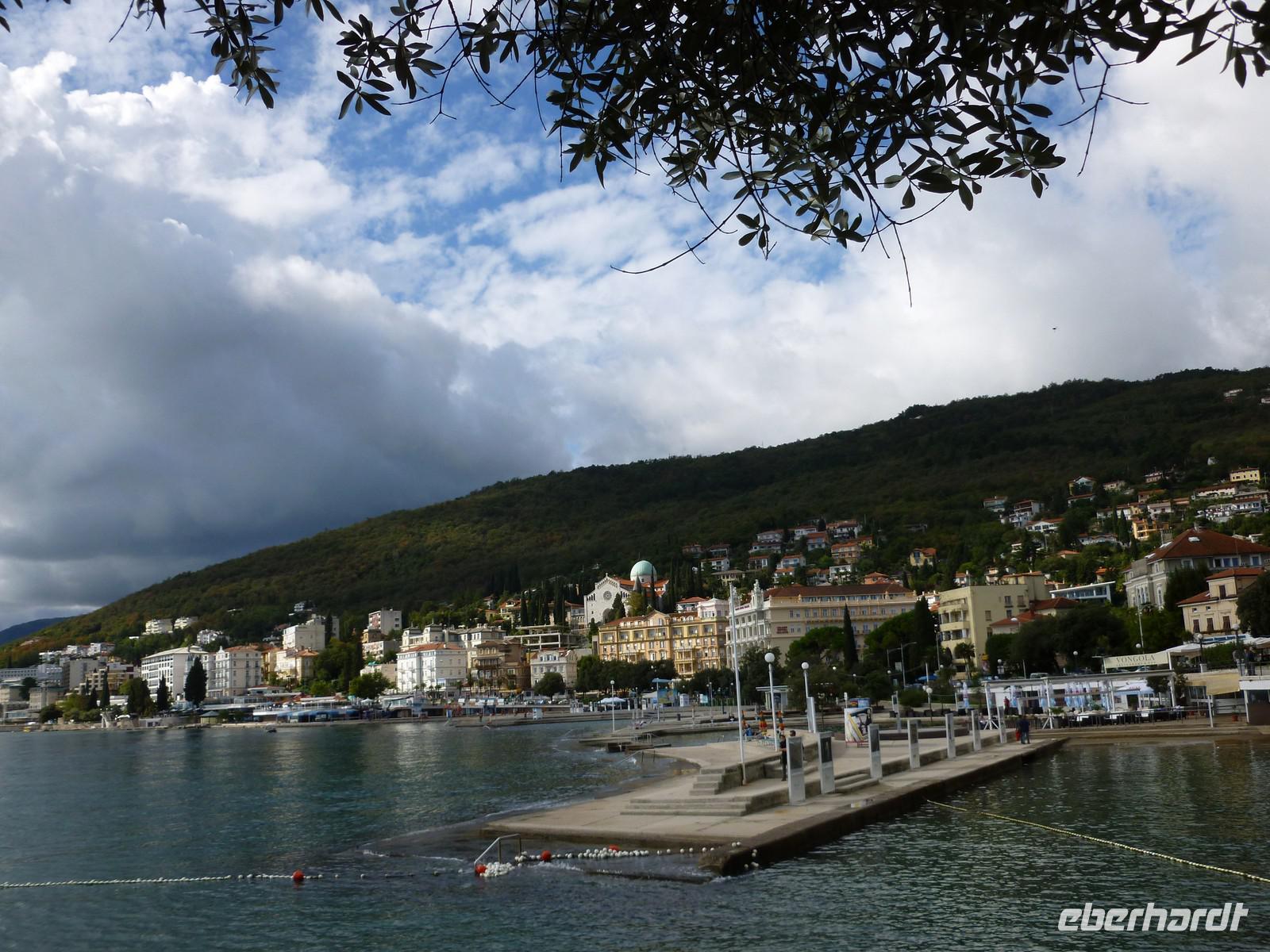 Zuerst besuchen wir Rijeka, die drittgrößte Stadt Kroatiens. Unser nächstes Ziel ist der ehemalige Luftkurort Opatija. Der bekannte Ferienort Opatija liegt am Anfang der Kvarner Bucht und ist nur 13 Km von der westlich gelegenen Stadt Rijeka entfernt. Opatija hat die schönsten Küstenausblicke des Landes - vom Lungmare, einer 12 Km langen Uferpromenade entlang der Kvarner Bucht, schaut man auf bewaldete Hänge die ans glitzernde Meer stoßen. Der Berg Vojak ist der höchste Punkt der Halbinsel Istriens und schmückt das Panorama von Opatija. Es überrascht kaum, dass Opatija bis zum Ersten Weltkrieg als das elegande Seebad der K.u.K.-Monarchie galt. Die prachtvollen Residenzen der Reichen werden heute als Hotels oder Pensionen genutzt, die immer noch die Eleganz und Raffinesse der vergangenen Zeit spiegeln. Nicht umsonst wird Opatija auch als "Nizza von Kroatien" bezeichnet und das zurecht. Aufgrund der geschützten Lage am Fuße des Ucka-Massivs besitzt die gesamte Riviera ein sehr günstiges Klima: Die frische Luft, die im Sommer von den Bergen einströmt, mildert die Hitze, wohingegen die kalten Luftmassen des Alpenraumes im Winter abgehalten werden. Somit wird Opatija fast zu allen Jahreszeiten zu einem interessanten Urlaubsort. Wir spazieren entlang der Promenade bis Villa ...... Dabei konnten wir schon das besondere Flair der Gegend genießen. Wir erreichten den kleinen Ort Moscenice und werden schon vom Bürgermeister erwartet. Mit viel Spaß und Humor führt er uns durch seinen kleinen Ort. In der Kirche erläutert uns der Pfarrer stolz seine Kirche, die auch mit Hilfe des eingenommenen Geldes renoviert werden konnte. Eine Schnapsverkostung in der alten Olivenmühle rundet den Tag ab.