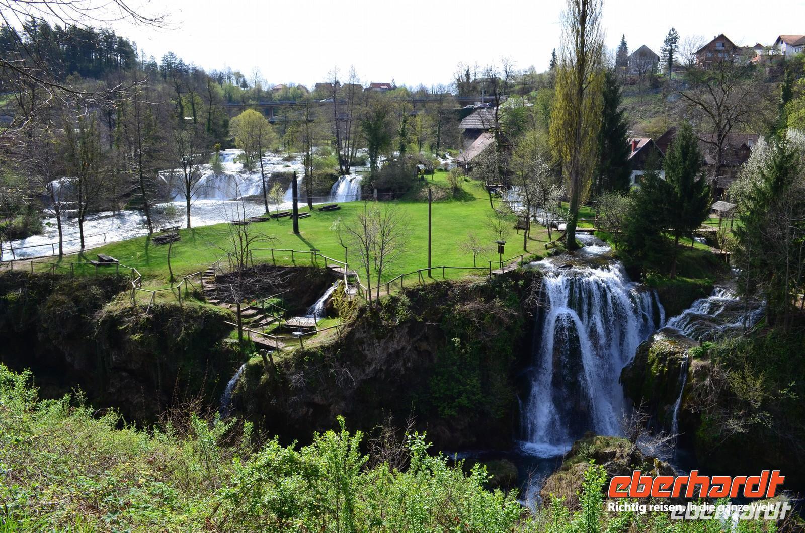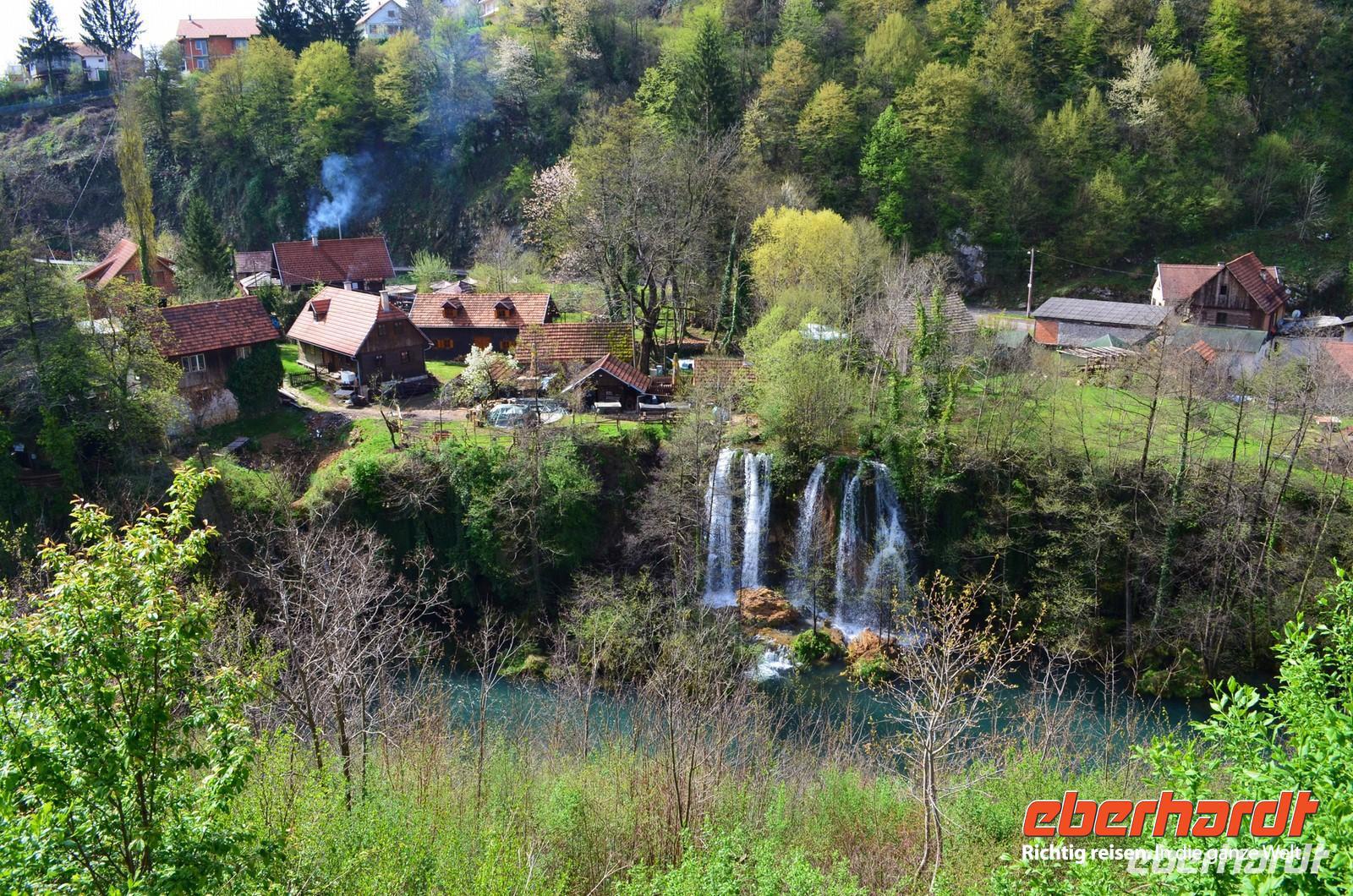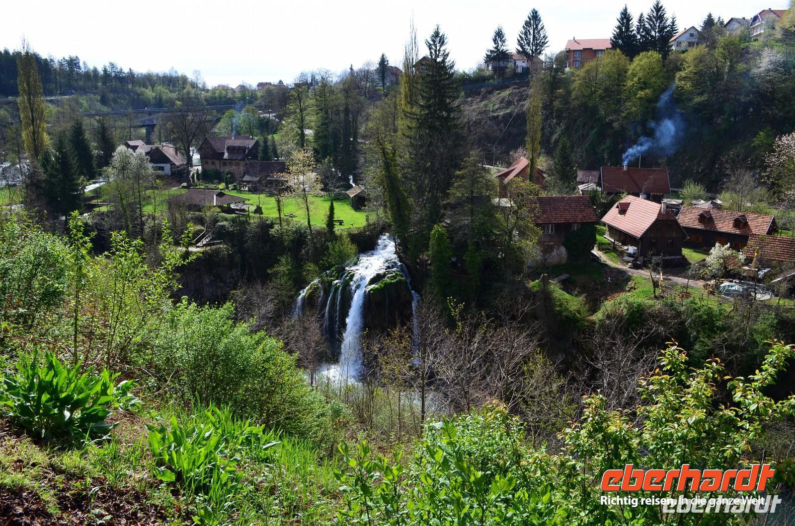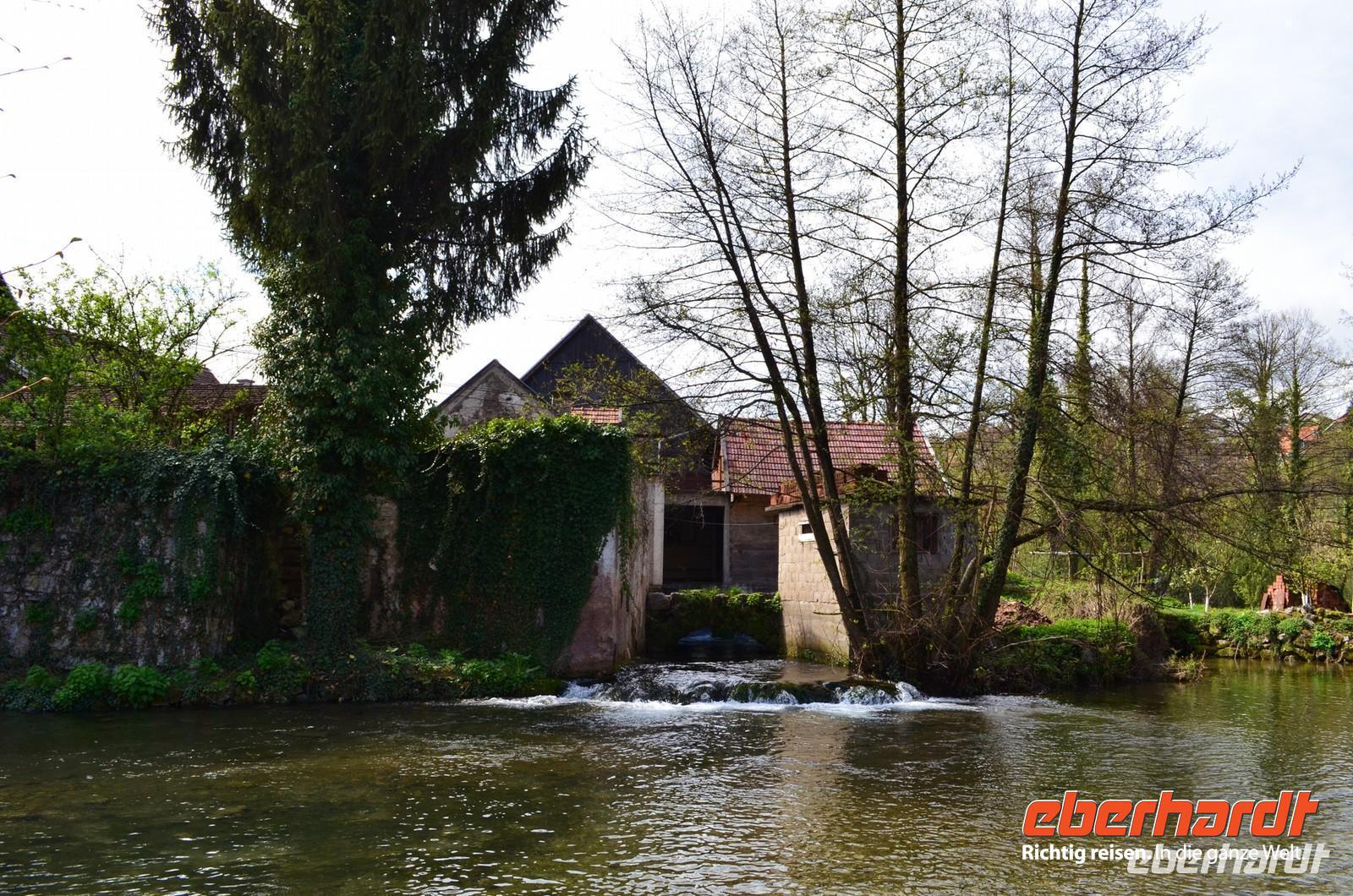 Am dritten Tag die herrliche Fahrt zu den Plitwitzer Seen, vorbei an der alten Festungsstadt Karlovac, entlang blau schimmernder Flüsse ging es stetig hinauf ins Gebirge. An der Wassermühlensiedlung Rastoke machten wir halt. Endlich schien die Sonne und wir spazierten durch das sehenswerte Mühlendorf. Eine Müllerin zeigte uns allen für einen kleinen Obolus die Funktion ihrer Getreidemühle.