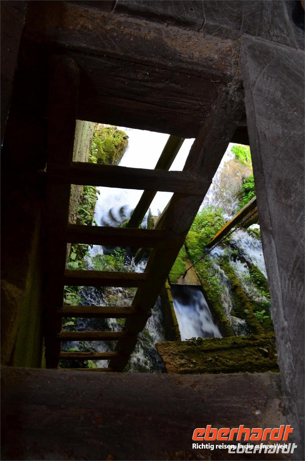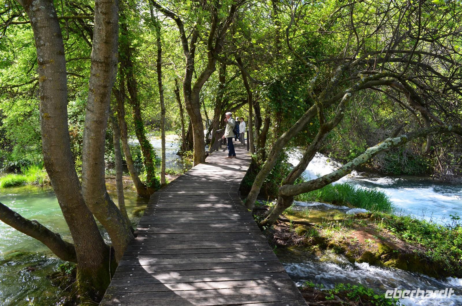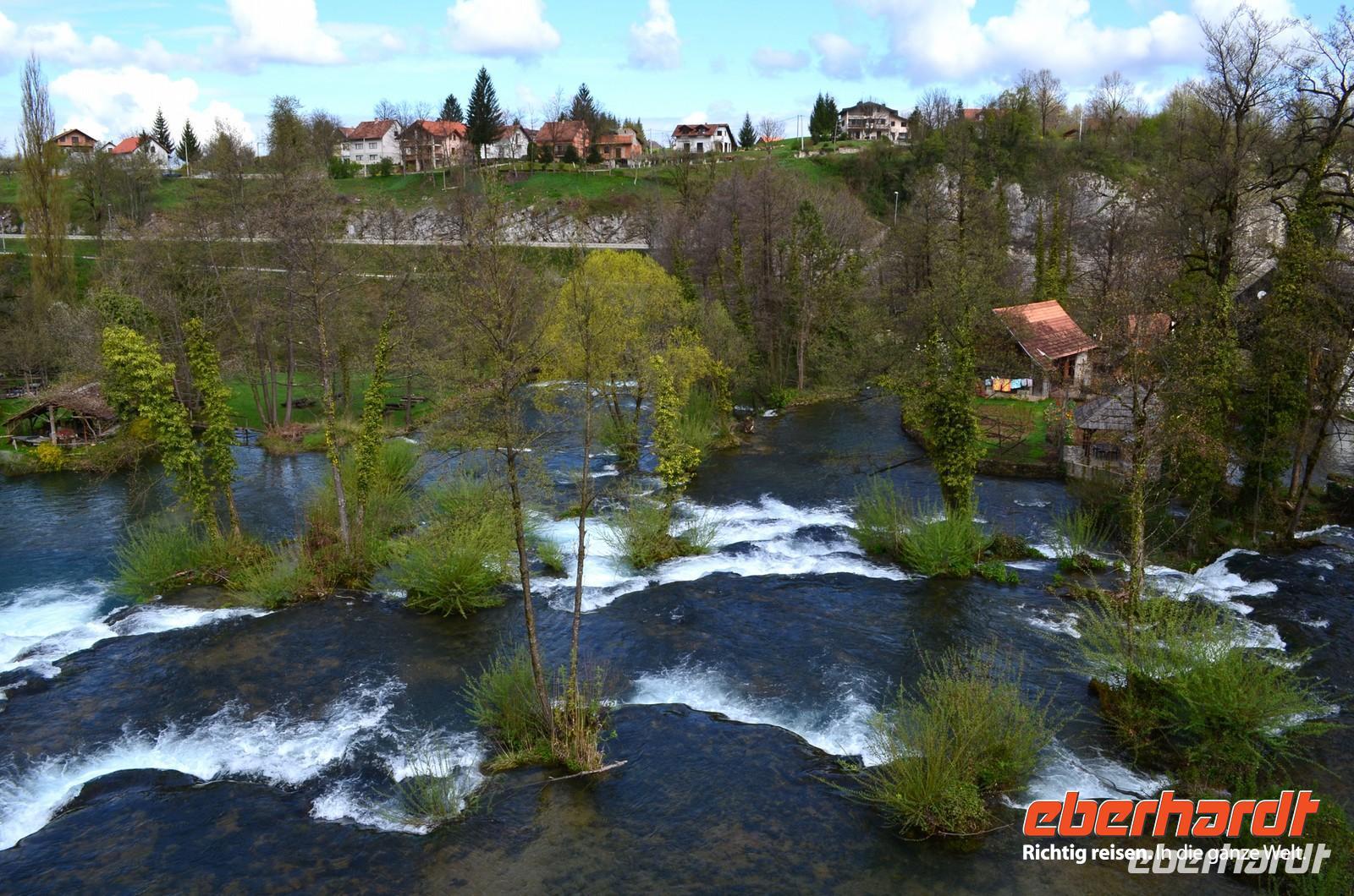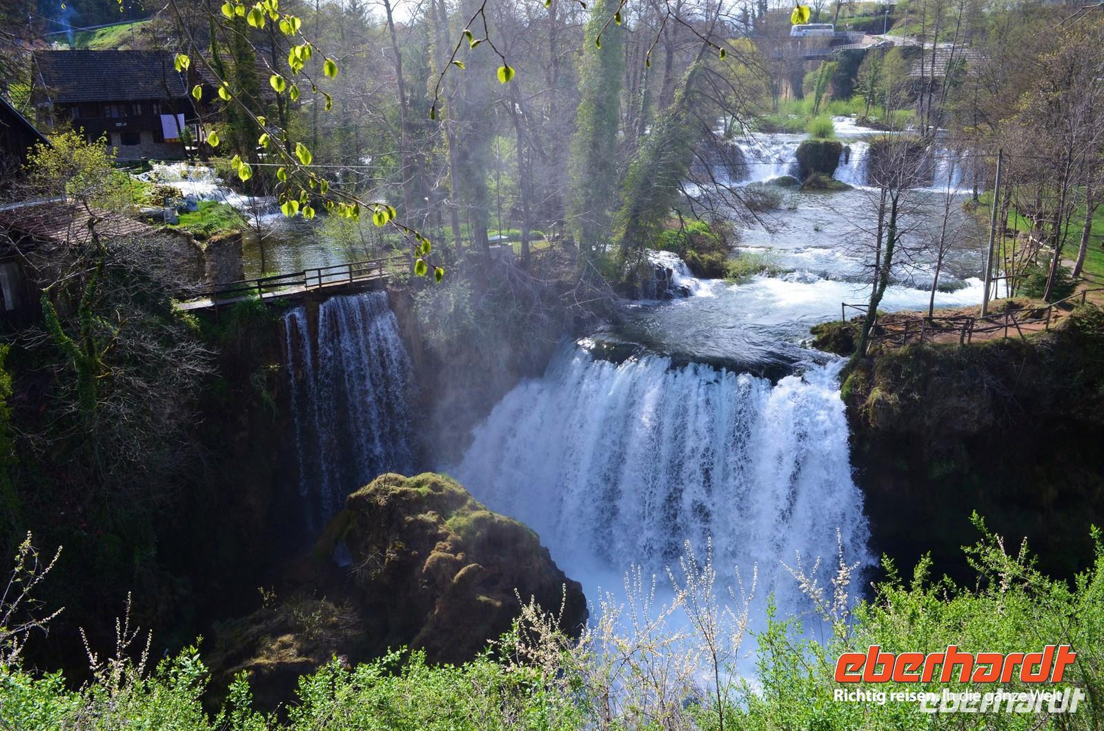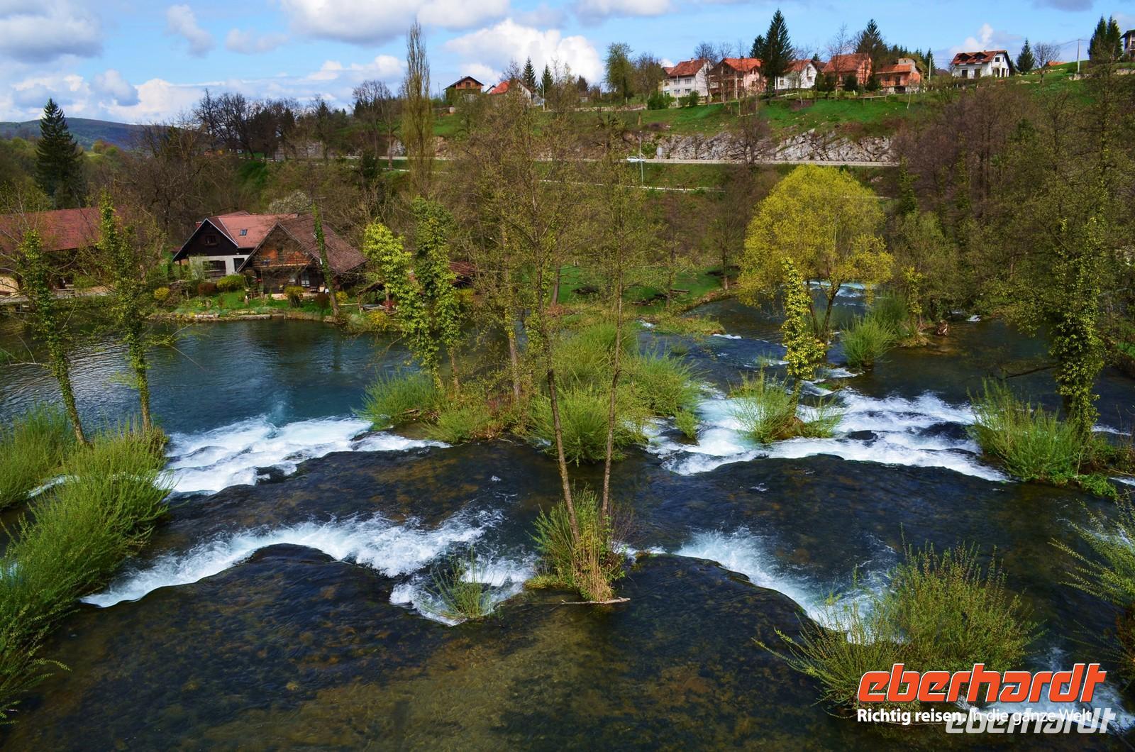 Am dritten Tag die herrliche Fahrt zu den Plitwitzer Seen, vorbei an der alten Festungsstadt Karlovac, entlang blau schimmernder Flüsse ging es stetig hinauf ins Gebirge. An der Wassermühlensiedlung Rastoke machten wir halt. Endlich schien die Sonne und wir spazierten durch das sehenswerte Mühlendorf. Eine Müllerin zeigte uns allen für einen kleinen Obolus die Funktion ihrer Getreidemühle.