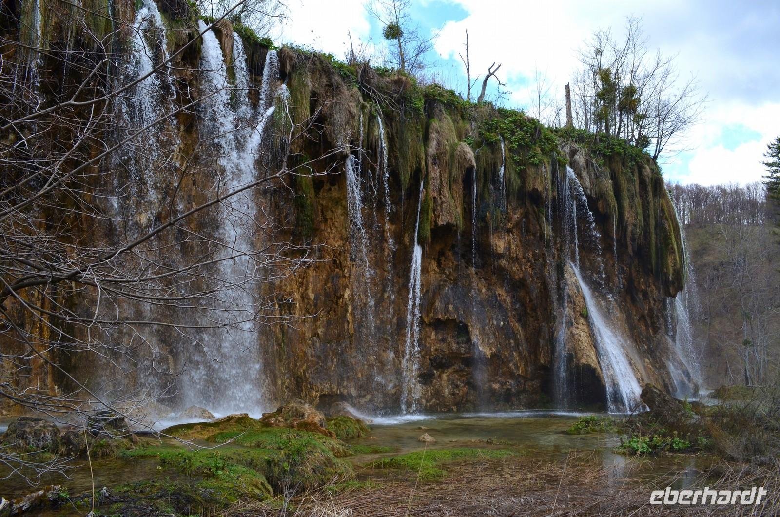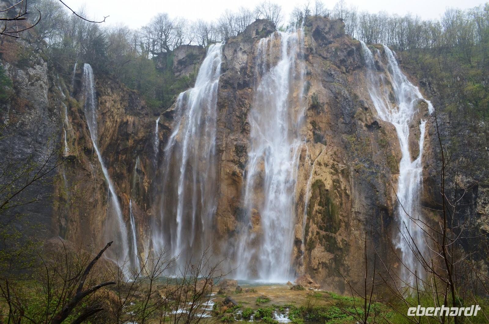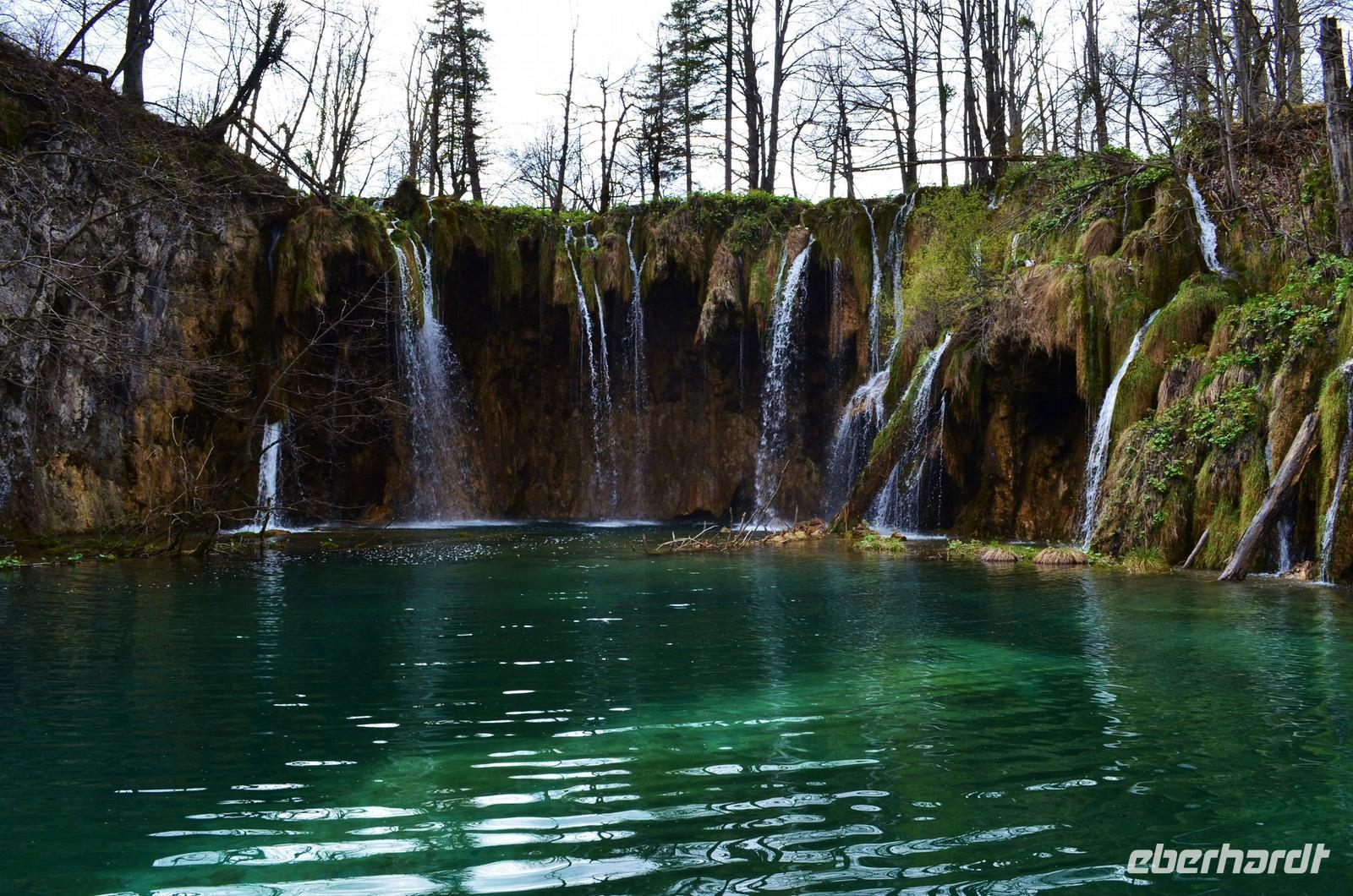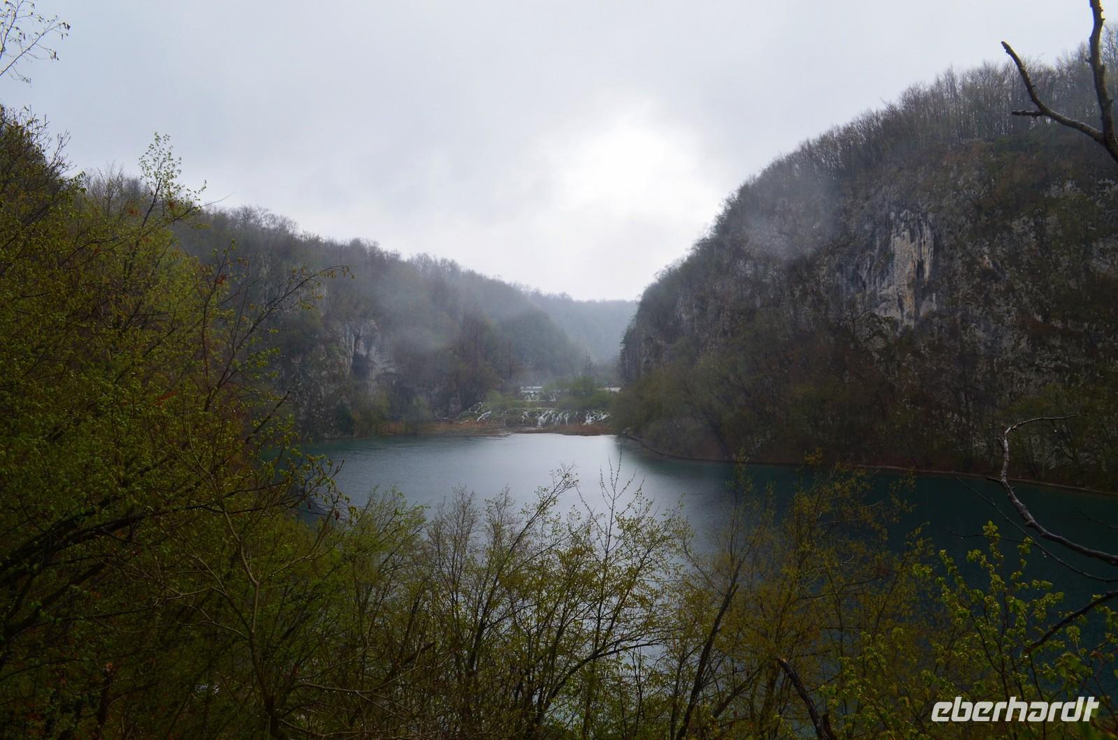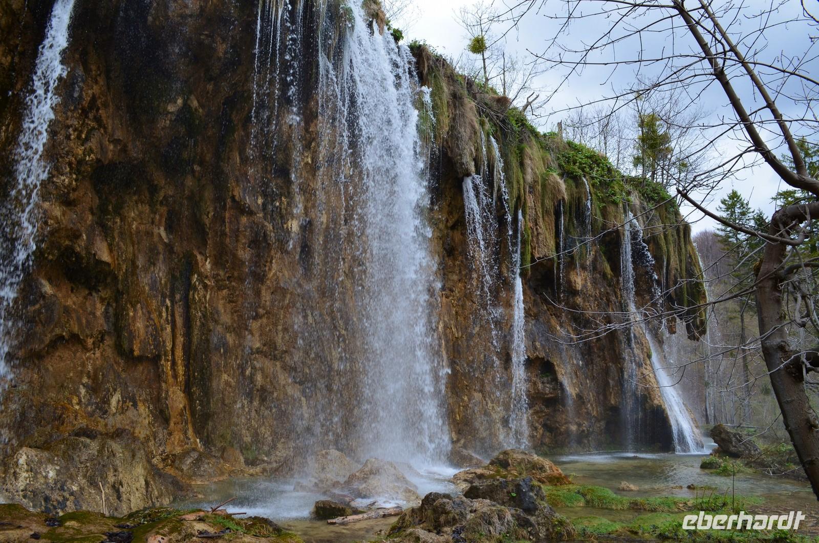 Vom Hotel Jezera aus machten wir uns dann auf den Weg durch die Naturwunder der oberen und unteren Seen und Wasserfälle im Nationalpark Plitwitzer Seen. Im oberen Bereich schien noch die Sonne, doch dann öffnete der Himmel seine Schleusen. Also deckten wir uns im Andenkengeschäft mit Schirmen ein und weiter ging die Wanderung bis zum hohen Wasserfall des Plitwitzbaches und dann die Serpentinen hinauf zum wohlig warmen Bus, der uns zum Hotel zurückbrachte.