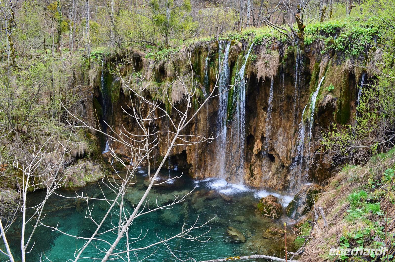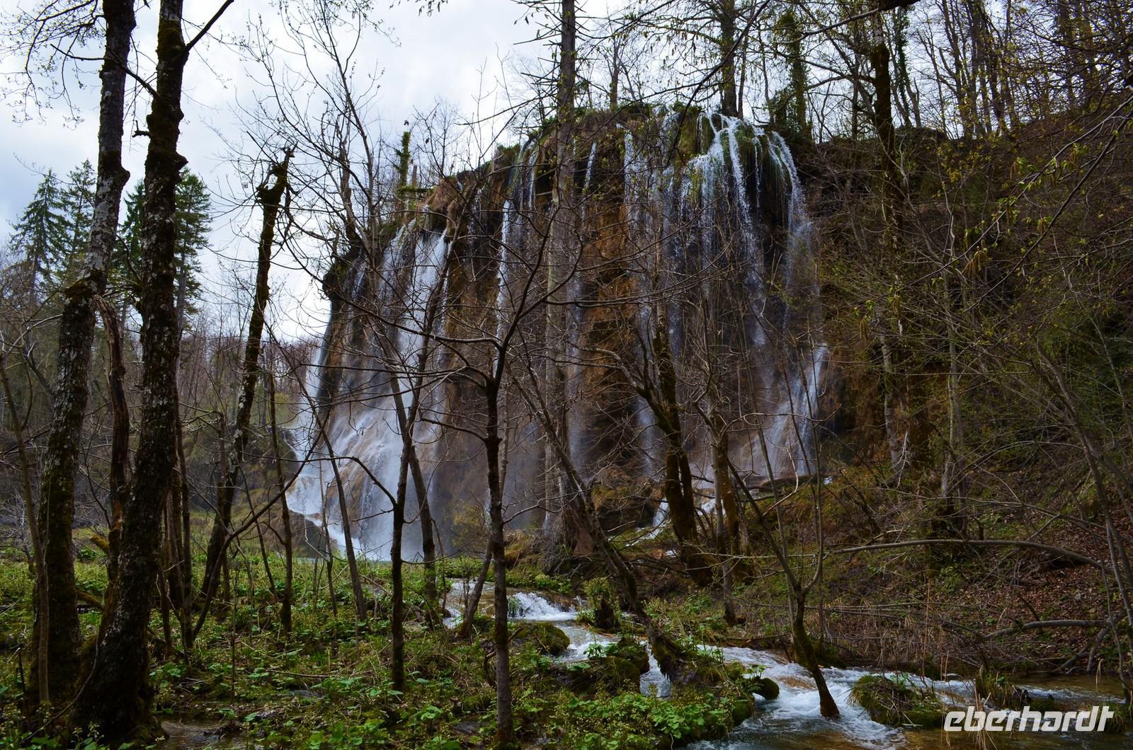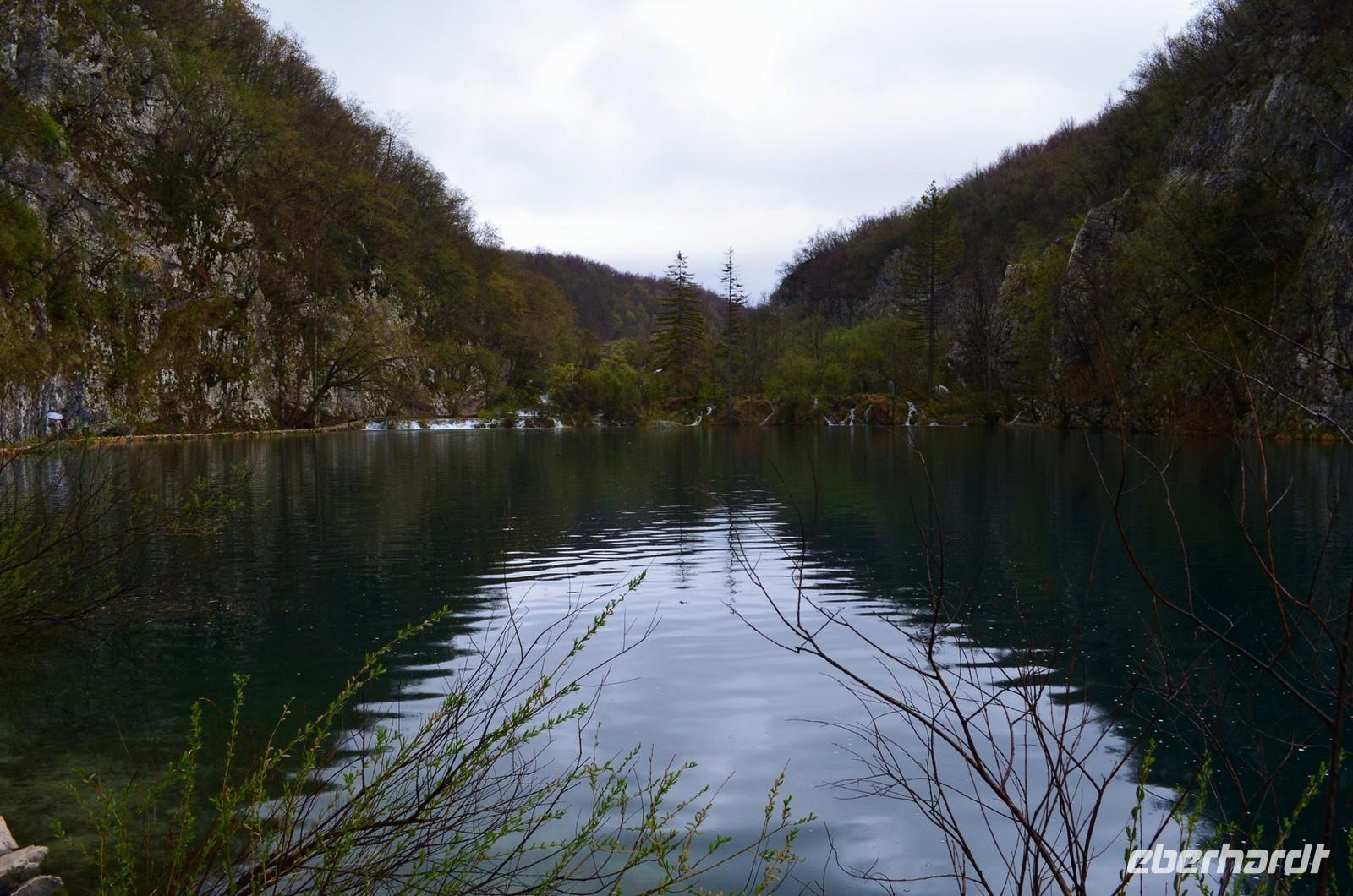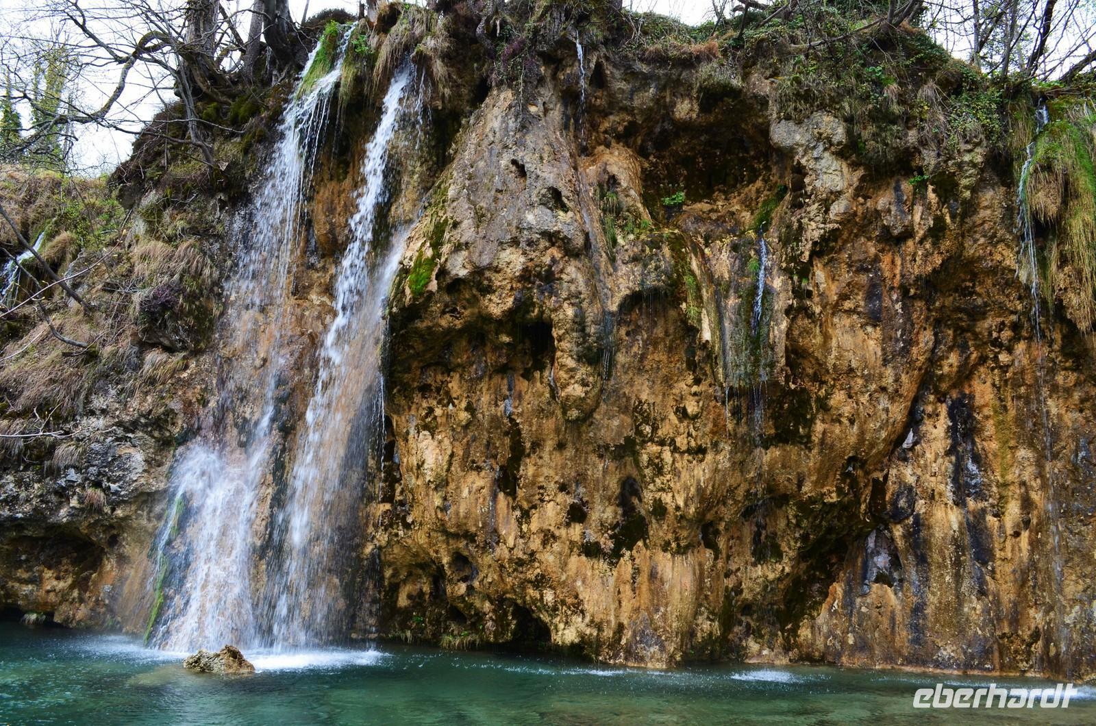 Vom Hotel Jezera aus machten wir uns dann auf den Weg durch die Naturwunder der oberen und unteren Seen und Wasserfälle im Nationalpark Plitwitzer Seen. Im oberen Bereich schien noch die Sonne, doch dann öffnete der Himmel seine Schleusen. Also deckten wir uns im Andenkengeschäft mit Schirmen ein und weiter ging die Wanderung bis zum hohen Wasserfall des Plitwitzbaches und dann die Serpentinen hinauf zum wohlig warmen Bus, der uns zum Hotel zurückbrachte.