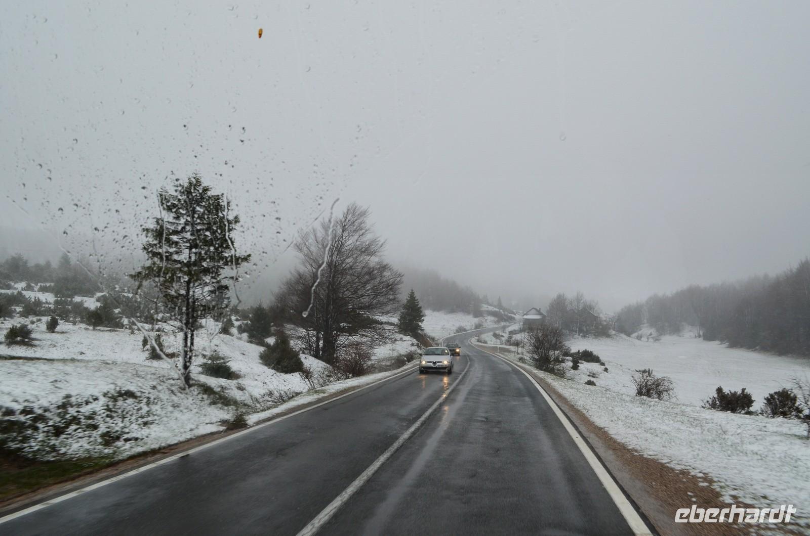 Erst das Idrijca-Tal und dann das reizvolle Socatal geht es die Smaragtstraße hinauf, mitten ins Herz der Julischen Alpen, nach Bovec. Leider holt uns hier der Regen wieder ein und im oberen Bereich sind die Berge noch tief verschneit.