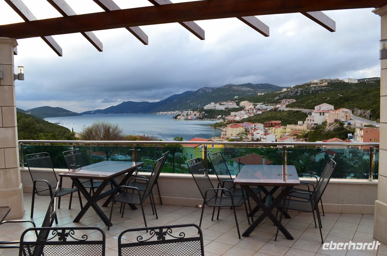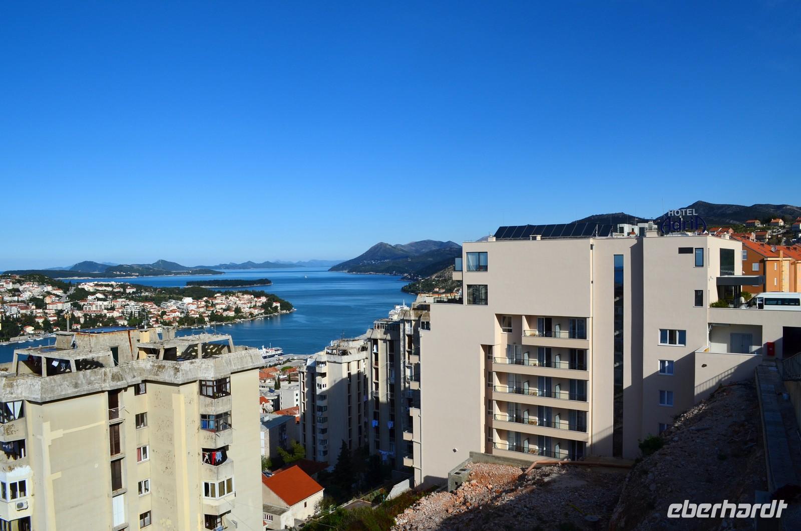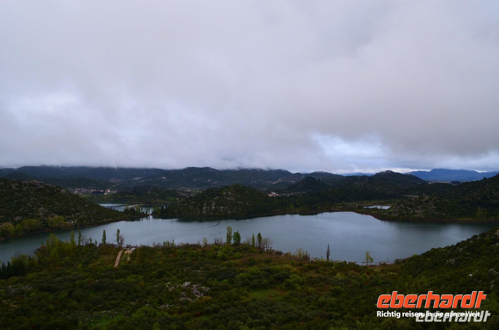 Am Dienstag begann die Fahrt mit Schneetreiben und weißer Gebirgslandschaft im Velebit-Gebirge. Der Autobahntunnel war gesperrt, aber ausgeschildert war das nicht und so mussten wir einen Umweg in Kauf nehmen, bevor wir dann über Gradac und Knin die Adriastadt Split erreichten. Hier empfing uns Vesna herzlich und mit ihr besichtigten wir die beeindruckende Hafenstadt mit den historischen Gassen der Altstadt innerhalb der Reste des römischen Kaiserpalastes. Die anschließende Freizeit reichte für ein Eis, dann begann die Weiterfahrt entlang der Küstenstraße nach Süden - vorbei an der Seeräuberstadt Omis, entlang der Makarska Riviera unterm Biokovo-Gebirge, mit fotostopp an den Bacinsker Seen, durch das Gebiet der Neretva-Mündung, der Bucht von Neum und gegenüber entlang der Halbinsel Pelesac nach Dubrovnik. Schon von weitem sahen wir die blaue Leuchtschrift des Hotels Adria, in dessen Aussichtsrestaurant der Abend ausklang.