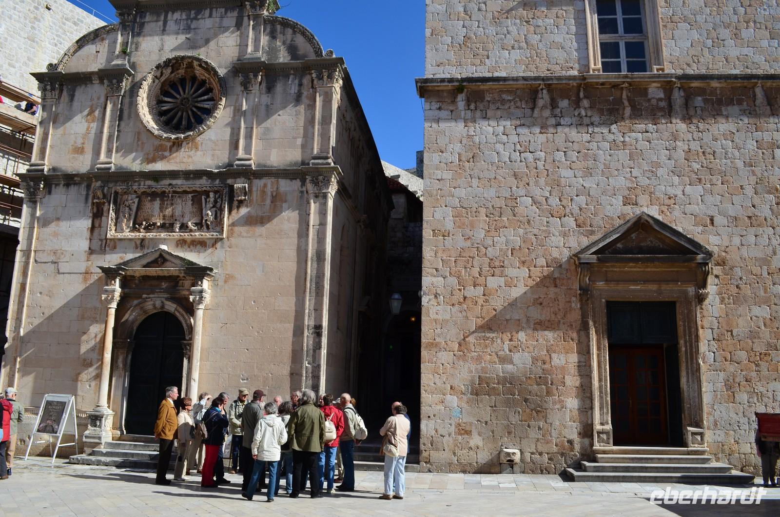 Mittwoch, ein neuer Tag und endlich Sonnenschein. Dubrovnik machte seiner Schönheit alle Ehre. Bose brachte uns mit seinem Bus zum Pile-Platz, wo uns Albin zur Stadtführung erwartete. Begleitet von seinen ausführlichen Erläuterungen streiften wir durch die Gassen der Stadt, besuchten das Franziskanerkloster mit seinen Schätzen und der alten Apotheke, betrachteten den Uhrturm und den Roland, besichtigten den Dom und die spanische Treppe.