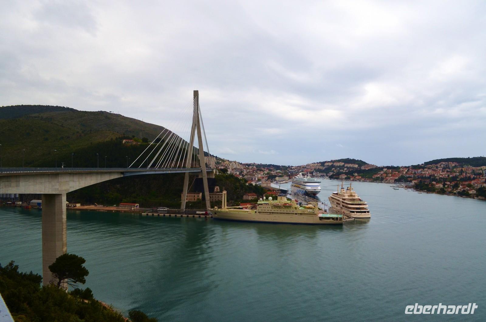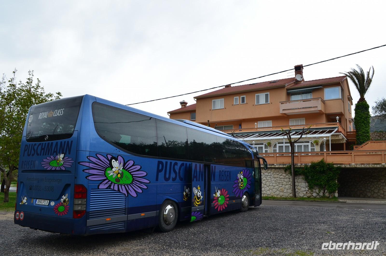 Donnerstag, weiter ging die Reise entlang der Küste und der Inselwelt Kroatiens - wieder nordwärts. Erster Fotohalt ist an der großen Brücke in Dubrovnik. Später auf der Halbinsel Peljesac machen wir in Veliki Ston eine kleine Pause und laufen bei Regen durch die kleine erdbebengeschädigte Stadt mit ihrer beeindruckenden Maueranlage. In Richtung der Kapitänsstadt Orebic halten wir nochmals in Potomje und zur Überraschung der Gäste stoppen wir am Weingut Matusco. Als eberhardt Wow gibt es hier eine leckere Weinprobe und Frau Violic-Matusco erklärt uns den Weinbau und das Leben in Kroatien - einfach nett und interessant.