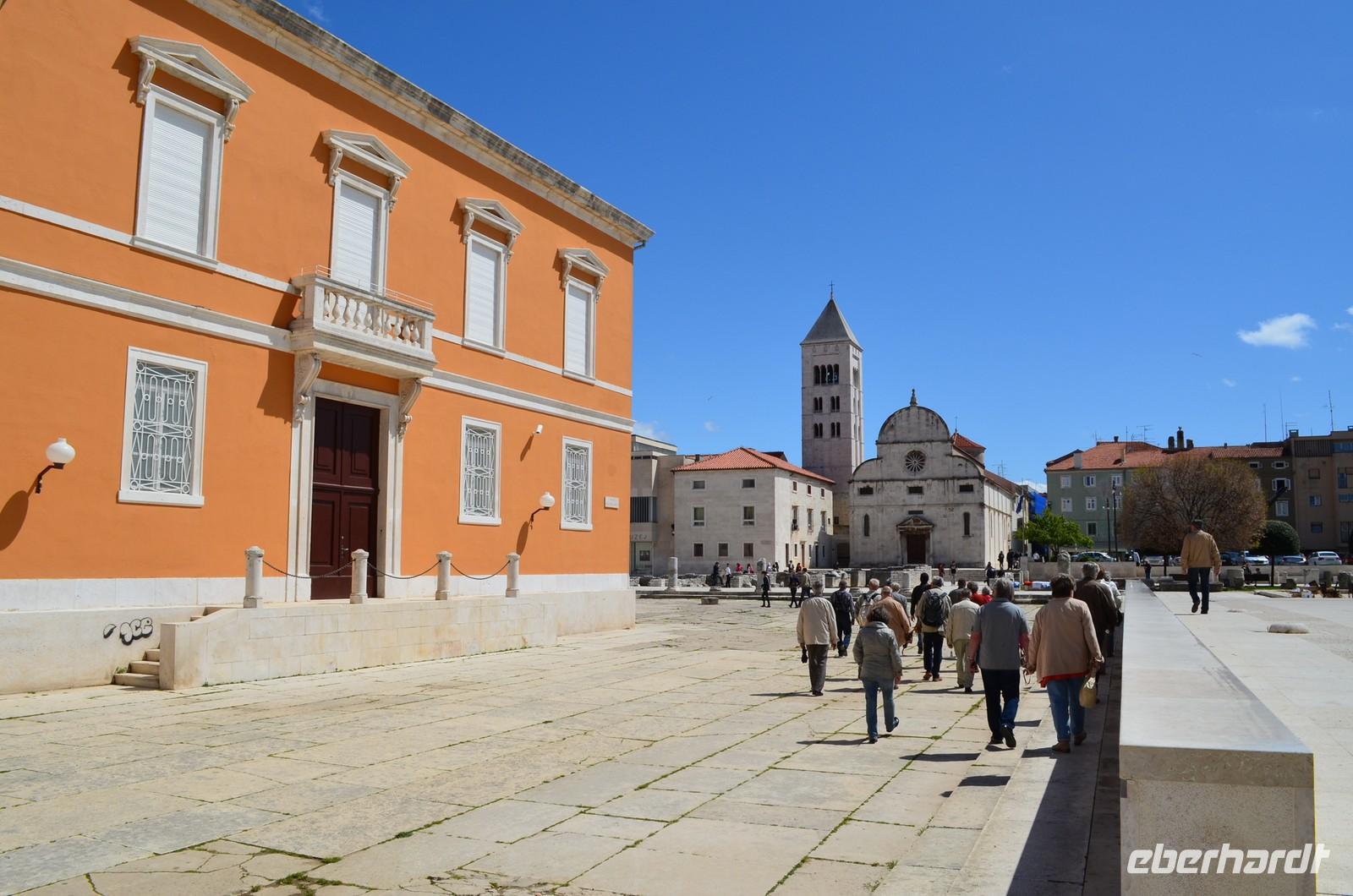 Am Hafen empfängt uns Edi, der Geschichtslehrer, zur Stadtführung von in Zadar. Die sehenswerte Stadt mit der Wasserorgel und dem „leuchtenden“ Planetensystem,