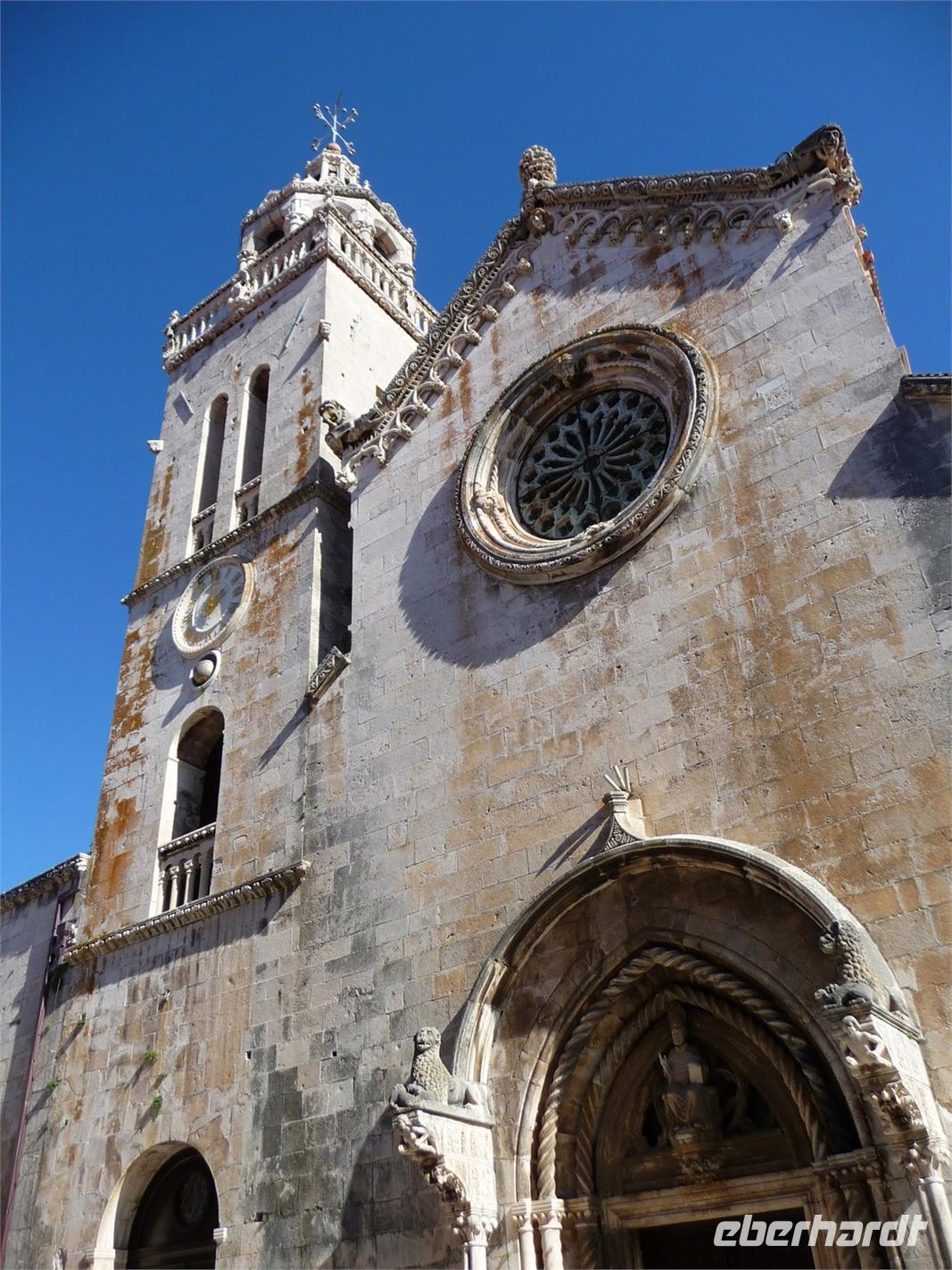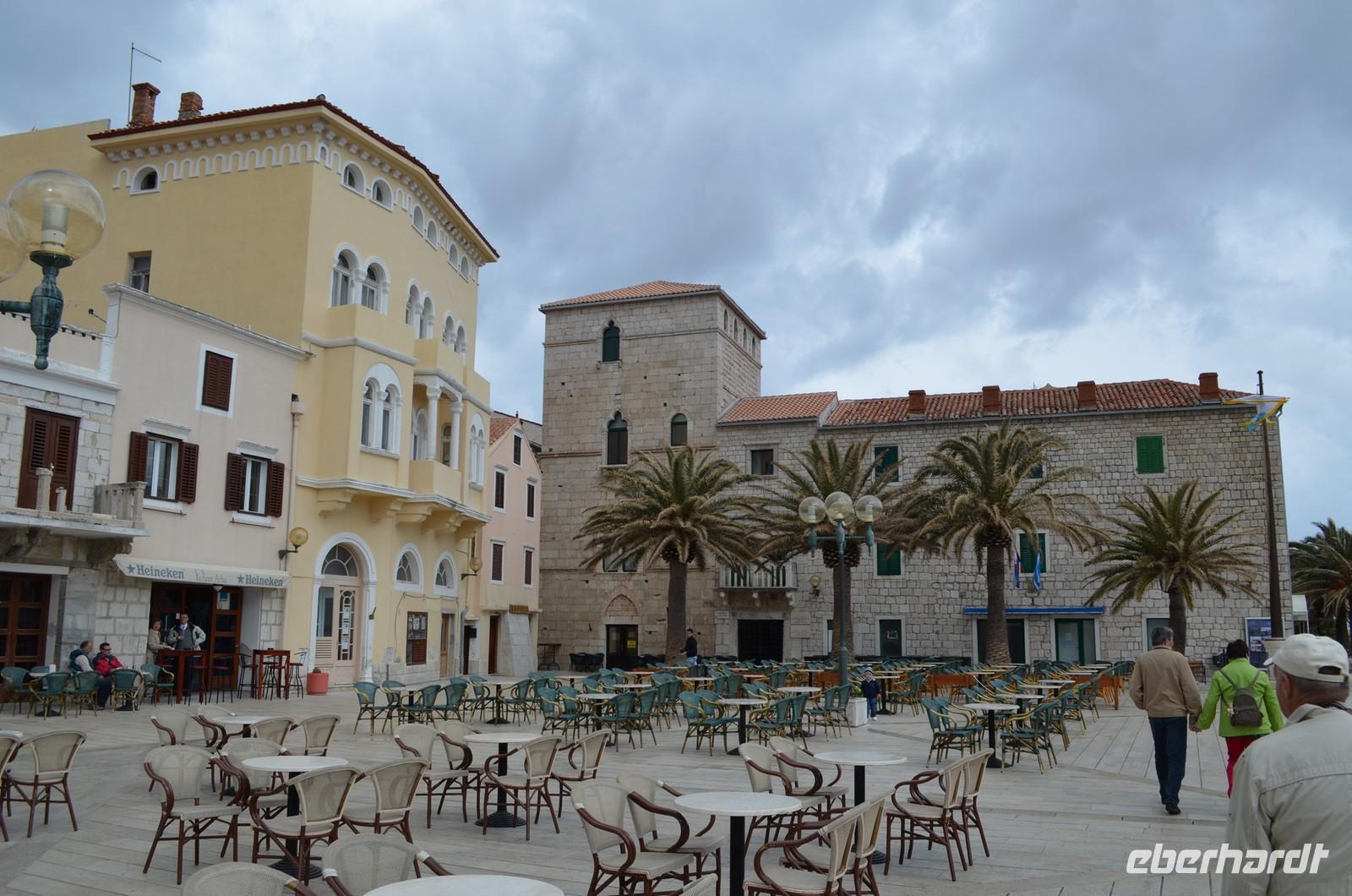 Zurück über die Halbinsel und dann weiter nordwärts entlang der Küstenstraße fahren wir, jedoch diesmal am Ende der Makarska Riviera über das Biokovo-Gebirge und die Autobahn zurück nach Split und weiter nach Trogir, der wohl ältesten und reizvollsten Stadt auf dieser Tour. Ich stelle sie den Gästen vor und mir verbringen ein paar Stunden in der historischen Altstadt - dann geht’s weiter, vorbei an Primosten nach Sibenik. Das Hotel Solaris Jure empfängt uns mit Begrüßungsband und Begrüßungstrunk.
