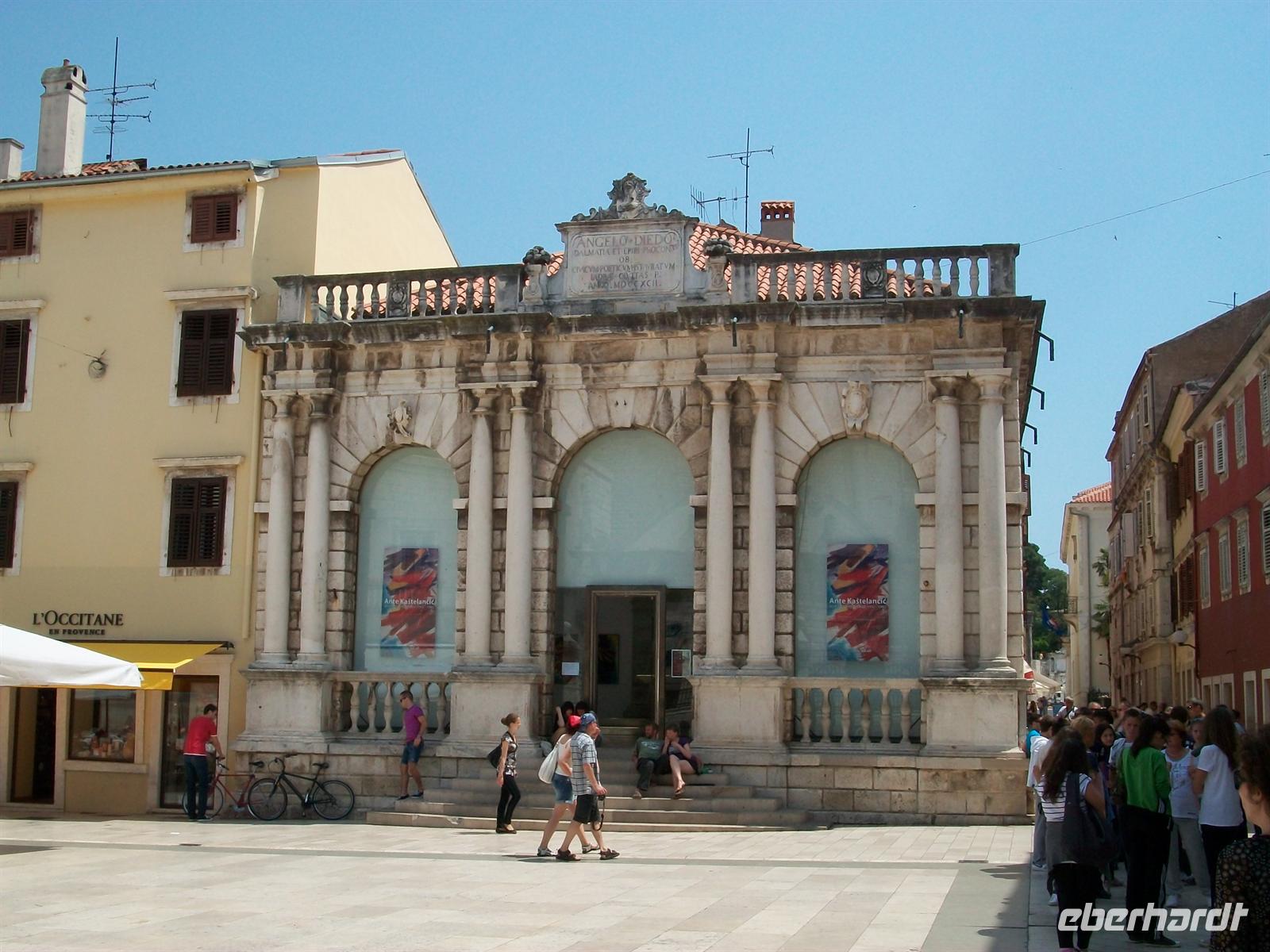 Es ist kurz vor 12.00 Uhr als wir auf dem Parkplatz von Zadar einrollen. Hier werden wir schon von Edi unserem Stadtführer erwartet. Es ist doch ziemlich heiß geworden, die Wolken haben sich verzogen und wir werden uns während der Führung schattige Plätzchen suchen.