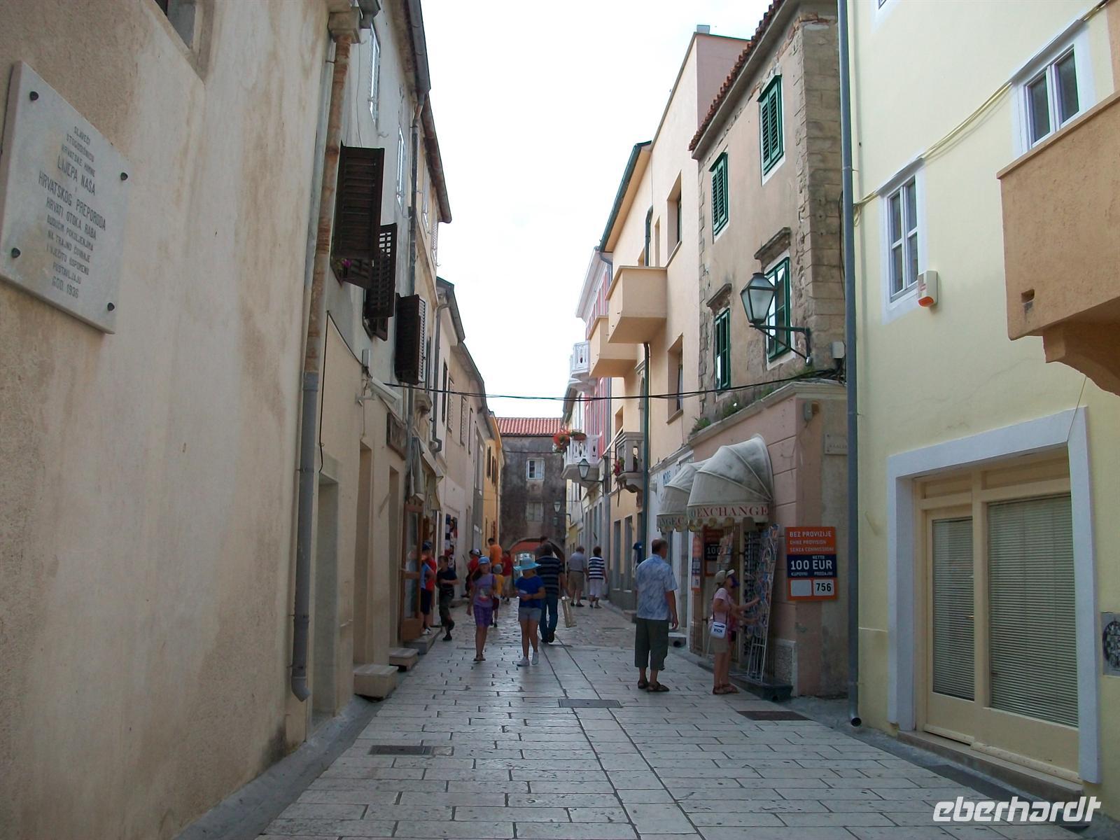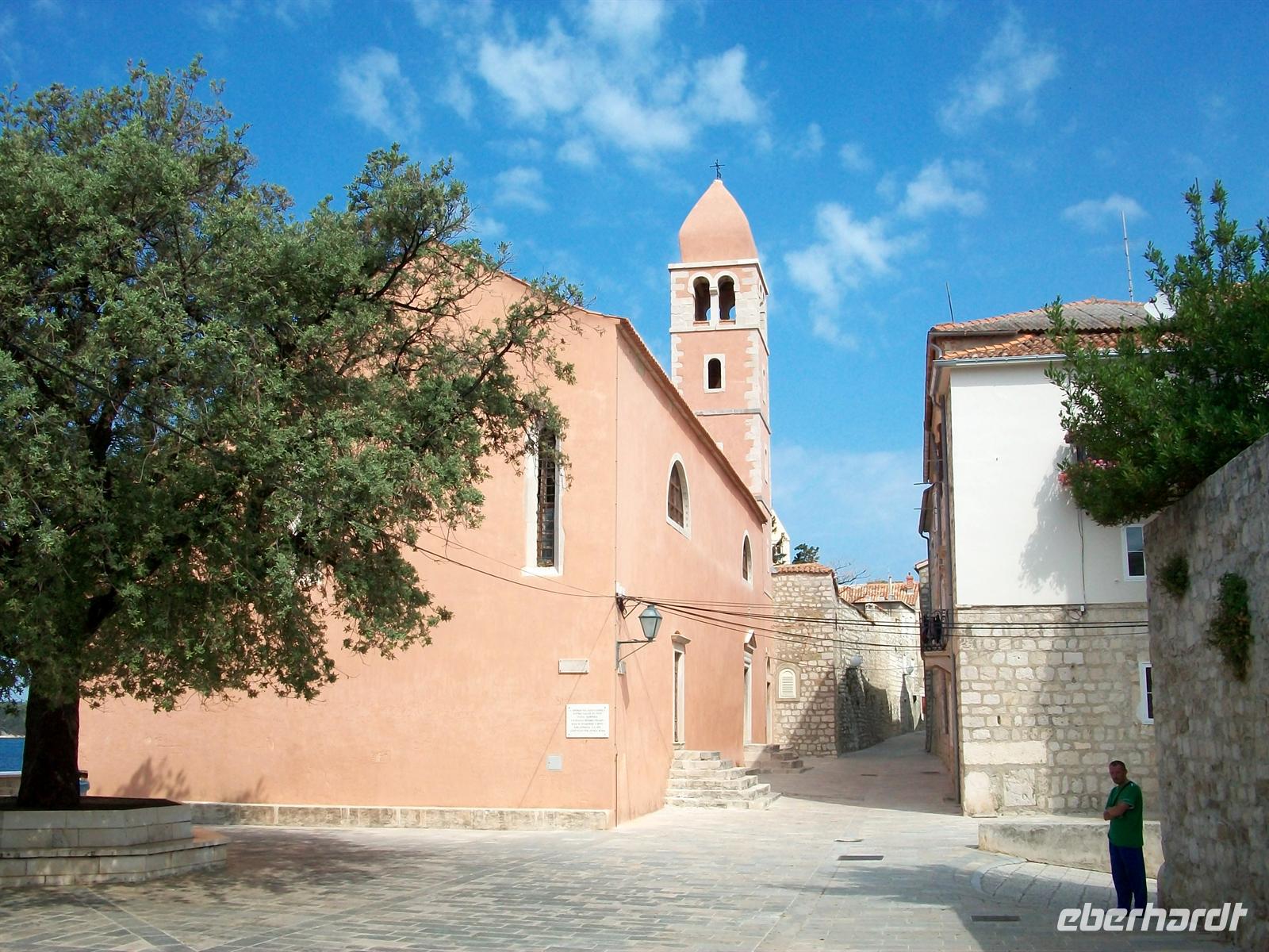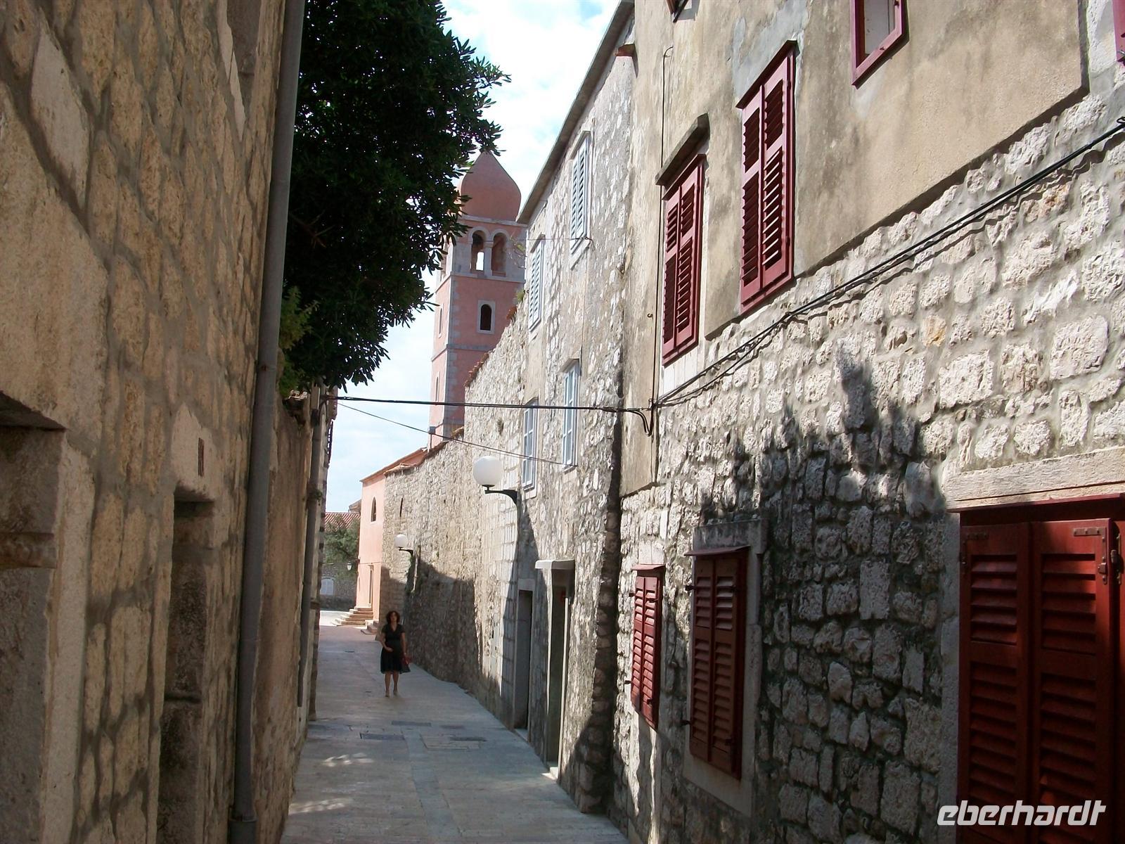 und Viktor weiß viel Wissenswertes über seinen Heimatort zu berichten. Schwer war früher das Leben hier und immer auch geprägt von einer tiefen Religiosität. Bald sind die Glocken zu hören sie rufen die Gläubigen zur Heiligen Messe, heute ist Sonntag. Ein Hauch von Feierlichkeit liegt in der Luft als wir auf der oberen Gasse mit Blick aufs Meer die Einwohner des Ortes auf dem Weg in die Kirche beobachten. Bald dringt feierlicher Orgelklang an unsere Ohren, es ist eine schöne Impression die uns auf dem Weg durch Rab begleitet.