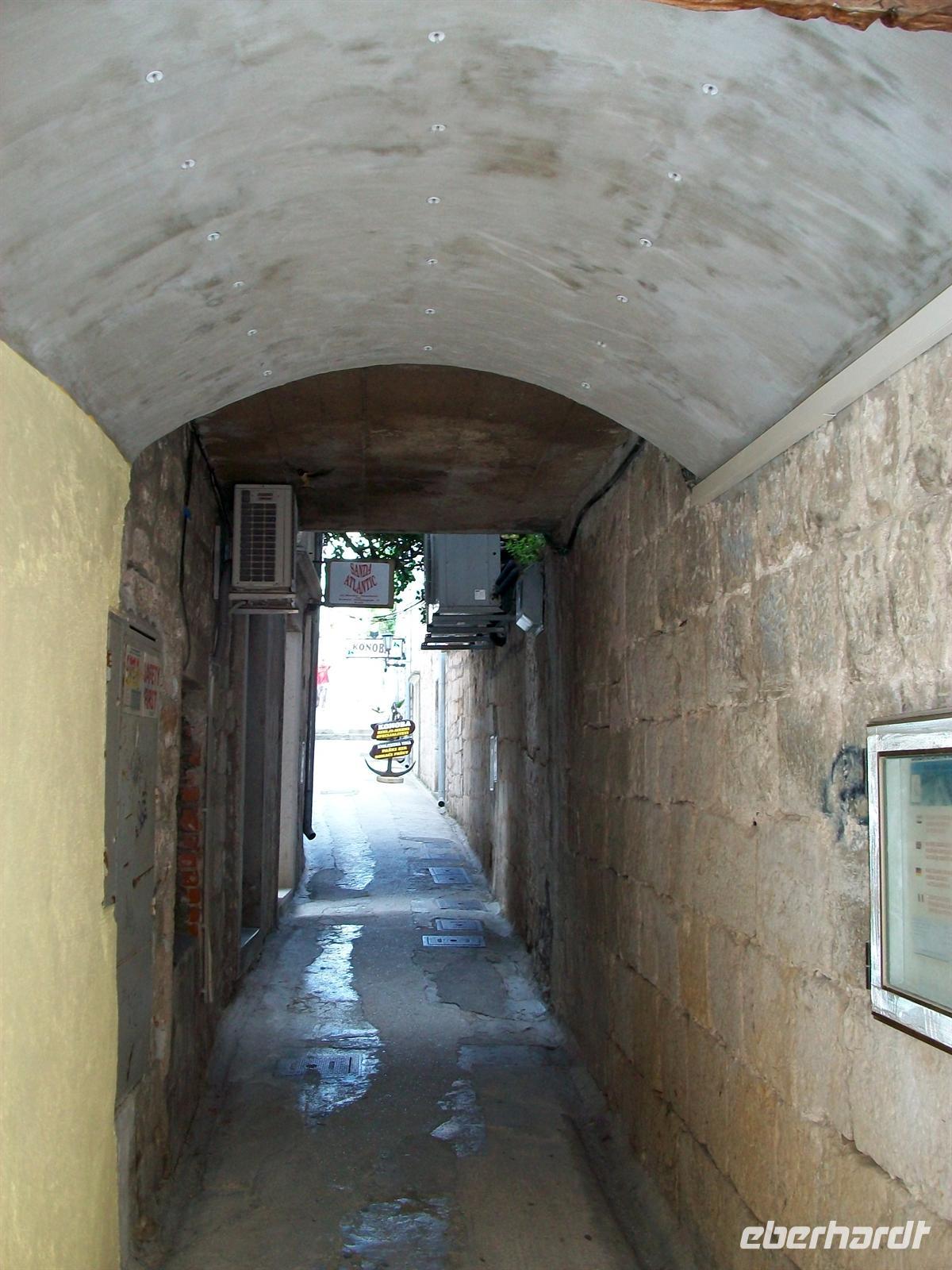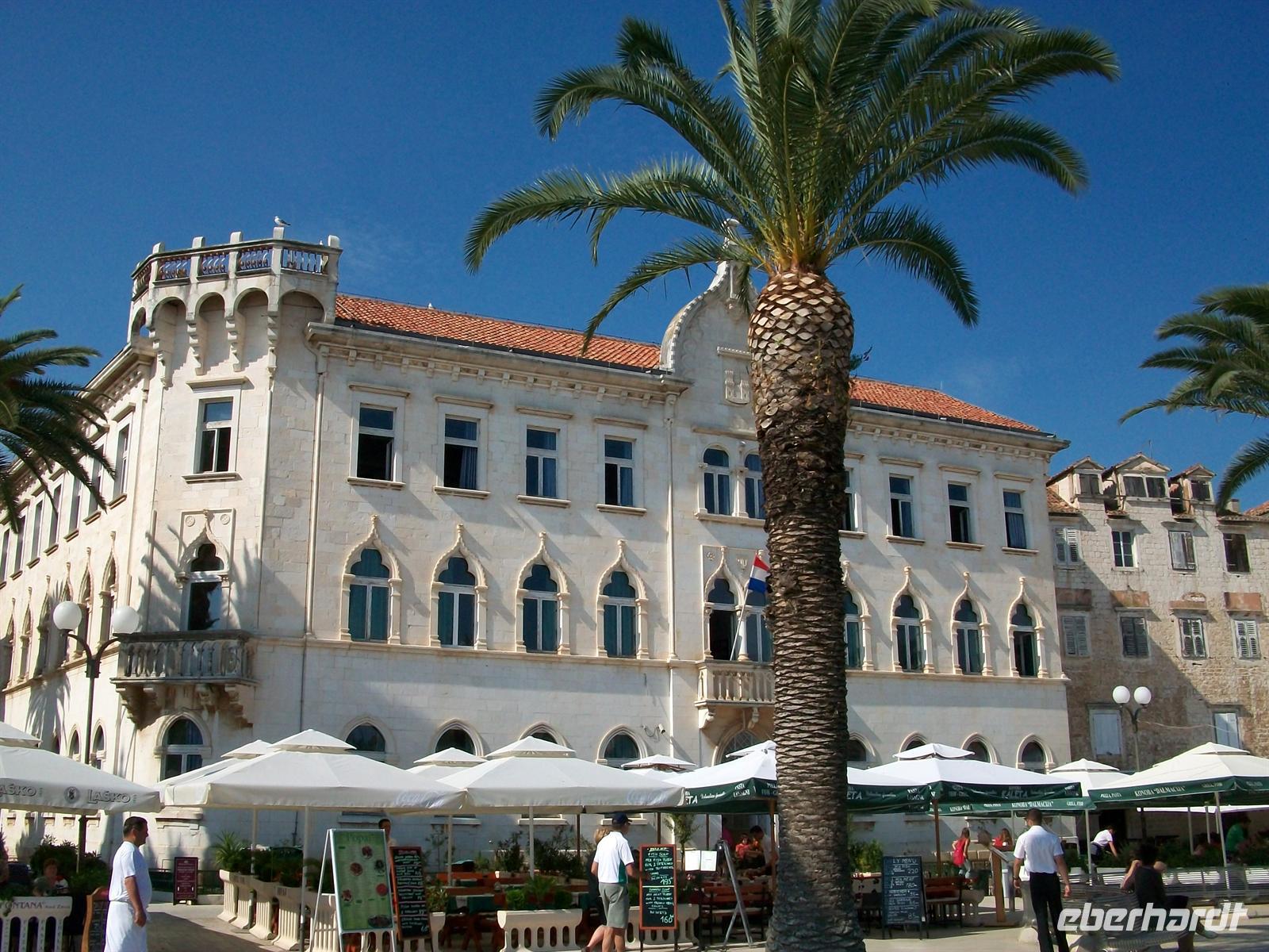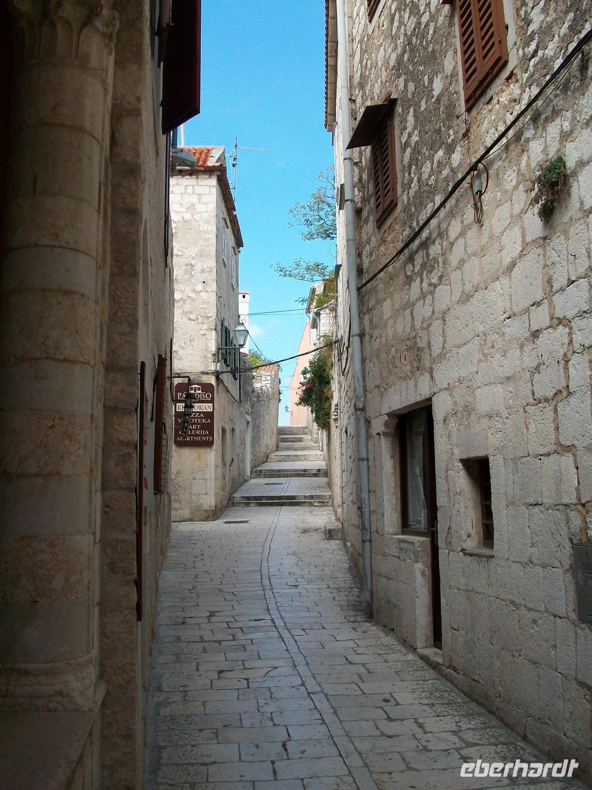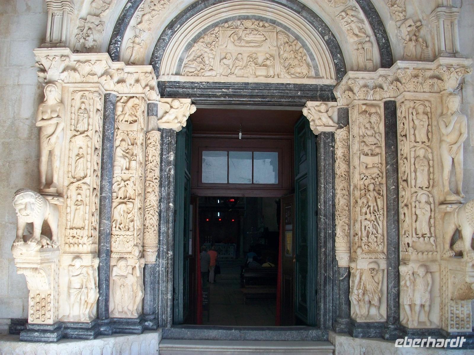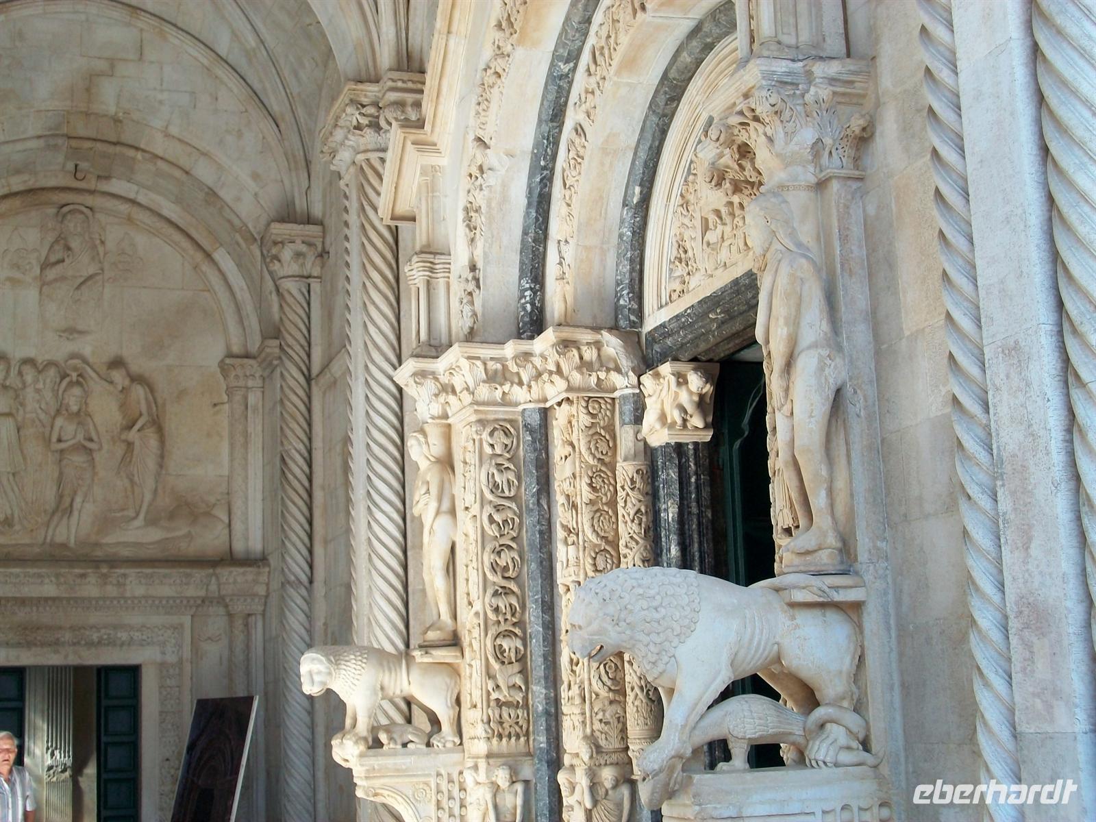 Trogir ist uns aus dem Mittelalter im Originalzustand erhalten geblieben. Wir tauchen ein in diesen lebendigen Ort der längst von den Touristen aus aller Welt erobert wurde; über eine Brücke erreichen wir den Eingang zur Stadt und schon sind wir in schmalen Gässchen unterwegs. Hier kann man sich richtig hineinversetzen in das Leben einer Zeit die längst schon in den Tiefen der Geschichte verschwand. Schön ist die venezianische Architektur, schmuck die Häuser aus hellem Kalkstein und die Kathedrale mit den filigranen Skulpturen des Hauptportals ist für jeden Liebhaber
