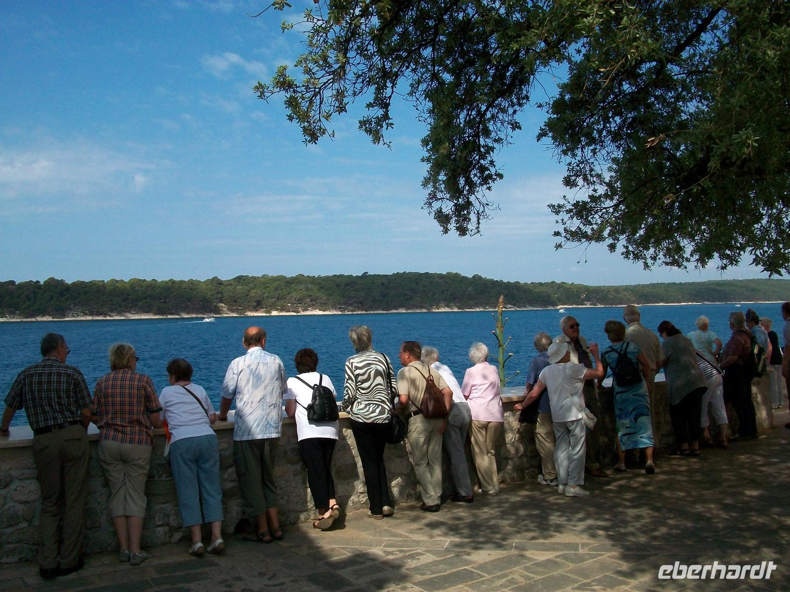 Wir sehen eine sehr grüne Insel, erfahren viel über die anderen Orte und haben dann bei „Dionis“ unser Mittagsessen. Dieses familiengeführte Restaurant hat leckere Fischspeisen zu bieten, alles frisch aus dem Meer. Josip, der Wirt, unterhält auf seine launige Art die Gäste vorzüglich und dabei vergeht die Zeit wie im Fluge. Warum müssen die wirklich schönen Stunden im Leben immer so schnell vergehen? Etwas Wehmut schwingt schon mit, denn morgen müssen wir dieses wirklich schöne Land Kroatien mit den netten und gastfreundlichen Menschen verlassen. Doch der komplette Nachmittag steht unseren Gästen nun noch zur Verfügung um die Perle der Kvarner Bucht individuell zu erschließen, auch ein Bad in der Adria ist an diesem sonnigen Tag möglich.