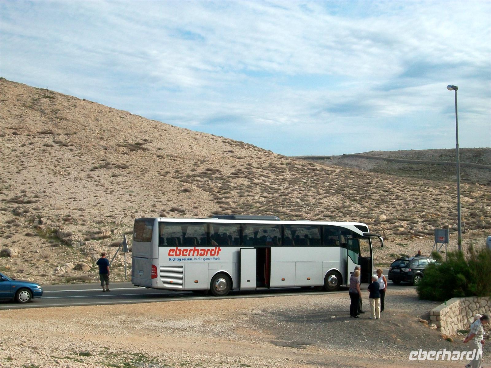 Kahl ist die Insel Pag zu sehen die uns des Wegs bis nach Jablanac begleitet. Hier nun verlassen wir die Küstenstraße und schwenken ein auf die Serpentinen, sie bringen uns zur Fähre auf Meeresniveau.