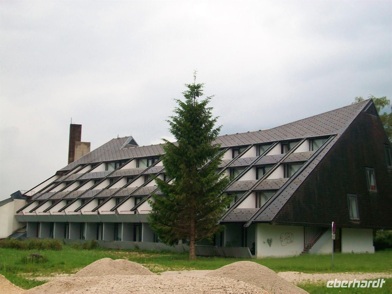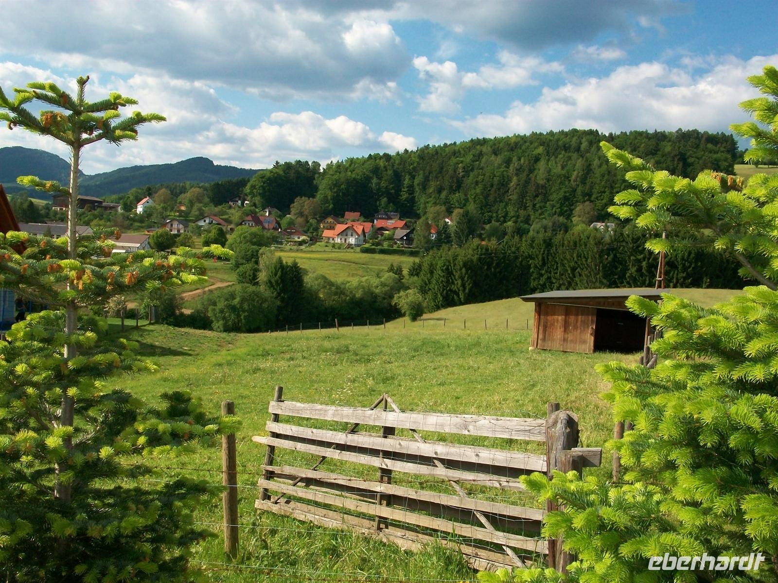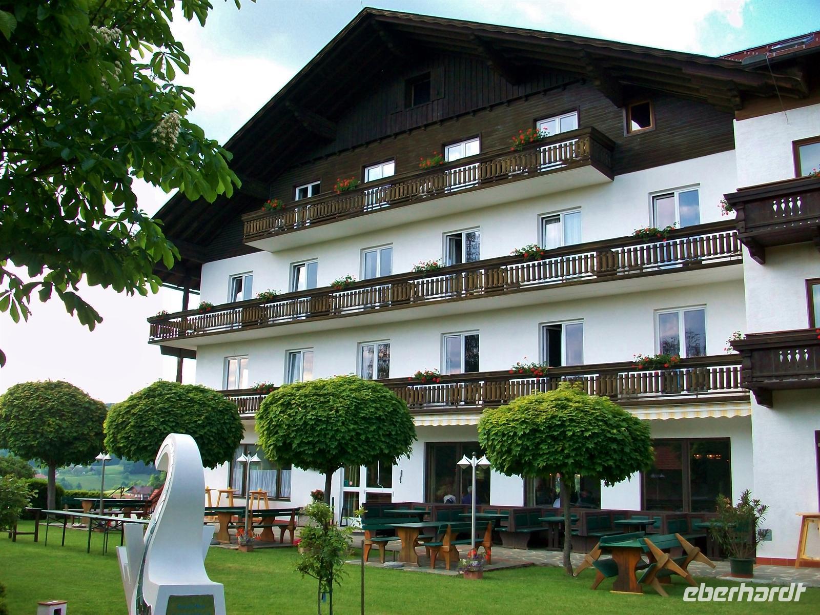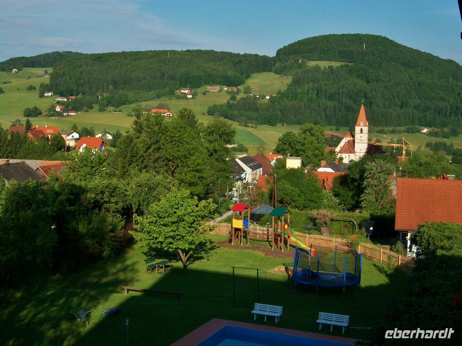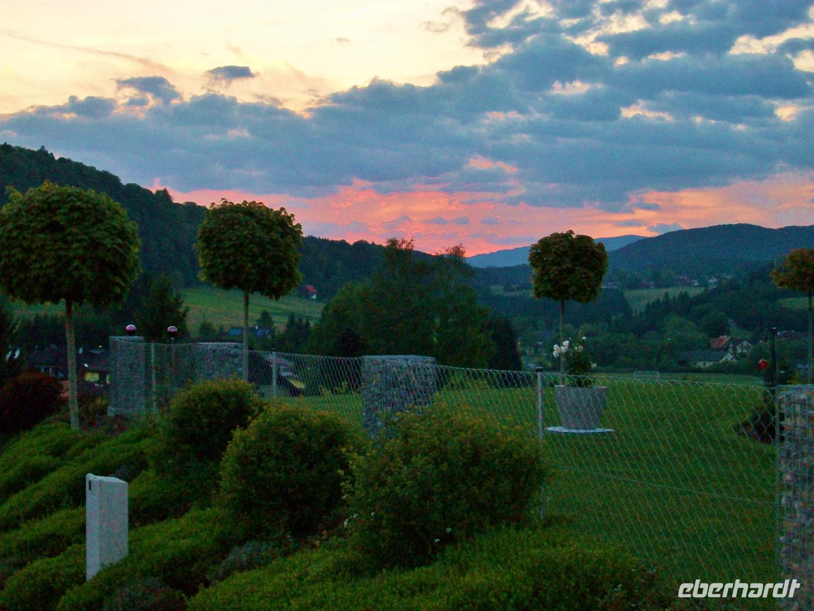 5.6.2012. Als wollte sich Petrus für seinen Missgriff von gestern entschuldigen: von einem blankgeputzten blauen Himmel lässt er die Morgensonne erstrahlen, vor dem Hotel glitzern die grünen Wiesen und machen die schöne Impression perfekt.