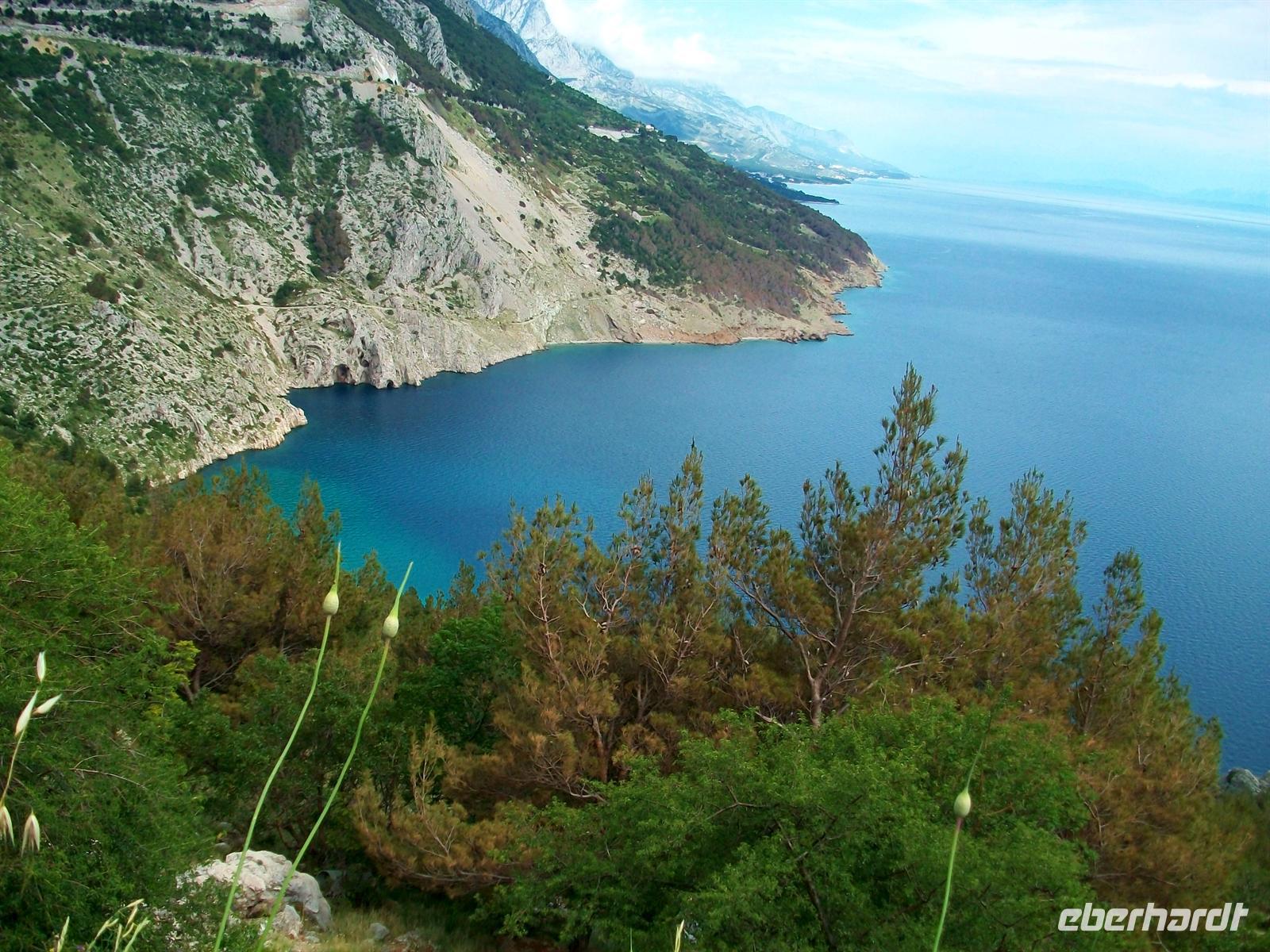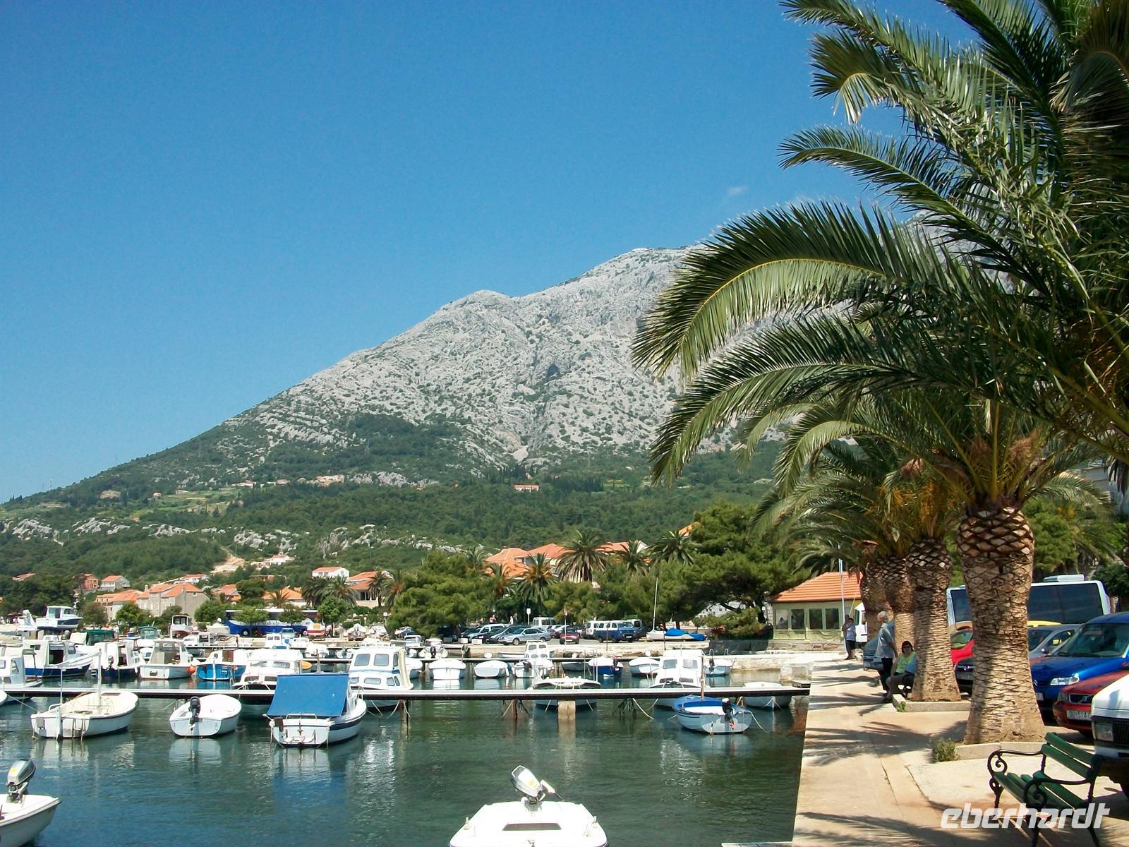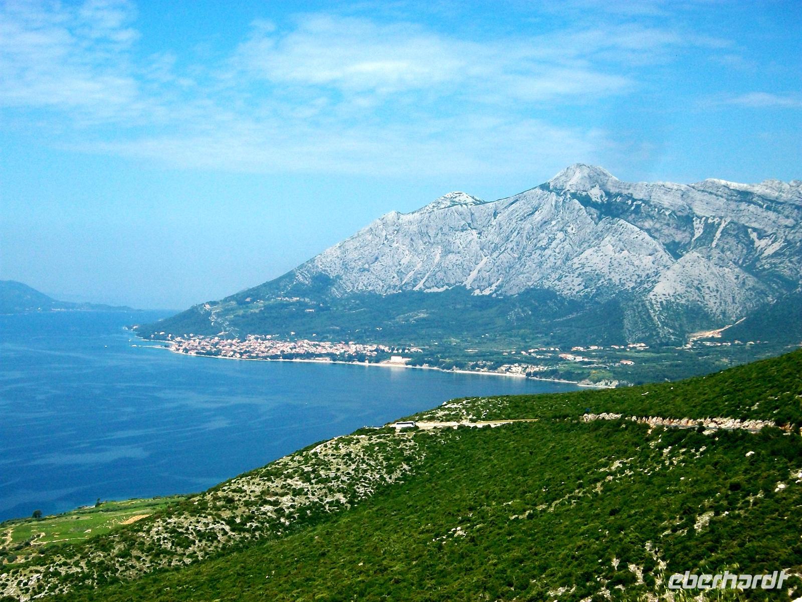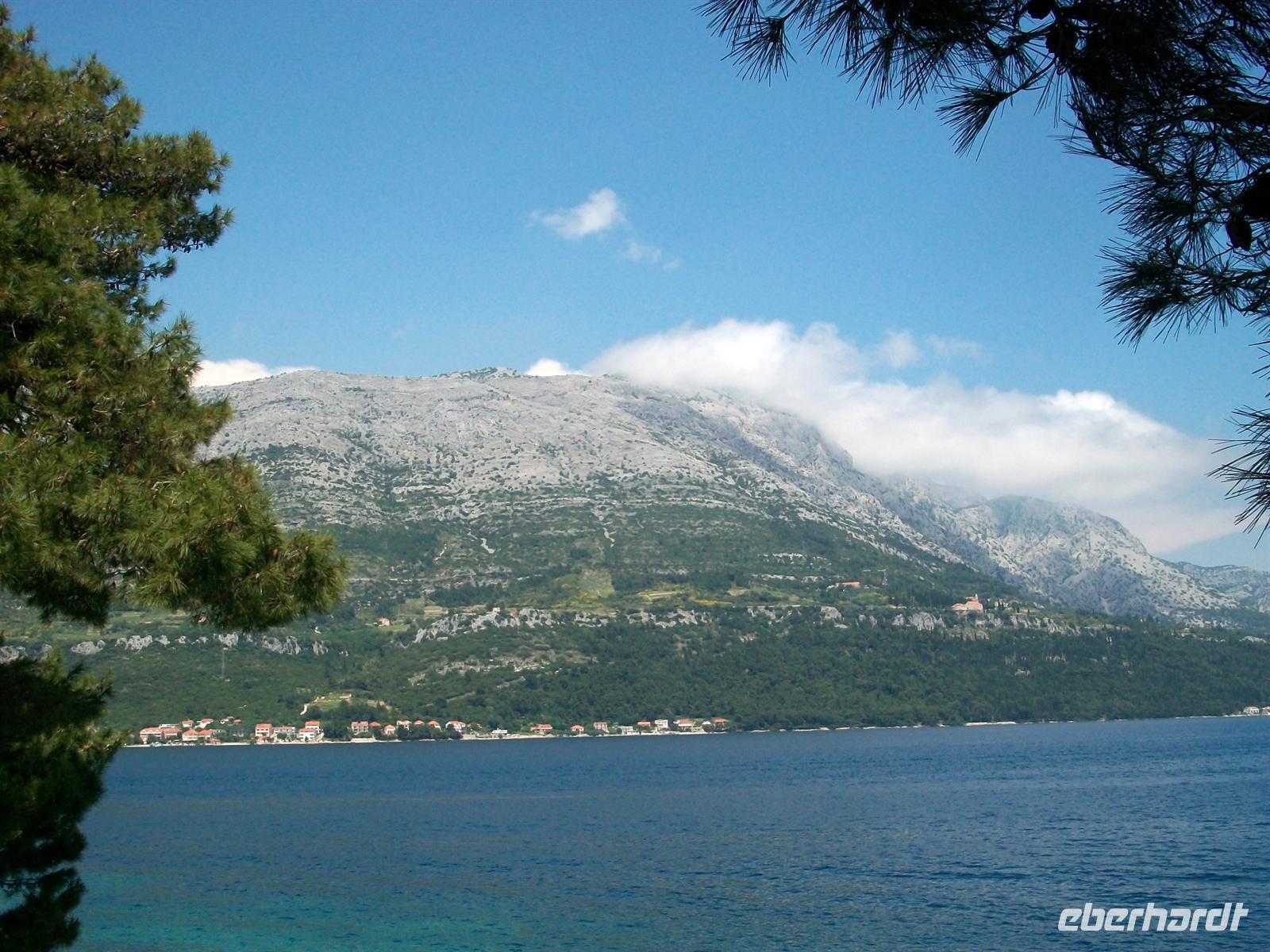 Gegen halb zehn geht unsere Tour weiter, fast über die gesamte Länge der Halbinsel. Am schönen Aussichtspunkt über dem Ort Orebi haben wir einen imposanten Blick auf das Meer und die Inseln Korula und Mljet; vor uns hat sich der mächtige Eliasberg aufgebaut, es ist mit fast 1 000 Metern die höchste Erhebung der Halbinsel.