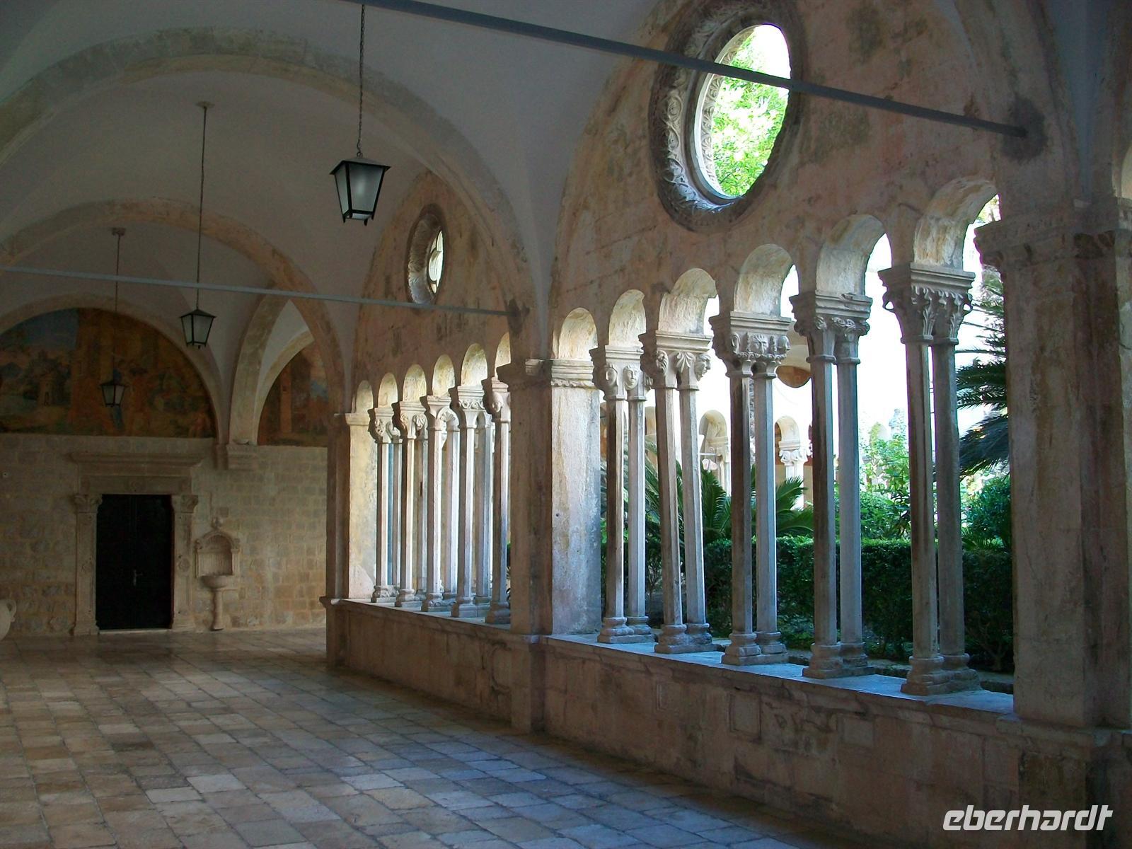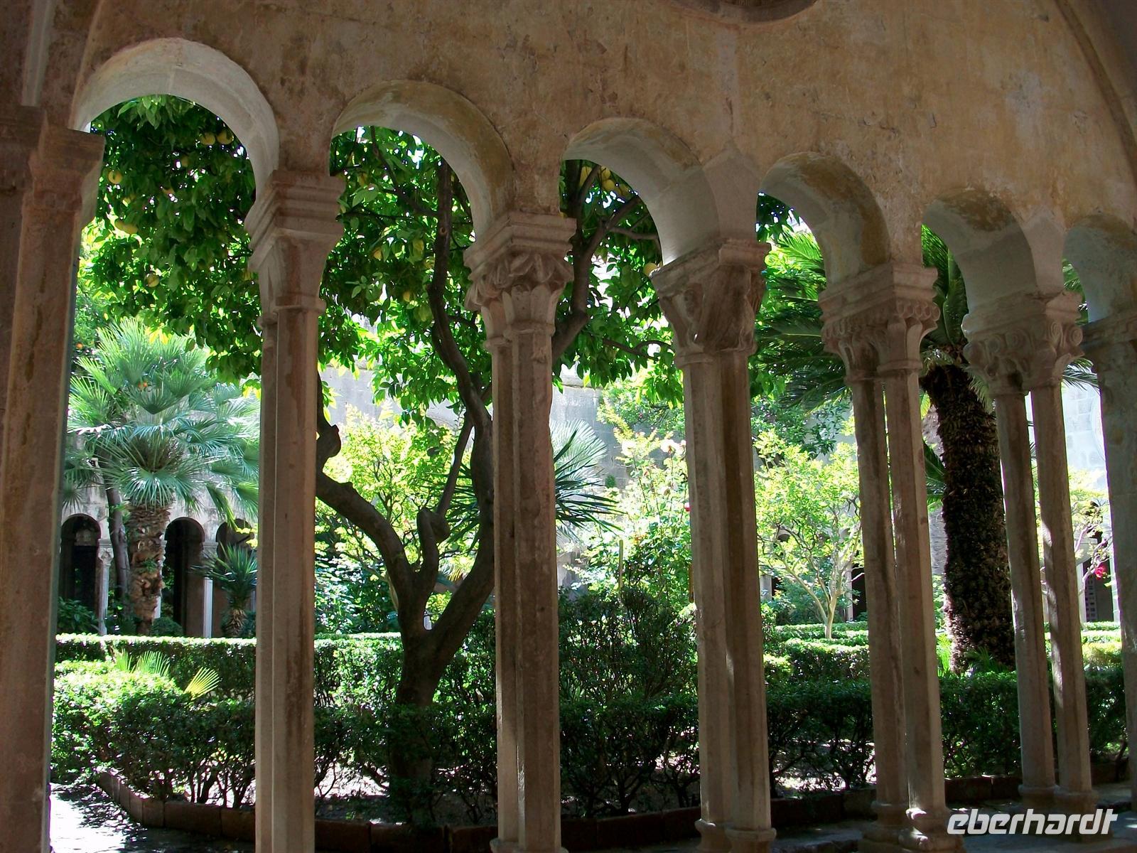 Vom großen Onofriobrunnen aus gelangen wir zum Franziskanerkloster mit seiner sehr alten Apotheke. Immer wieder eine Augenweide ist der romanische Kreuzgang mit seinem gepflegten Garten im Innenhof.