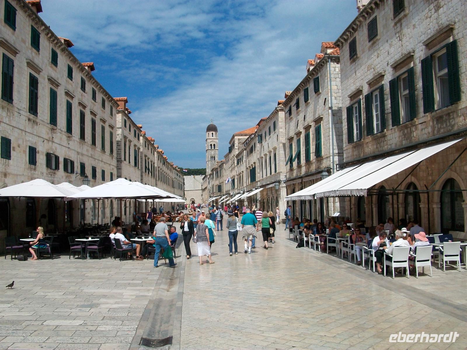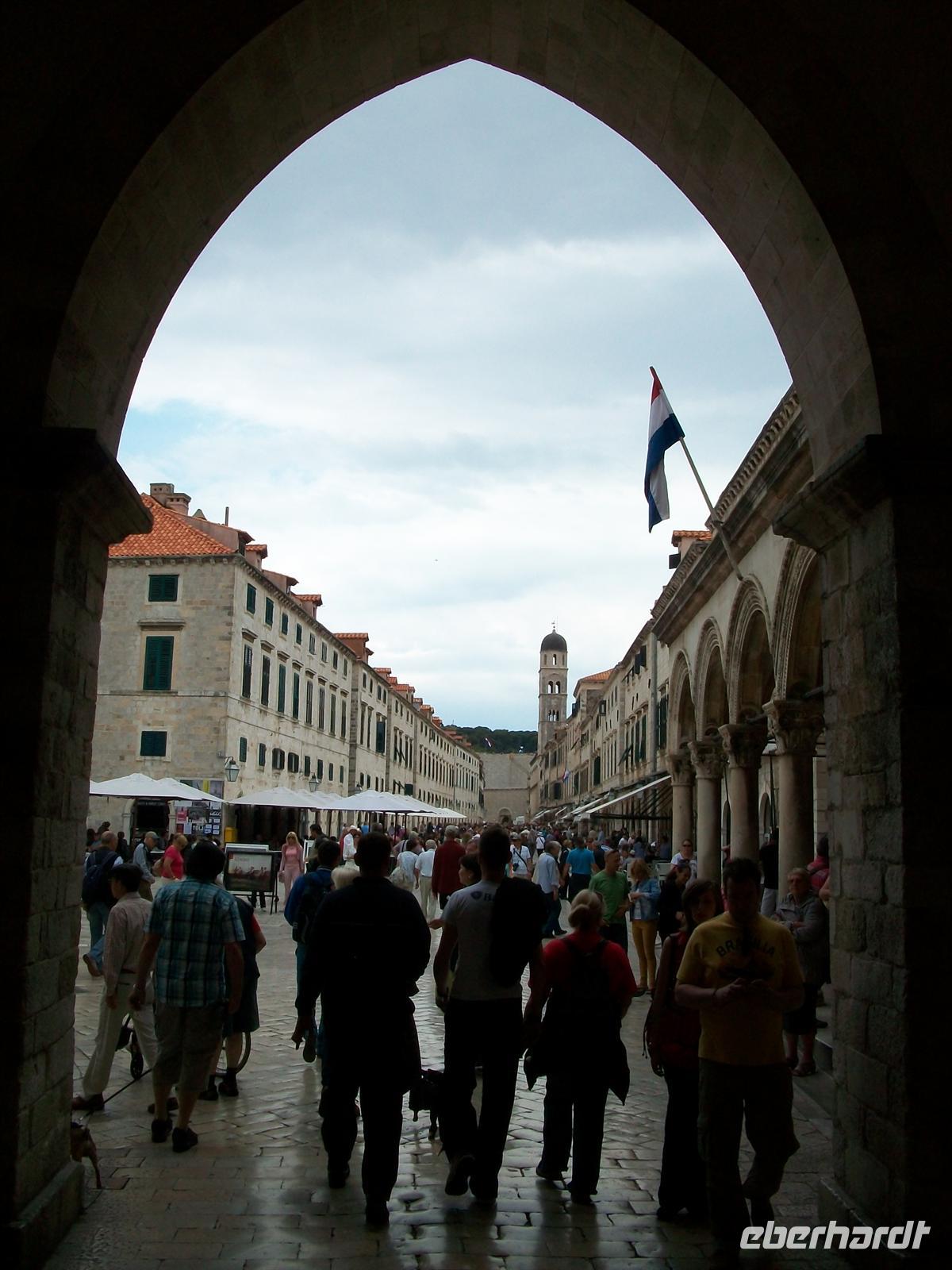 30.5.2012. Pünktlich werden wir gegen neun vom Sonderbus abgeholt der uns zur Altstadt bringen wird. Schon während der Fahrt sehen wir von oben die mächtigen Befestigungsmauern der Stadt; am Pileplatz werden wir von meiner Kollegin Antea erwartet, sie wird uns nun in gewohnt hoher Qualität Dubrovnik zeigen. Es ist immer wieder schön hier zu verweilen, im Laufe der Jahre sind über die Geschichte der Stadt immer wieder neue Erkenntnisse gewonnen worden und Antea macht uns damit vertraut. Was ist nicht schon alles über diese Stadt geschrieben worden? Viel Prominenz weilte in diesem Ort und nun taucht auch unsere wissbegierige Reisegruppe hier ein.