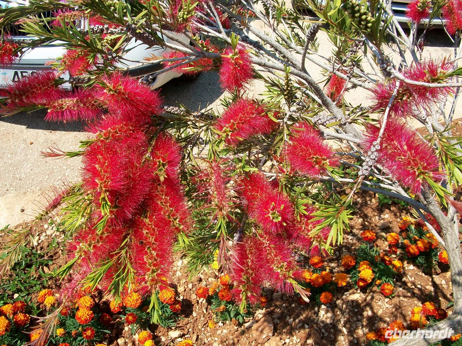 Wir sehen die sehr üppige Vegetation mit ihrer großen Anzahl von schönen Blüten. Besonders eindrucksvoll ist das in dieser Jahreszeit anzuschauen. Ein buntes Farbenmeer erfreut unser Auge das kräftige Grün der mediterranen Vegetation bildet dazu einen schönen Kontrast.
