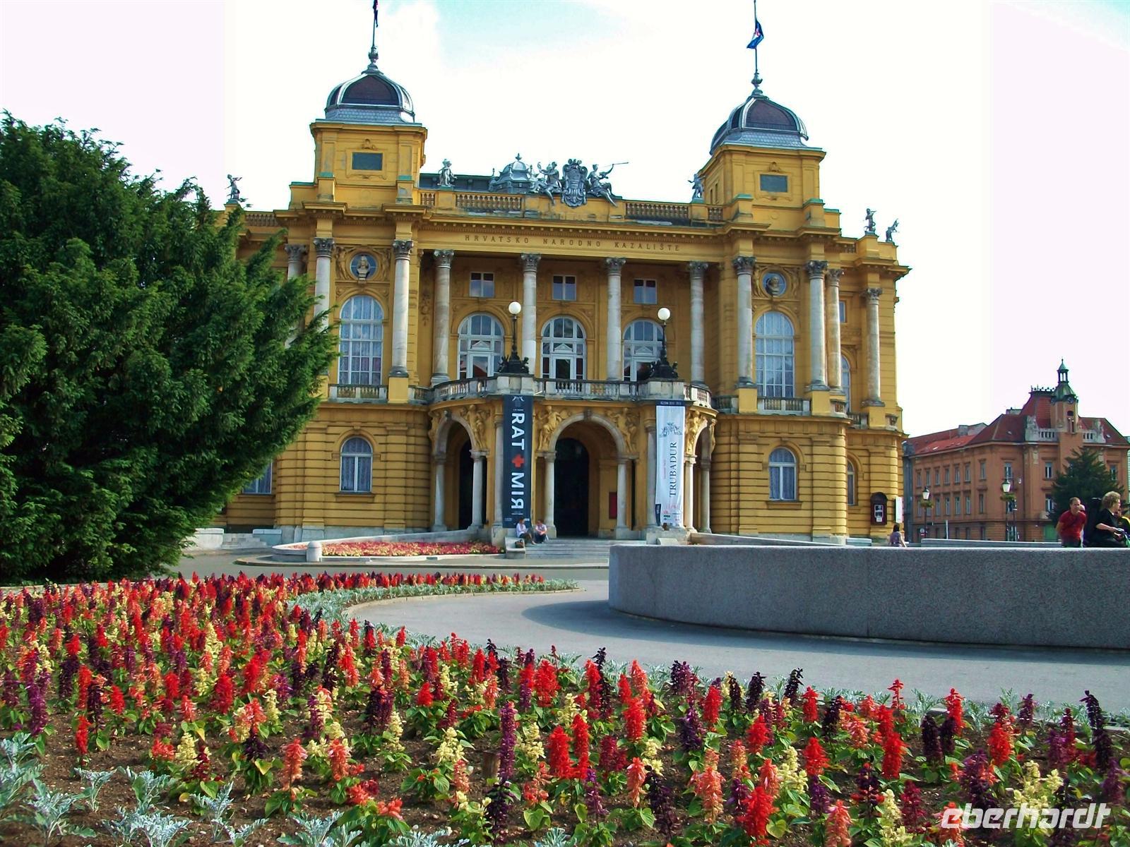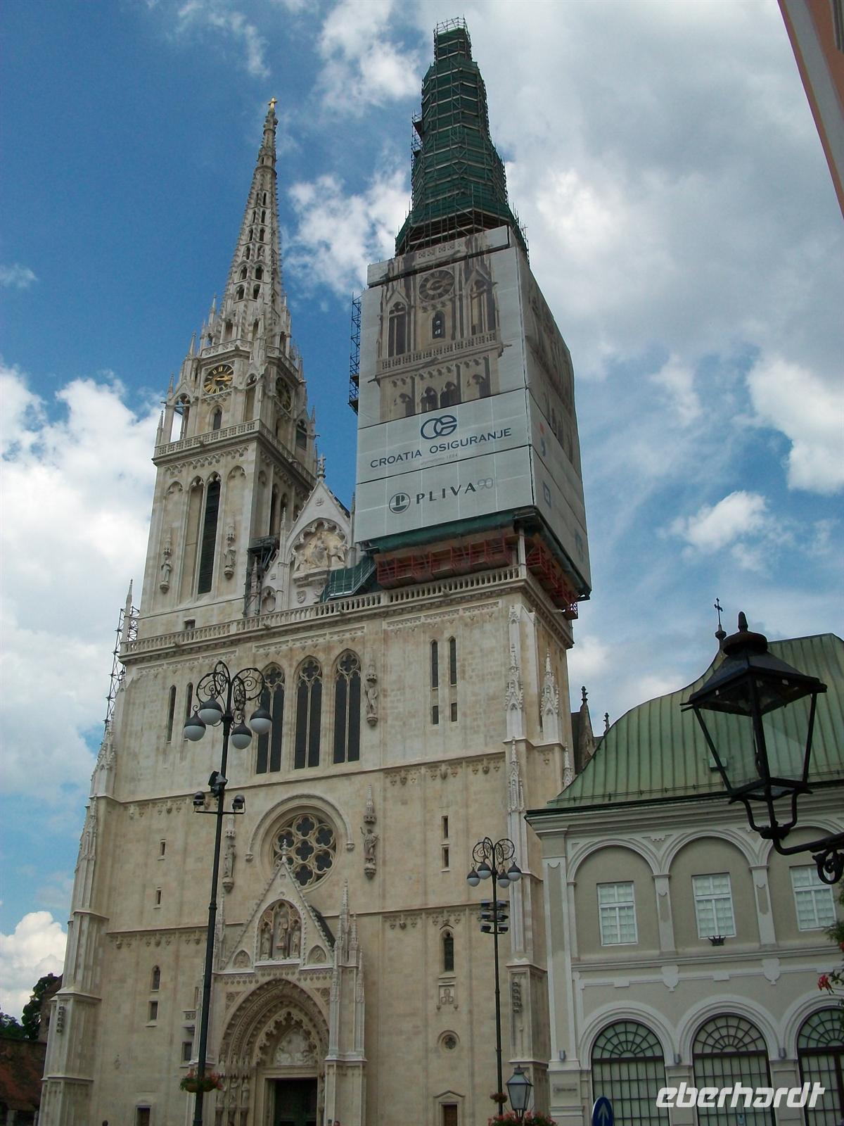 Die Stadt ist heute ruhiger als sonst, es ist Sonntag. Vom Hotel gelangen wir am Botanischen Garten vorbei zum Platz wo wir das gelbe Gebäude des Opernhauses zu sehen bekommen. Dann geht es quer durch die Stadt und Milovan bringt uns die wechselvolle Geschichte näher. Dabei durchfahren wir die Unterstadt mit ihren Häusern die aus Habsburger Zeiten stammen. Sehr geschmackvoll ist so manche Fassade gearbeitet, an anderen bröckelt der Putz- hier gibt es noch viel zu tun. Eine interessante Anlage bildet der Mirogojfriedhof; einmalig in der Geschichte des Balkans ist wohl die Tatsache dass hier alle Nationalitäten und Religionen ihre letzte Ruhe gefunden haben. Die Außenfassade ist fast einen Kilometer lang und besticht durch ihre Gestaltung im Neorenaissancestil. Dann geht es hinunter um dem ehemaligen Bischofsbezirk und der Kathedrale einen Besuch abzustatten. Diese beeindruckende Kirche wurde nach dem Erdbeben 1880 völlig neu aufgebaut und hat in ihrem Inneren so manches Kleinod aus dem Vorgängerbau aufbewahrt.
