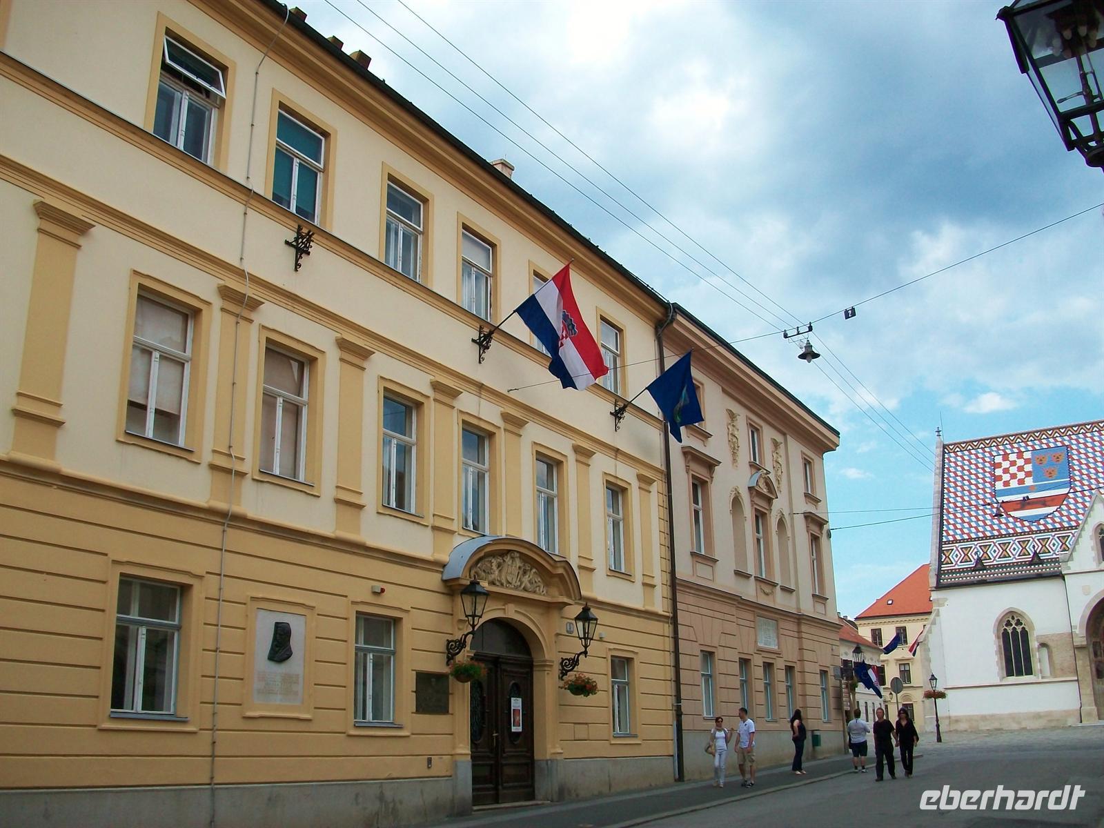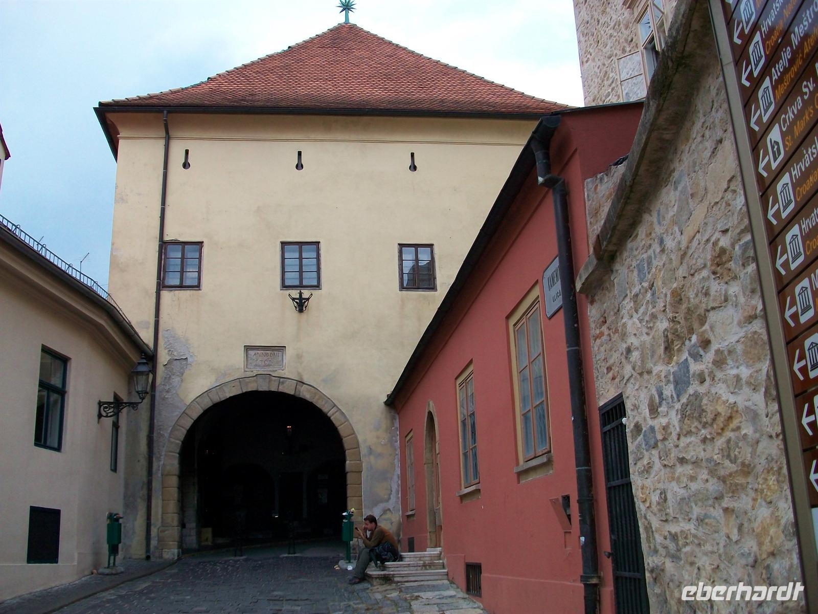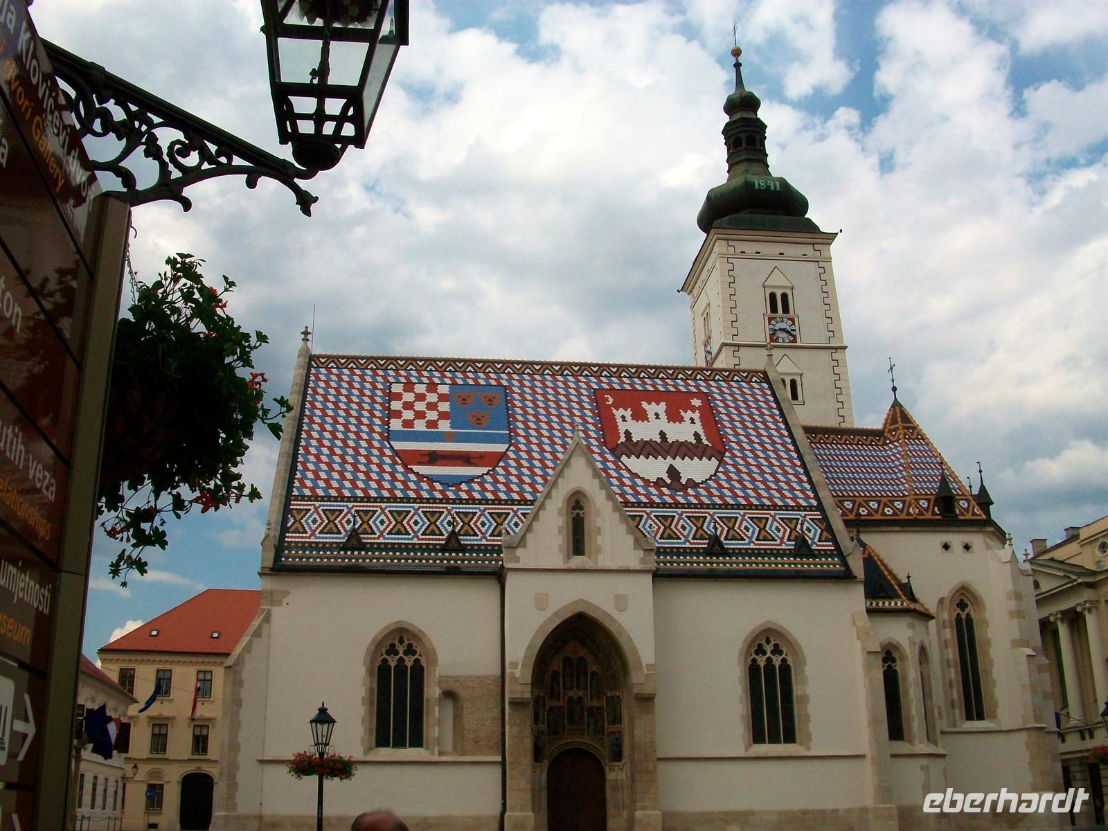 Dann sind wir mit Milovan zu Fuß unterwegs die Oberstadt zu erkunden. Es ist der Teil der alten Stadt Agram der historisch noch am besten erhalten blieb. Wir durchqueren das mittelalterliche Steintor und sind bald auf dem Zagreber Markusplatz angelangt. Immer wieder ein Blickfang ist die Markuskirche mit ihren bunten Dachziegeln aus Ungarn.