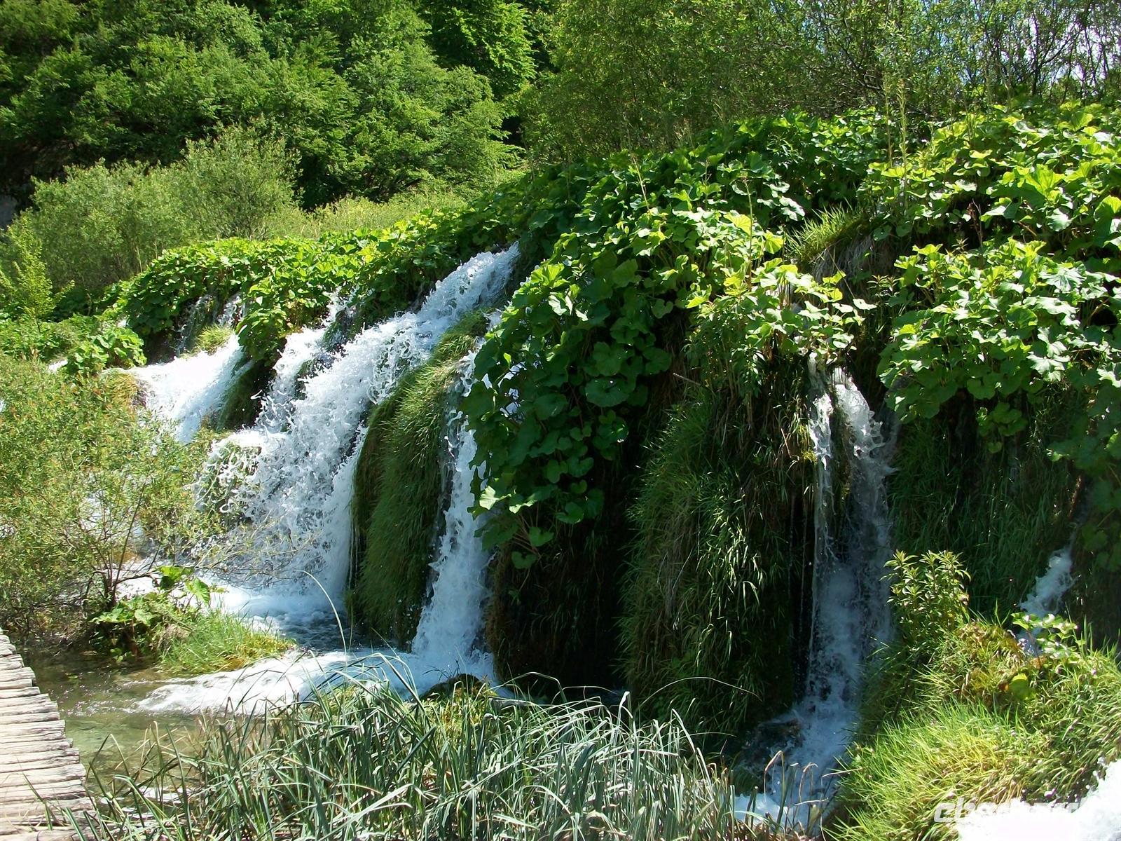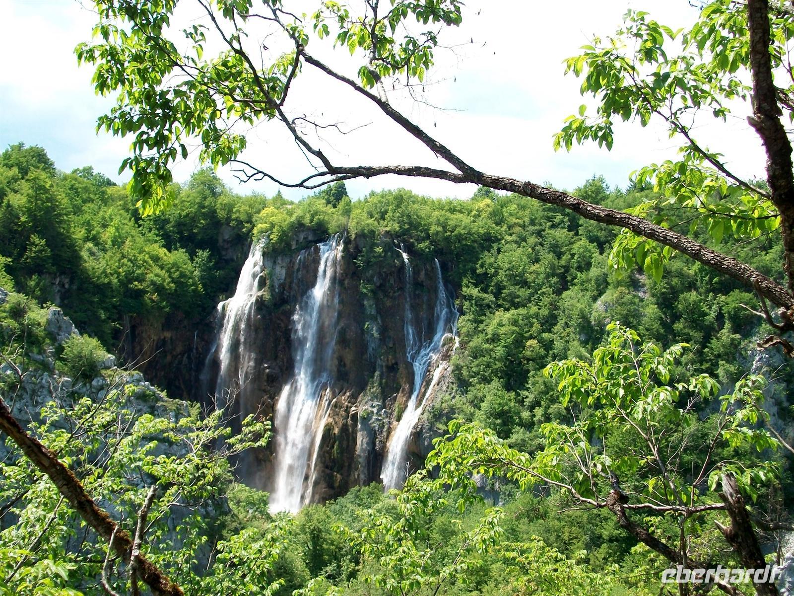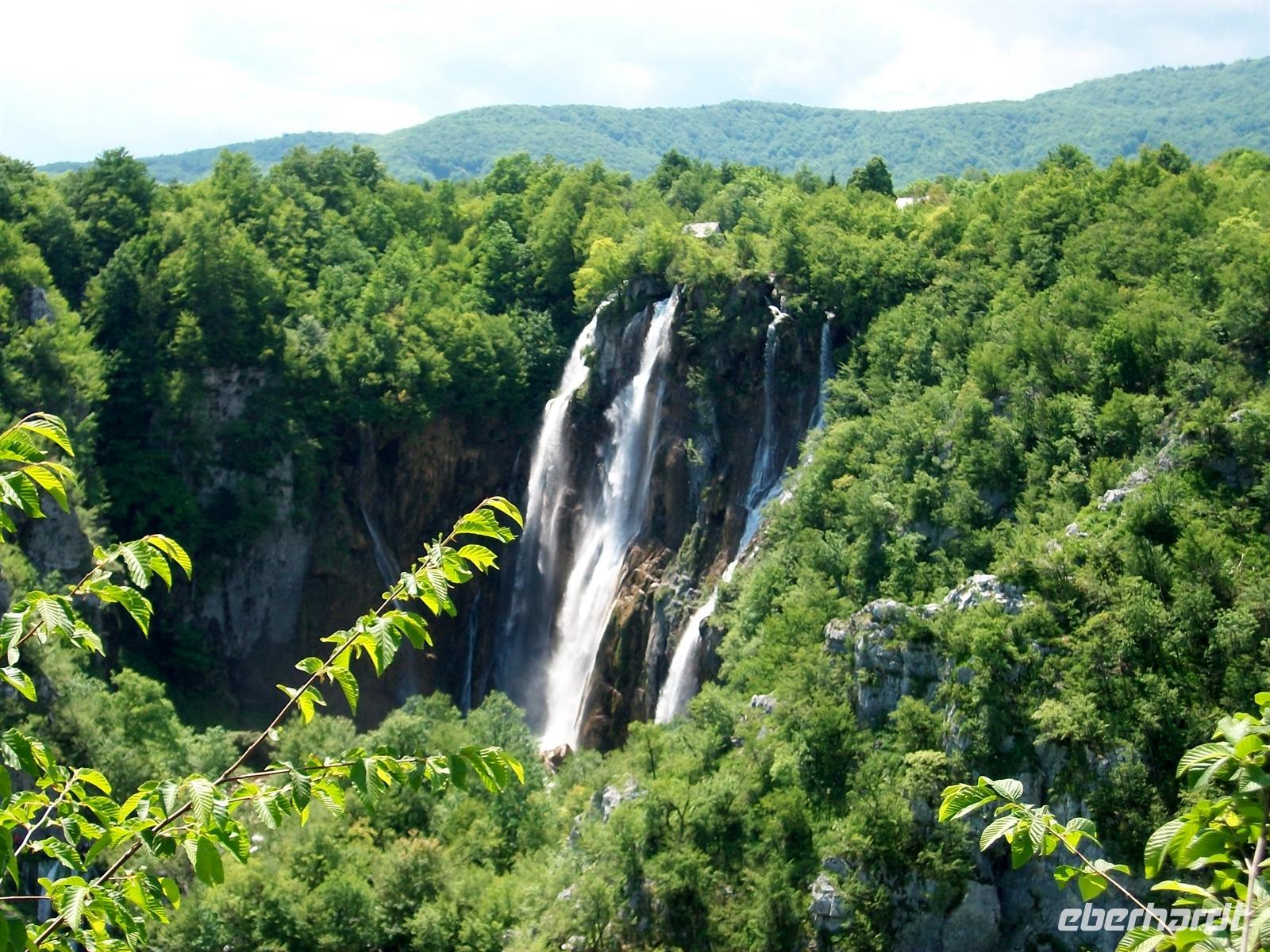 Dann geht es weiter, wir kommen an unserem Hotel an, genehmigen uns einen kleinen Mittagsimbiss und starten dann zur Besichtigung dieser einmaligen Naturschönheit: den Plitwitzer Seen. Gleich nach dem Eingang hören wir schon das mächtige Brausen des Großen Wasserfalls, von oben sehen wir dieses Naturwunder. Dann führt uns der Weg hinunter, wir überqueren den ersten See über einen Knüppeldamm und stehen dann staunend vor dem Wasserfall der seine Wasser aus fast 80 Metern zu uns hinunter sendet. Ein Schleier feinsten Wasserstaubs netzt das Gesicht und hier wird offenbar wie mächtig Mutter Natur ist. Das Wasser zerstiebt zu unseren Füßen und vereinigt sich dabei wieder; als Fluss nimmt es den Weg weiter abwärts.