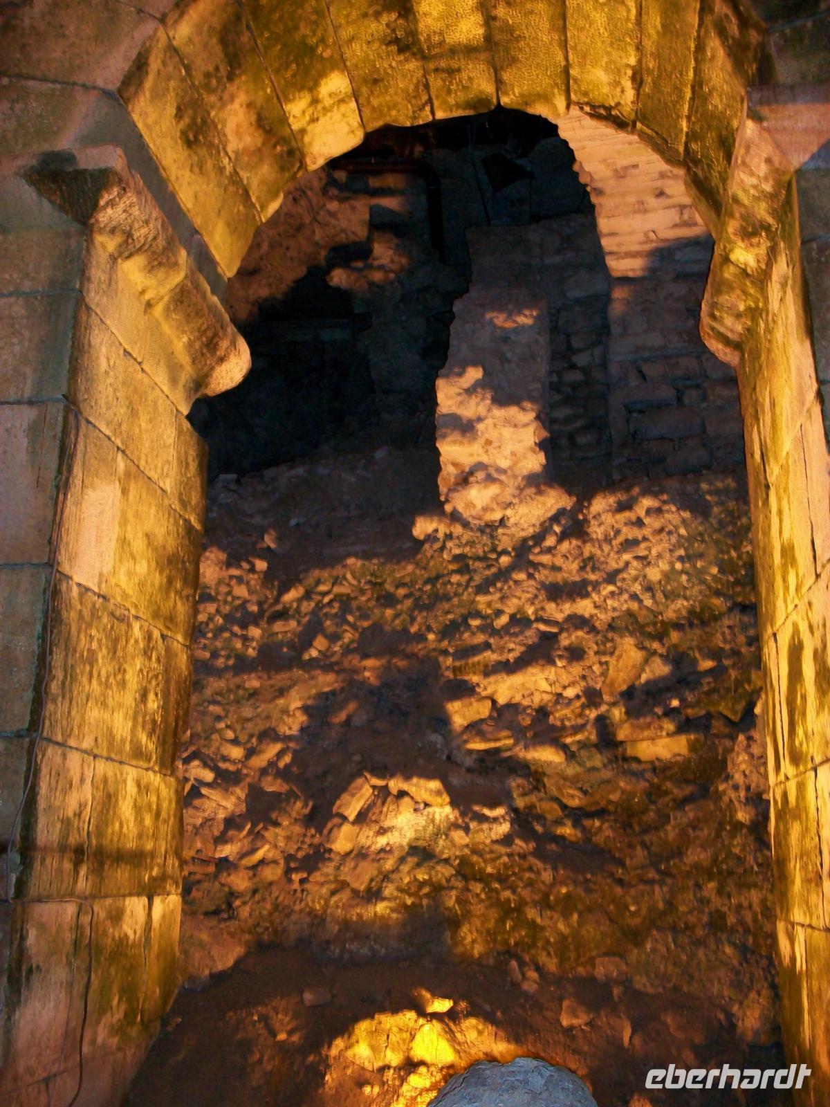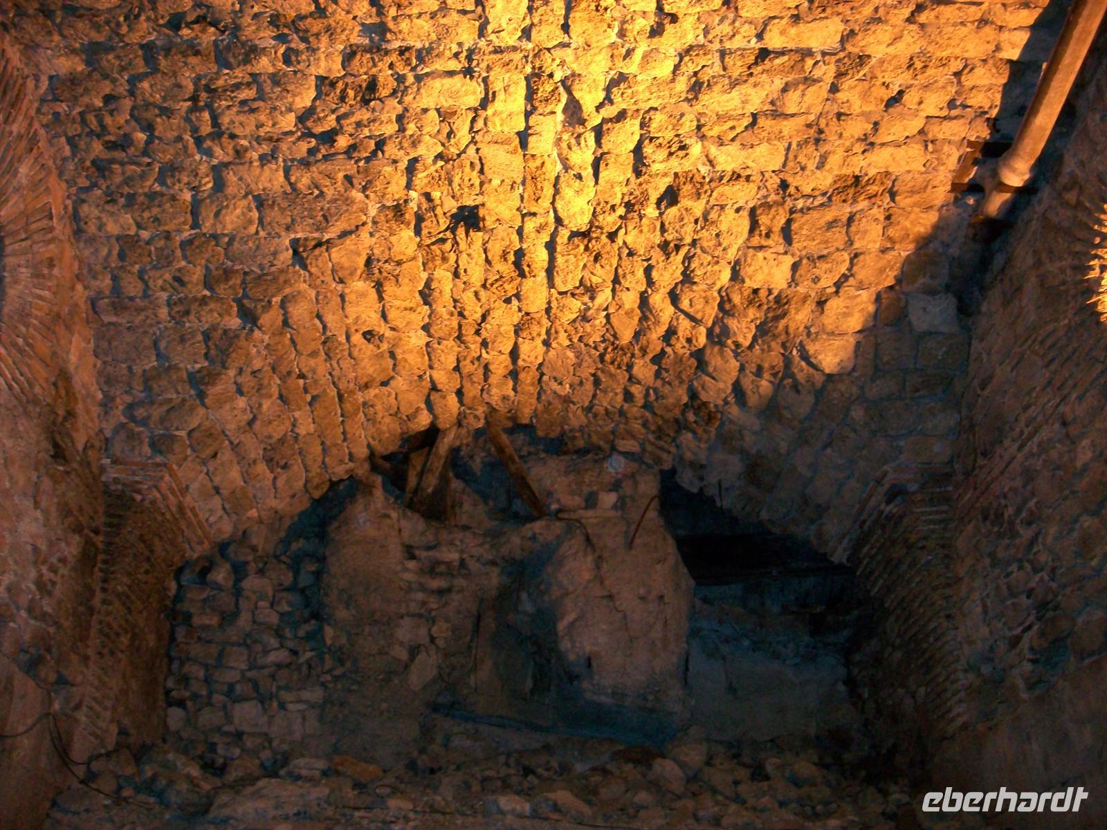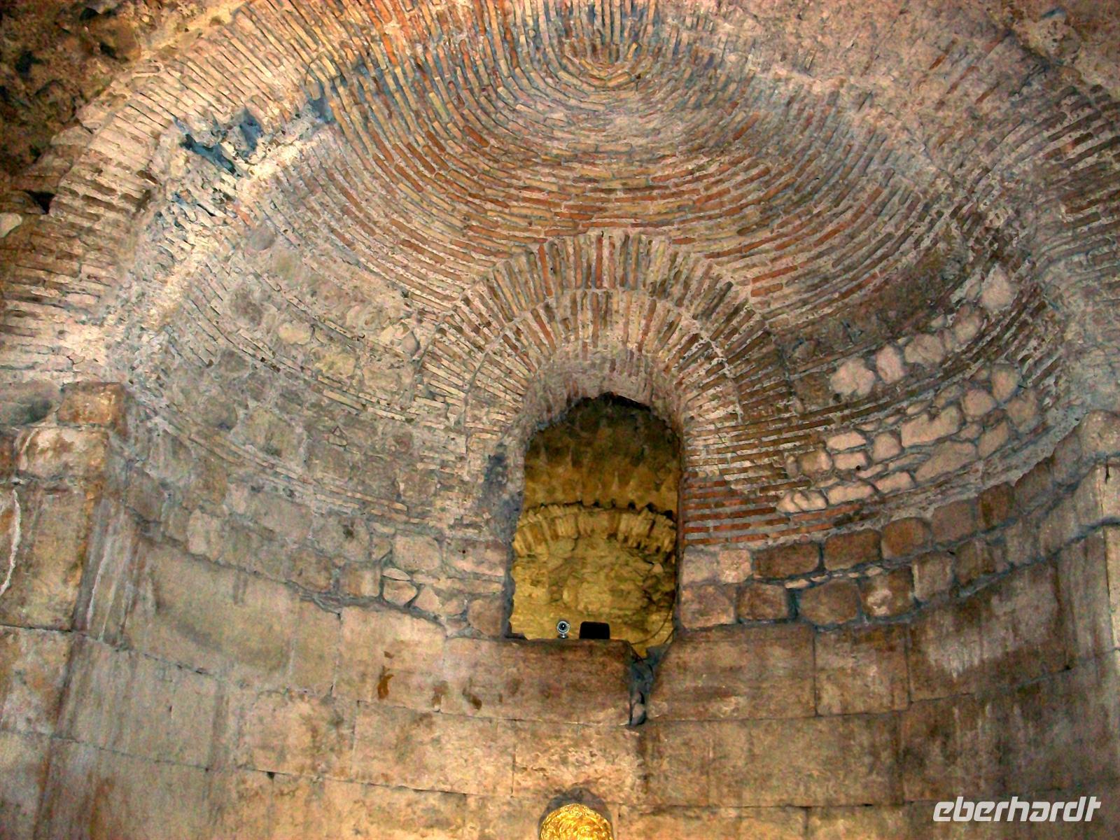 Nun tauchen wir durch das Südtor ein in den Palast und gehen gleichsam fast zweitausend Jahre zurück in der Zeit. Die Mauern atmen den Geist des Römischen Imperiums, gigantische Kalksteinquader halten die Konstruktion und besonders hier unten wird offenbar: die Römer haben für die Ewigkeit gebaut. Wie viele Erdbeben und andere Naturkatastrophen hat es bisher gegeben, zahllose Kriege und Zerstörungen haben jüngere Bauten hinweggefegt, die Römischen Mauern sind geblieben.