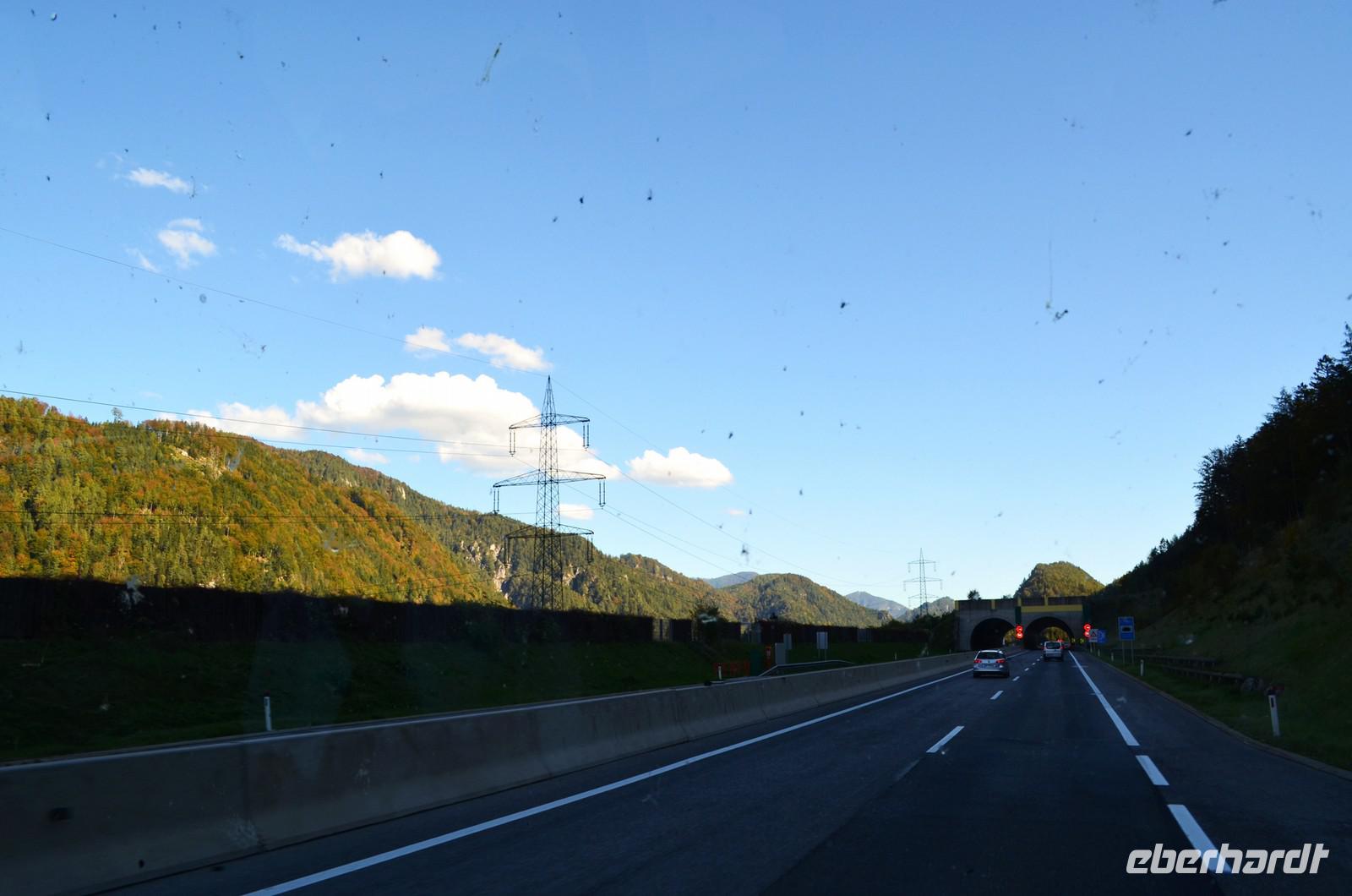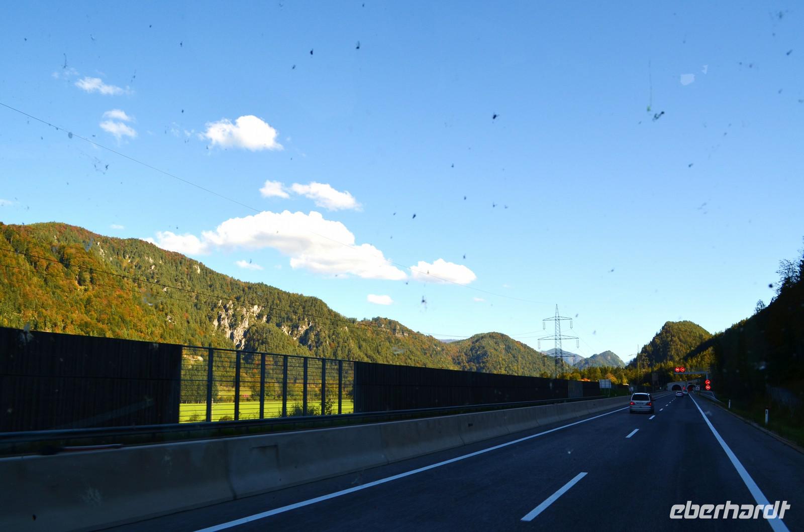 Der Tag beginnt mit einer wunderschönen aber leider auch verregneten Fahrt durch die Julischen Alpen. Es ist kühl geworden an diesem Morgen und der nahende Winter kündigt sich mit weißer Pracht auf den Bergkämmen an. Es ist eine auf ihre Art schöne Kulisse. Wir fahren über den Predilpass und hinein nach Italien. Bald erreichen wir die Autobahn und dann geht alles im Zeitraffer - Villach, Tauernautobahn - der Schnee kommt immer weiter an den Berghängen herab. Nach dem Tauerntunnel, auf der Nordseite der Alpen ist richtig Winter. In Salzburg wird es wieder besser, wir fahren auf die A8, Mittag ist an der Raststätte Samerberg. Später machen wir nochmals Rast in Nürnberg-Feucht.