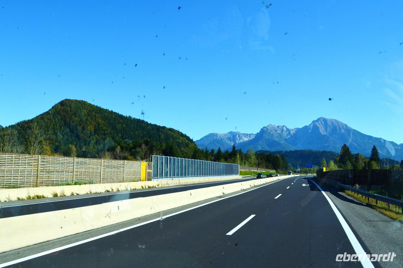 Ein Reisebus voller gut gelaunter und erwartungsfroher Menschen startet früh in Dresden, fährt über die A73 bis zum Dreieck Vogtland und dann die A93 bis nach Regensburg, wo er am Rasthof Pentling Pause macht. Dann geht es weiter die A3 Richtung Passau und die A8 hinein nach Niederösterreich, mit Mittagspause an einem Rasthof nahe dem Autobahnknoten Wels. Danach durch das Salzkammergut und die Pyhrnautobahn entlang in die Steiermark. Das Wetter ist sonnig und wir sehen die schönen Bergpanoramen der Alpen an der Strecke.