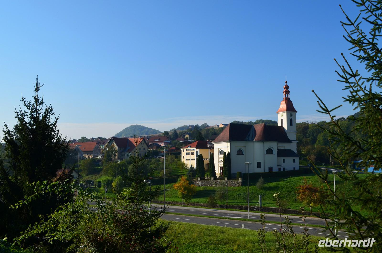 Kurz hinter dem Grenzübergang Spielfeld folgt die Raststätte „Dravsko Polje" wo wir unser erste Rast machen. Die Glocken der nahen Kirche leuten. Die Weiterfahrt bringt uns vorbei an Maribor, dort über die Drau und hinein in die Vulkanberge der Hrvatsko Zagorje. An der Grenze nach Kroatien hissen wir die kroatische Flagge in unserem Reisebus. Deren Farben die der französischen Revolution sind, ergänzt mit dem Wappen, dass die 5 Landesteile und mit den Karos die Bischofssitze widerspiegelt. Kurz vor Zagreb erreichen wir das Einkaufscenter „Free Travel". Hier machen wir heute unsere Mittagspause, können Geld umtauschen und einen kleinen Einblick in die kroatische Einkaufswelt nehmen, bei der auch unser leibliches Wohl nicht zu kurz kommt.