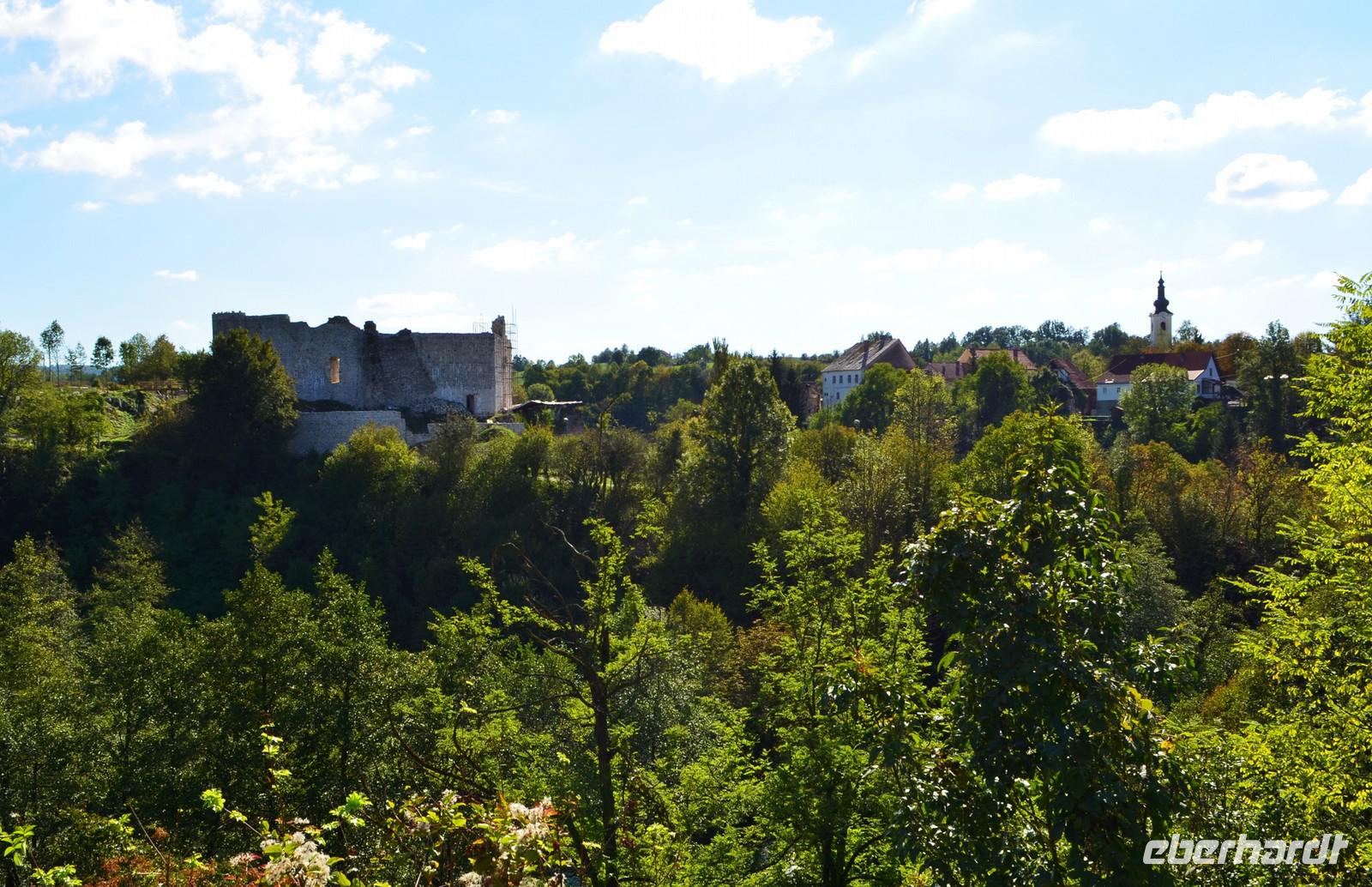 Auf der anderen Talseite, bei den Ruinen der alten Festungen von Slunj, steigen wir wieder in unseren Reisebus.