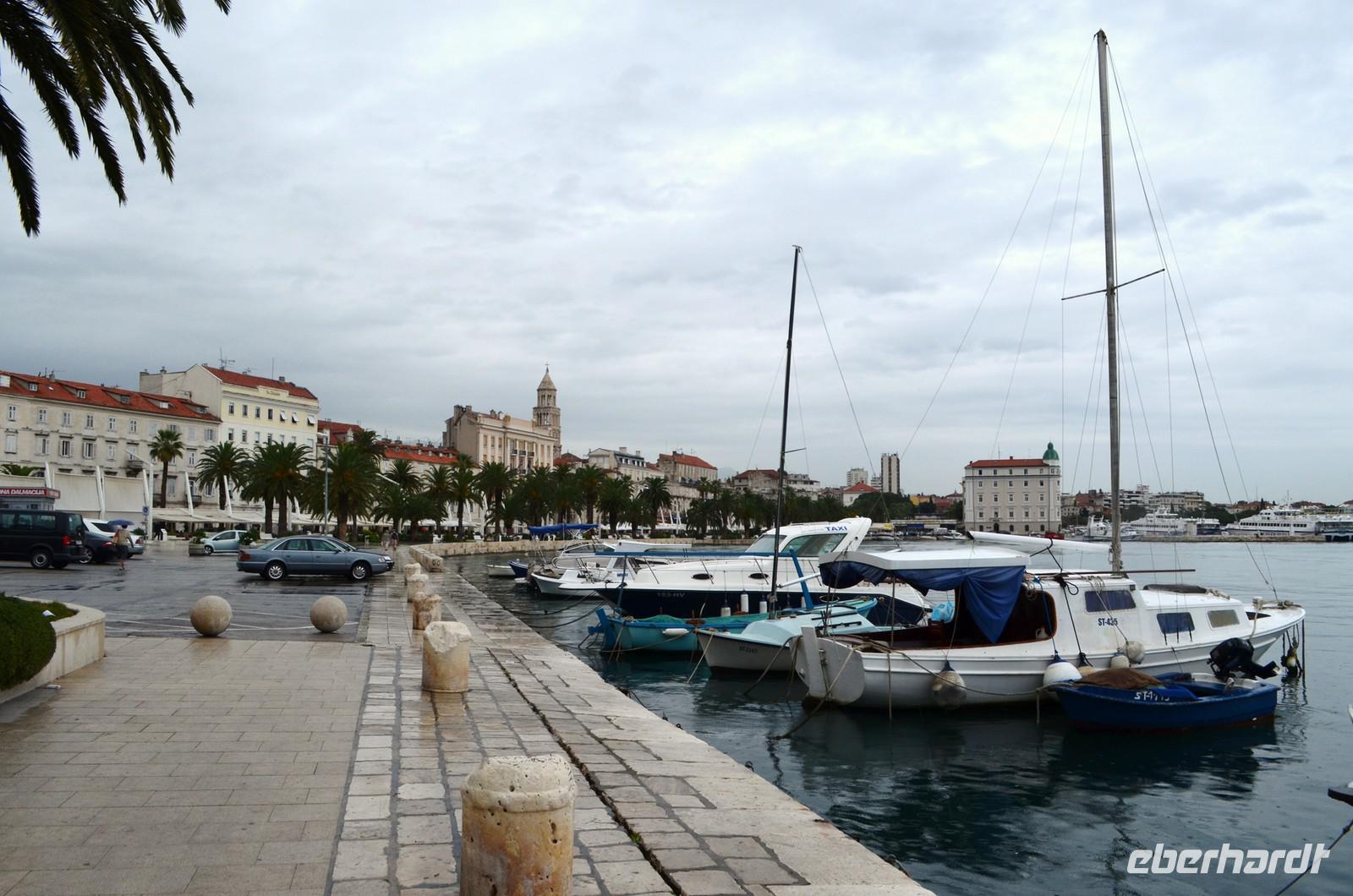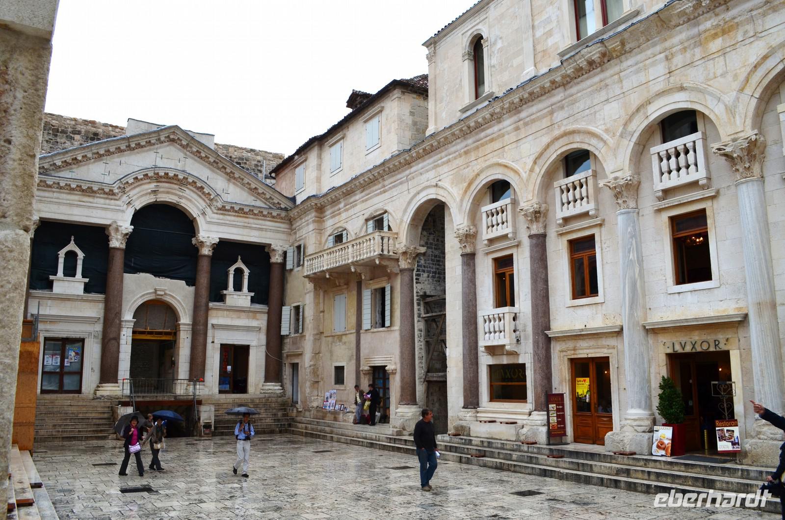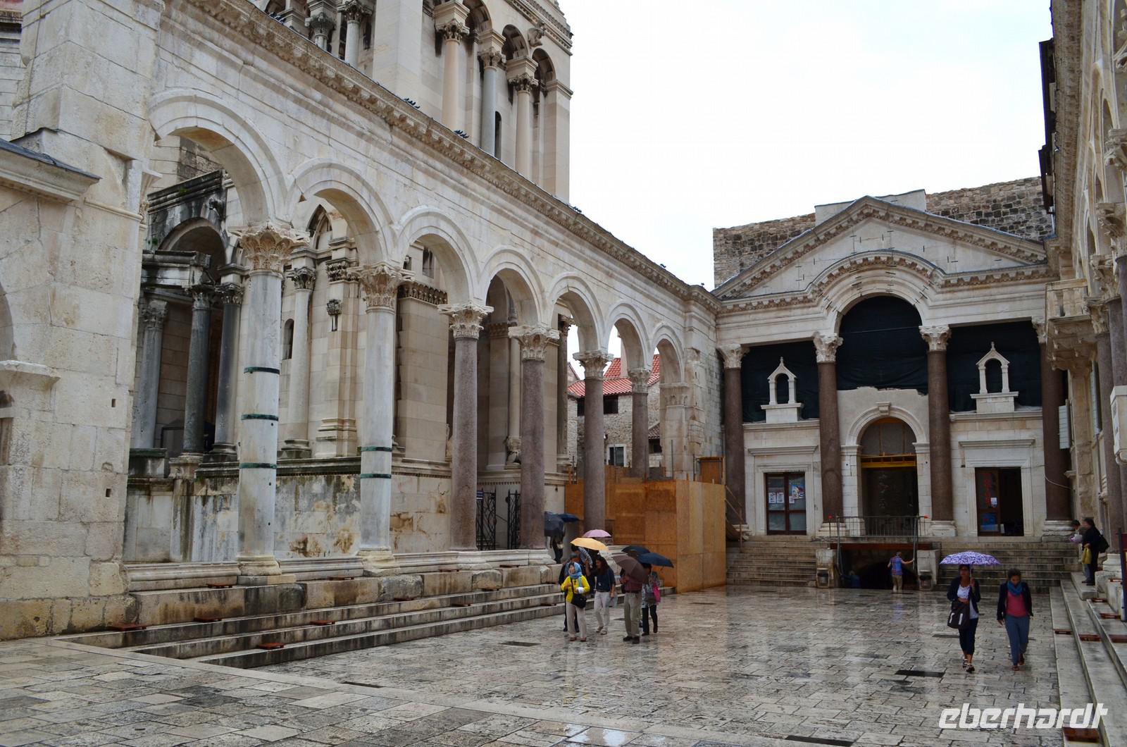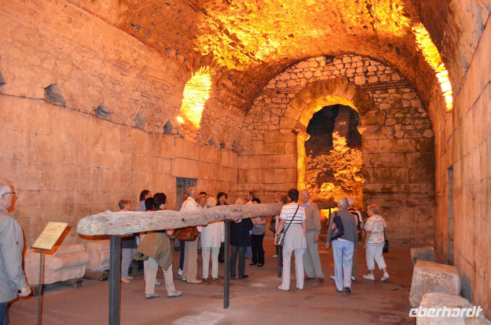 Wieder ein Tag mit schönem Herbstwetter, die Fahrt geht von der großen Kopala hinüber zum Hauptkamm des Velebit-Gebirges, dann über die Autobahn, mit der Tunneldurchfahrt im Velebit zur Adria. Zum Mittag erreichen wir Split an der Riva vor der Altstadt. Vesna, unsere kompetente und nette Stadtführerin erwartet uns schon. Gemeinsam gehen wir in den alten römischen Kaiserpalast mit der darin errichteten Altstadt der Metropole Split. Herrlich und interessant die Kellerräume des Palastes, die engen Gassen, Tore, Säulen und Treppen der Altstadt, mit ihren aneinander-gereihten Stadtpalästen. Leider beginnt es am Ende zu regnen.