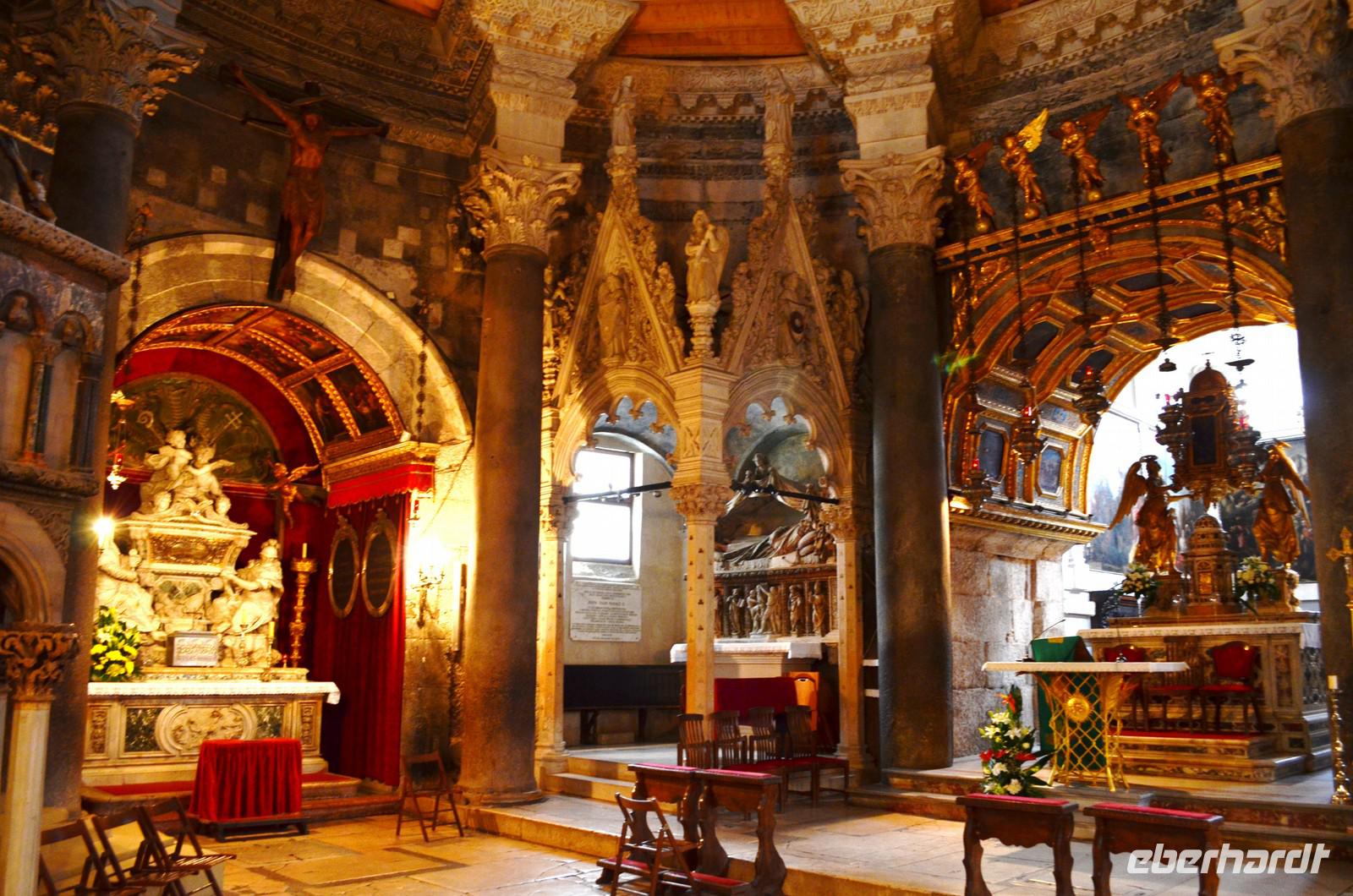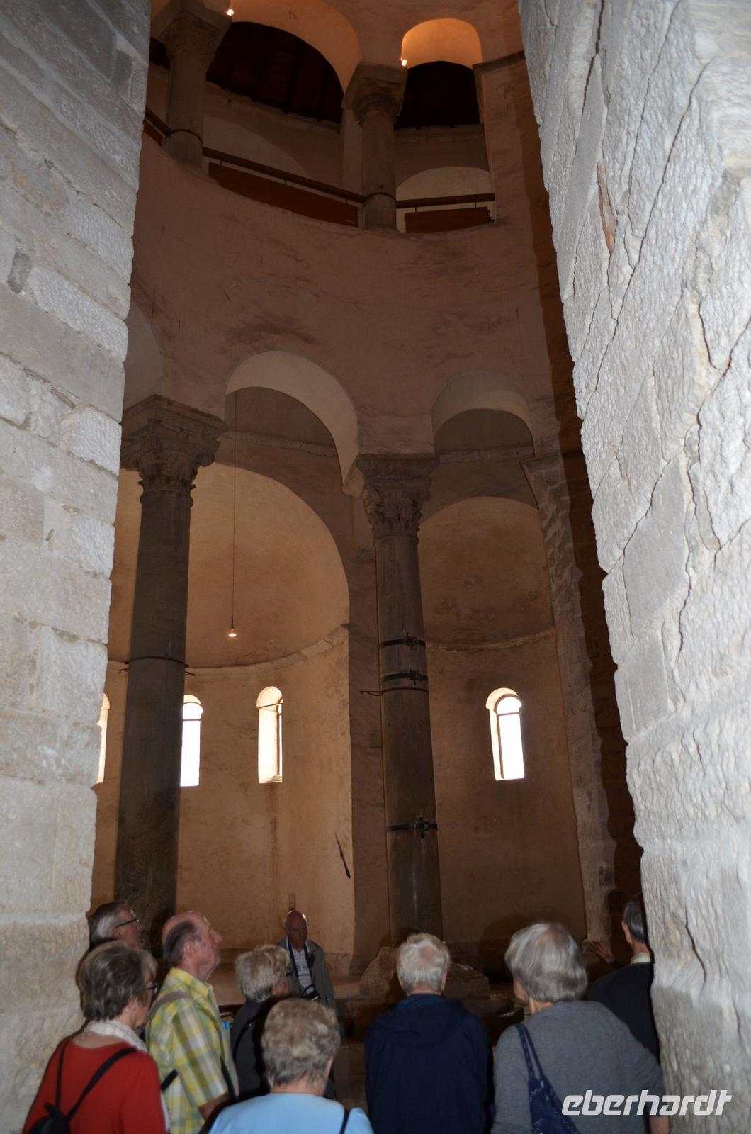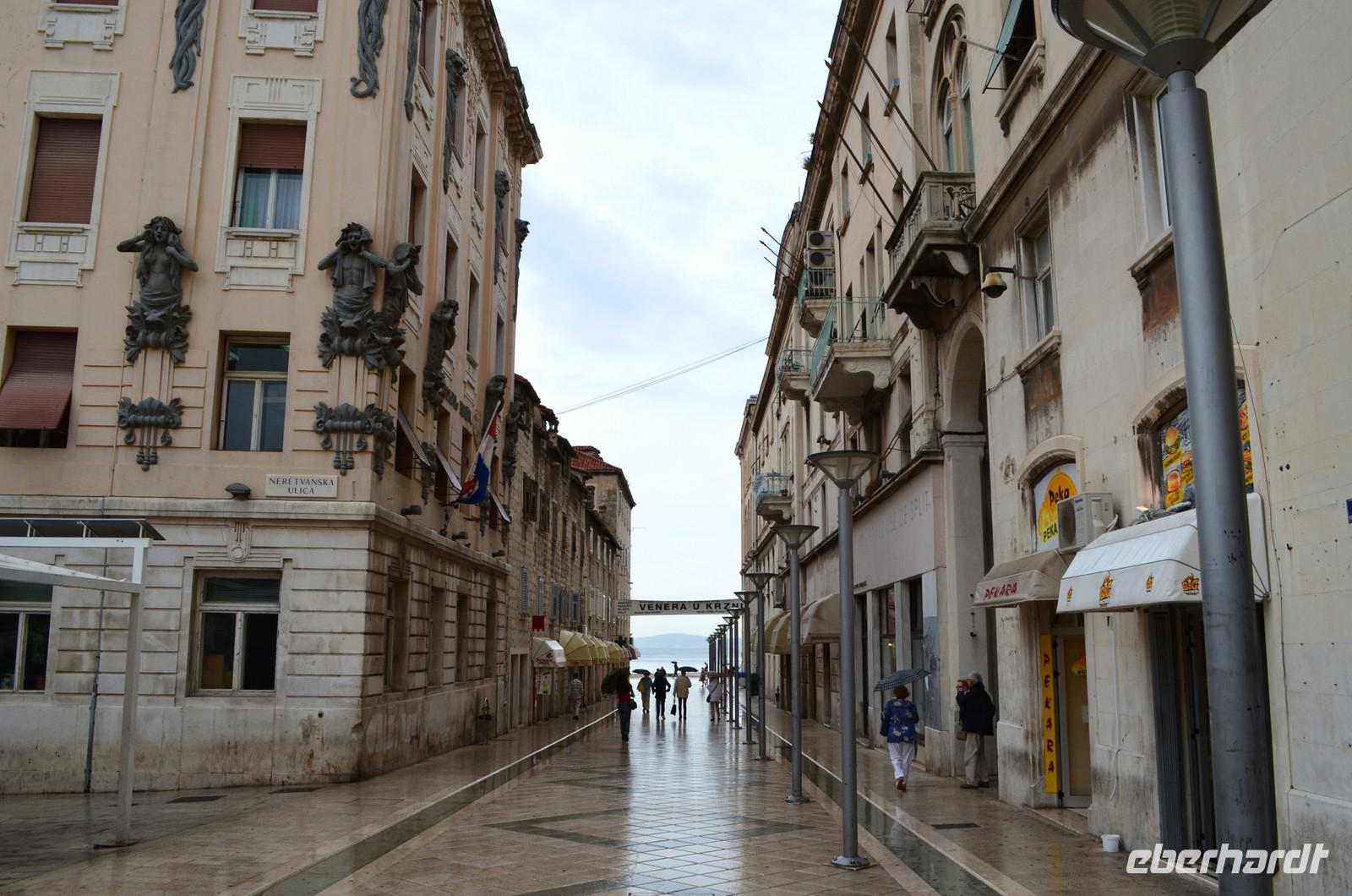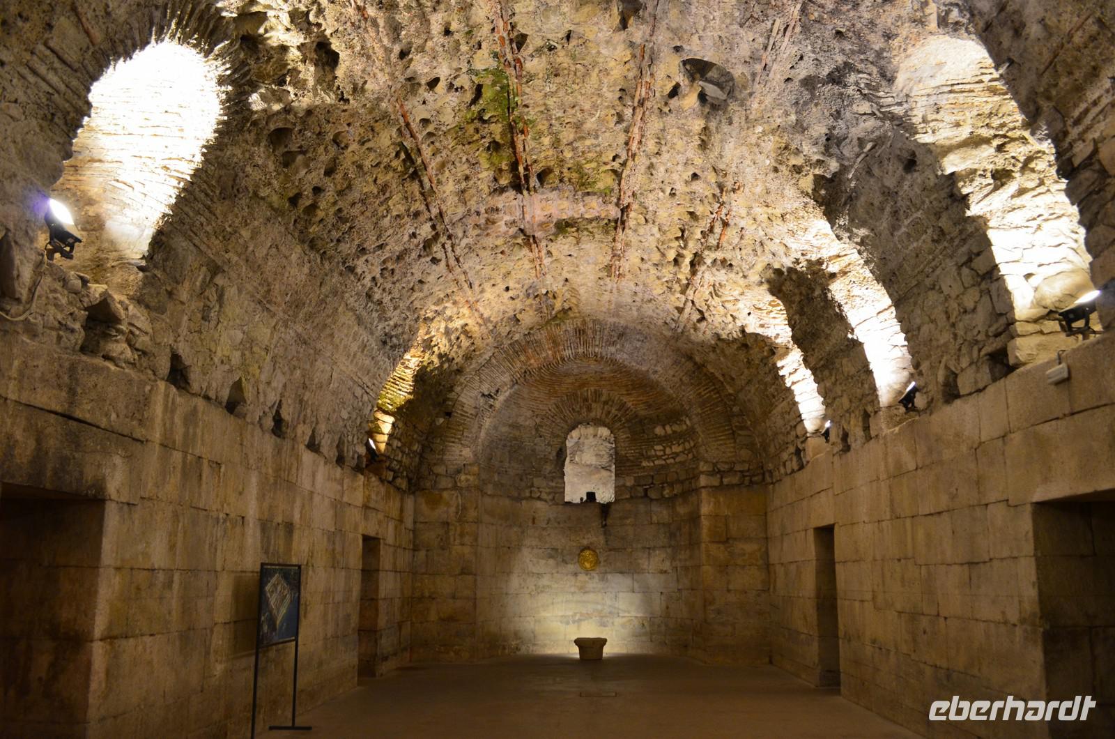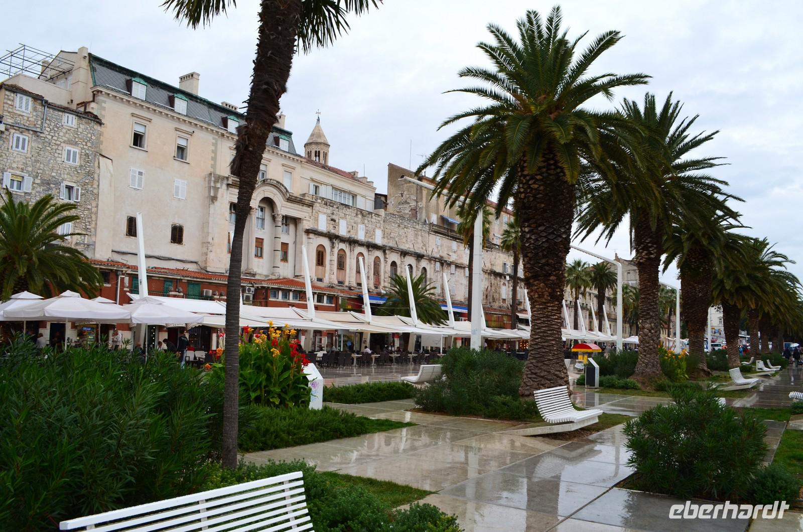 Wieder ein Tag mit schönem Herbstwetter, die Fahrt geht von der großen Kopala hinüber zum Hauptkamm des Velebit-Gebirges, dann über die Autobahn, mit der Tunneldurchfahrt im Velebit zur Adria. Zum Mittag erreichen wir Split an der Riva vor der Altstadt. Vesna, unsere kompetente und nette Stadtführerin erwartet uns schon. Gemeinsam gehen wir in den alten römischen Kaiserpalast mit der darin errichteten Altstadt der Metropole Split. Herrlich und interessant die Kellerräume des Palastes, die engen Gassen, Tore, Säulen und Treppen der Altstadt, mit ihren aneinander-gereihten Stadtpalästen. Leider beginnt es am Ende zu regnen.
