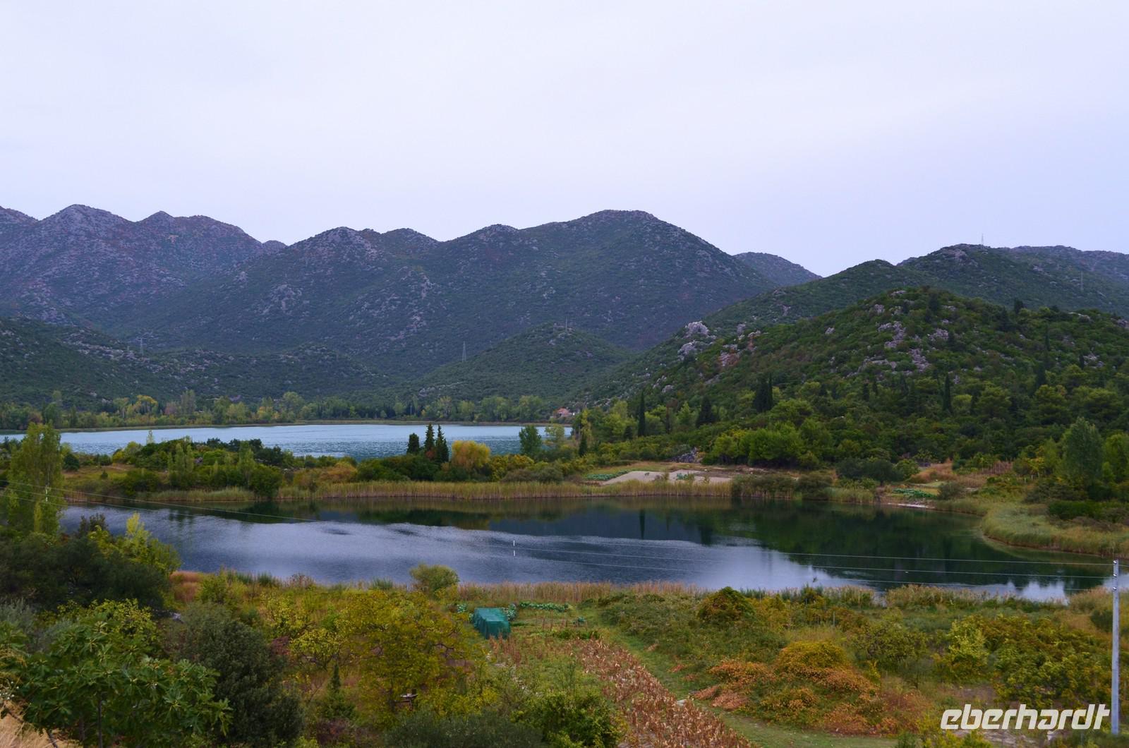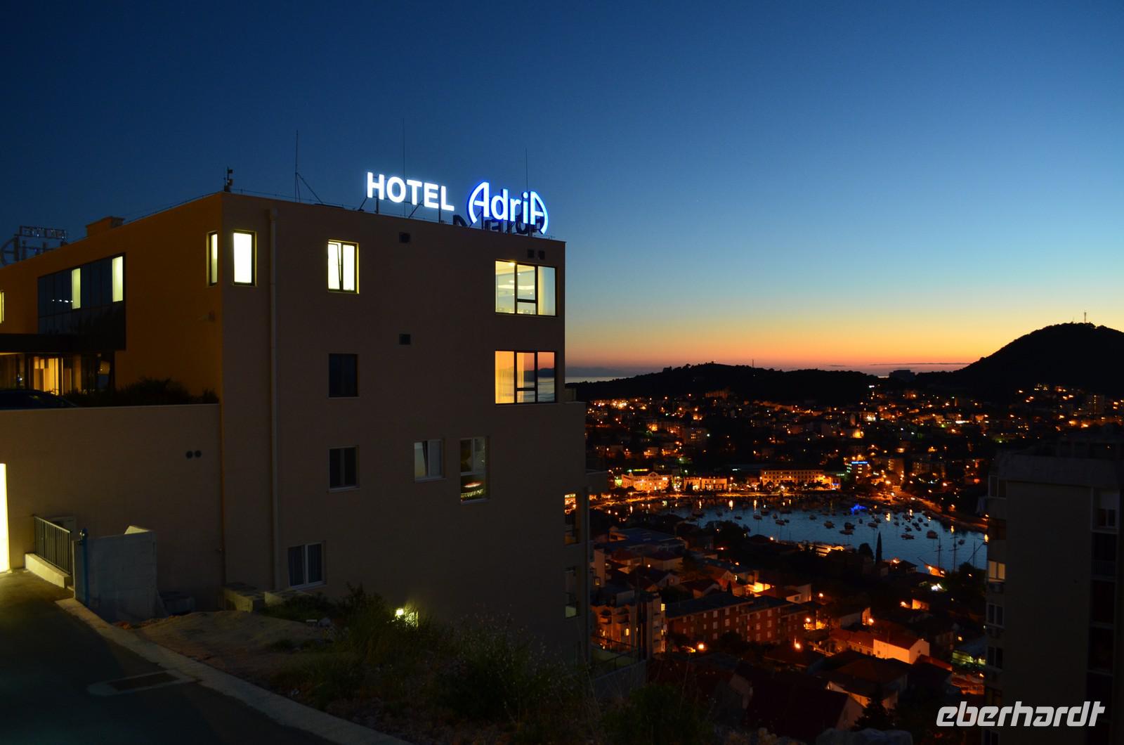 Am Nachmittag dann die Weiterfahrt nach Süden, Richtung Dubrovnik - immer entlang der Uferstraße - vorbei an Vrulja-Bucht mit ihren unterseeischen Quellen und entlang der Makarska Riviera. Es regnet weiter und so sehen wir wenig von der schönen Küste und den Inseln Brac und Hvar davor. So machen wir auch an den Bacinsker Seen nur einen kurzen Stopp. Schon geht die Fahrt weiter durch das Neretvadelta, durch Neum, an der Halbinsel Peljesac und an den Hirschinseln vorbei, wobei es langsam dunkel wird. Schließlich erreichten wir unser Hotel Adria, in dessen Aussichtsrestaurant der Tag einen harmonischen Ausklang findet.