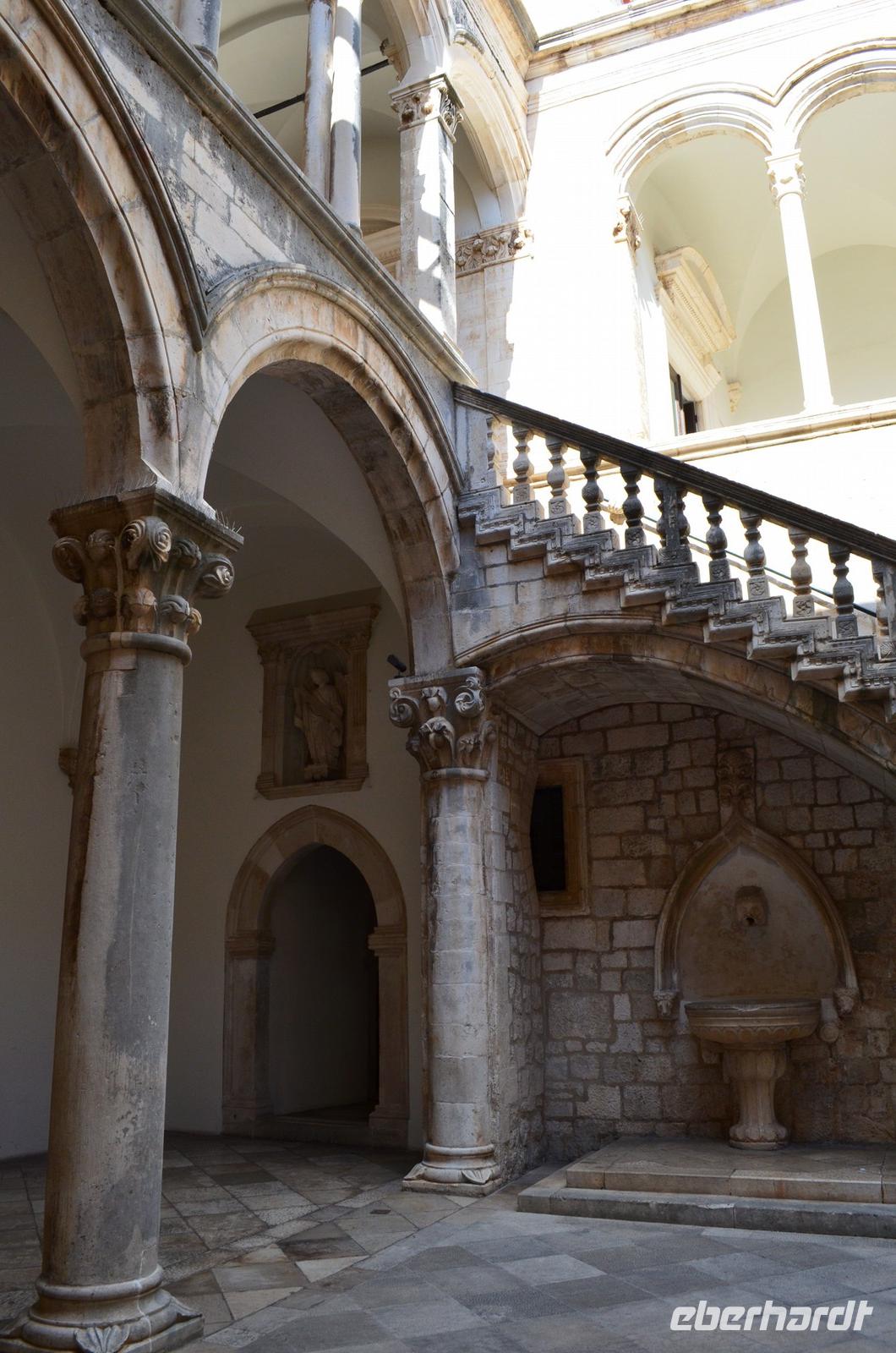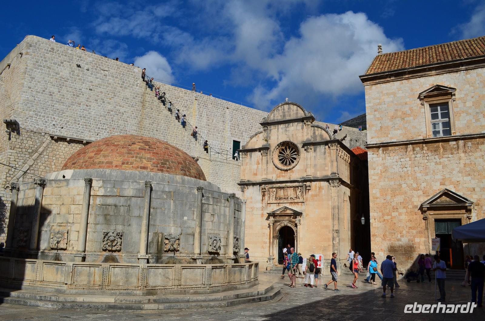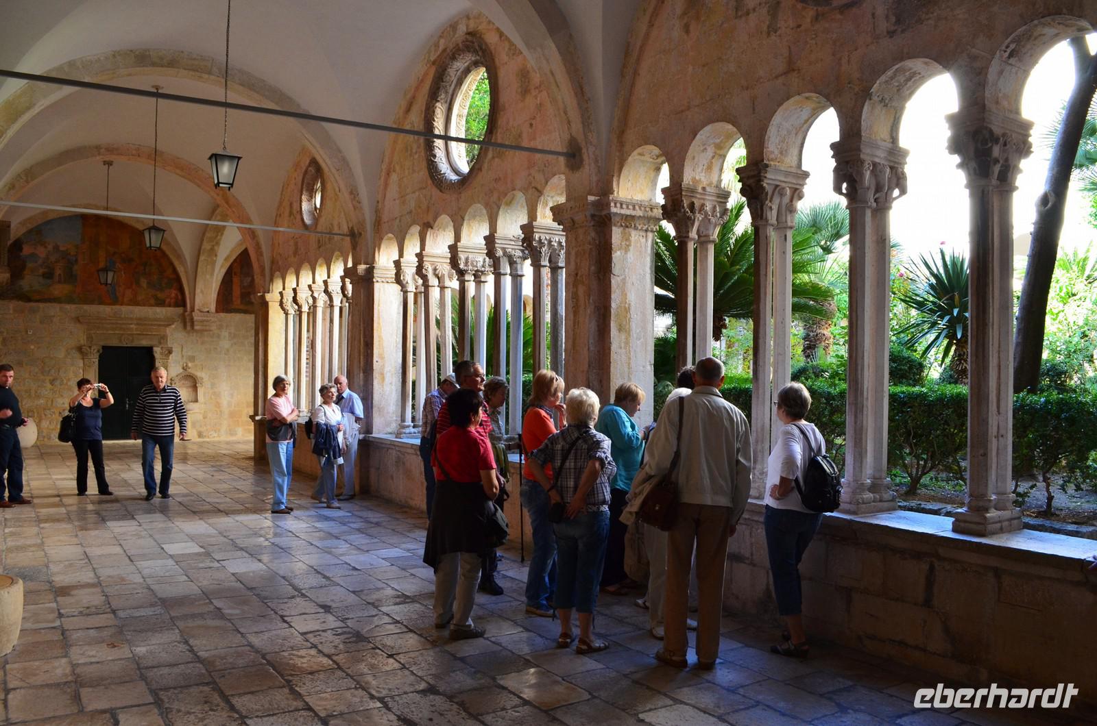 Die Abholung vom Hotel erfolgt durch einen kroatischen Reisebus, der uns zum Pile-Platz bringt, wo wir uns mit der Gästeführerin Antea treffen. Sie zeigt uns bei der heutigen Stadtführung die Altstadt von Dubrovnik, inklusive dem Franziskanerkloster mit seiner alten Apotheke. Weiter geht es durch die reizvollen Gassen dieser Stadt mit ihrer imposanten Geschichte.