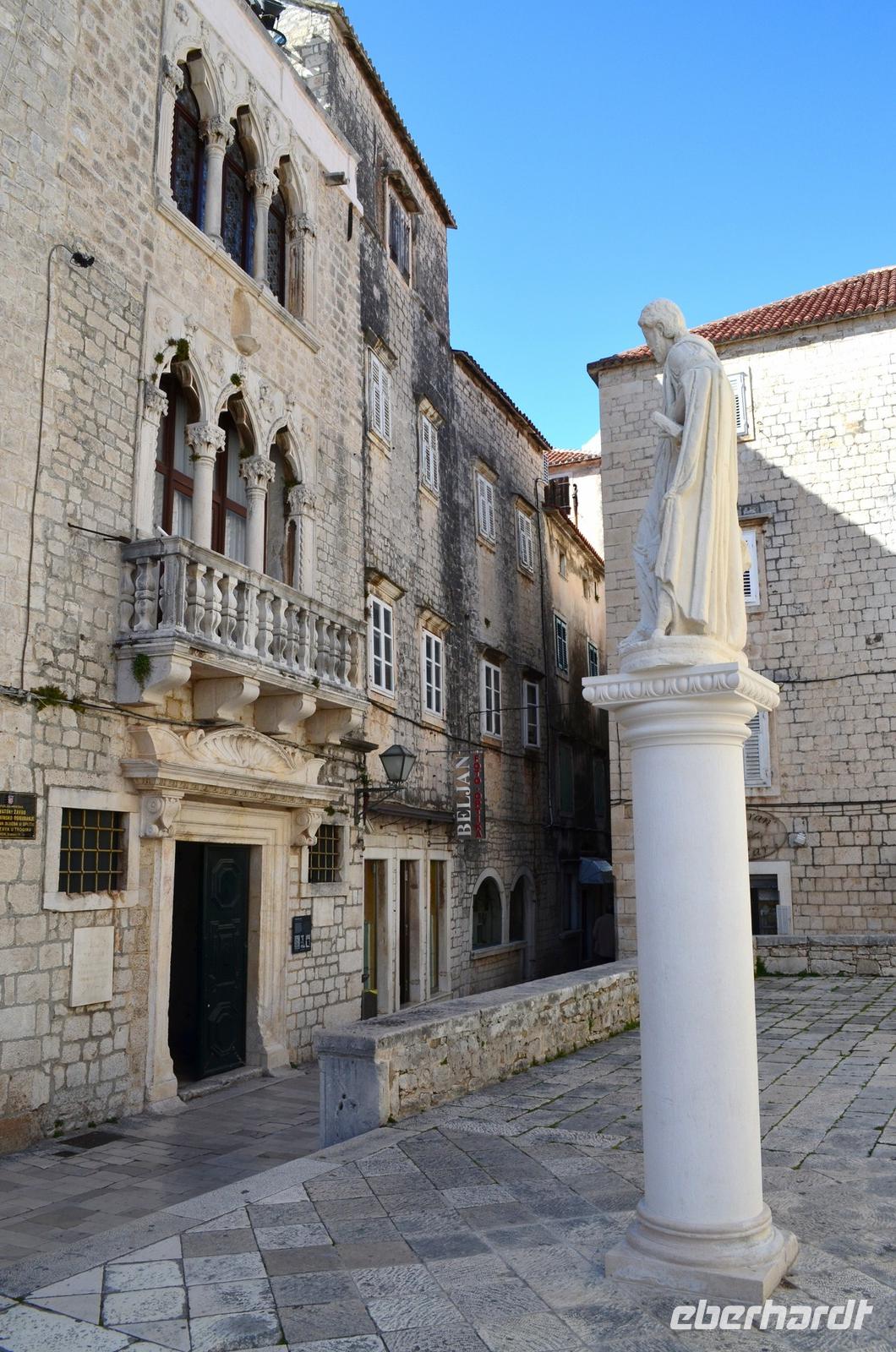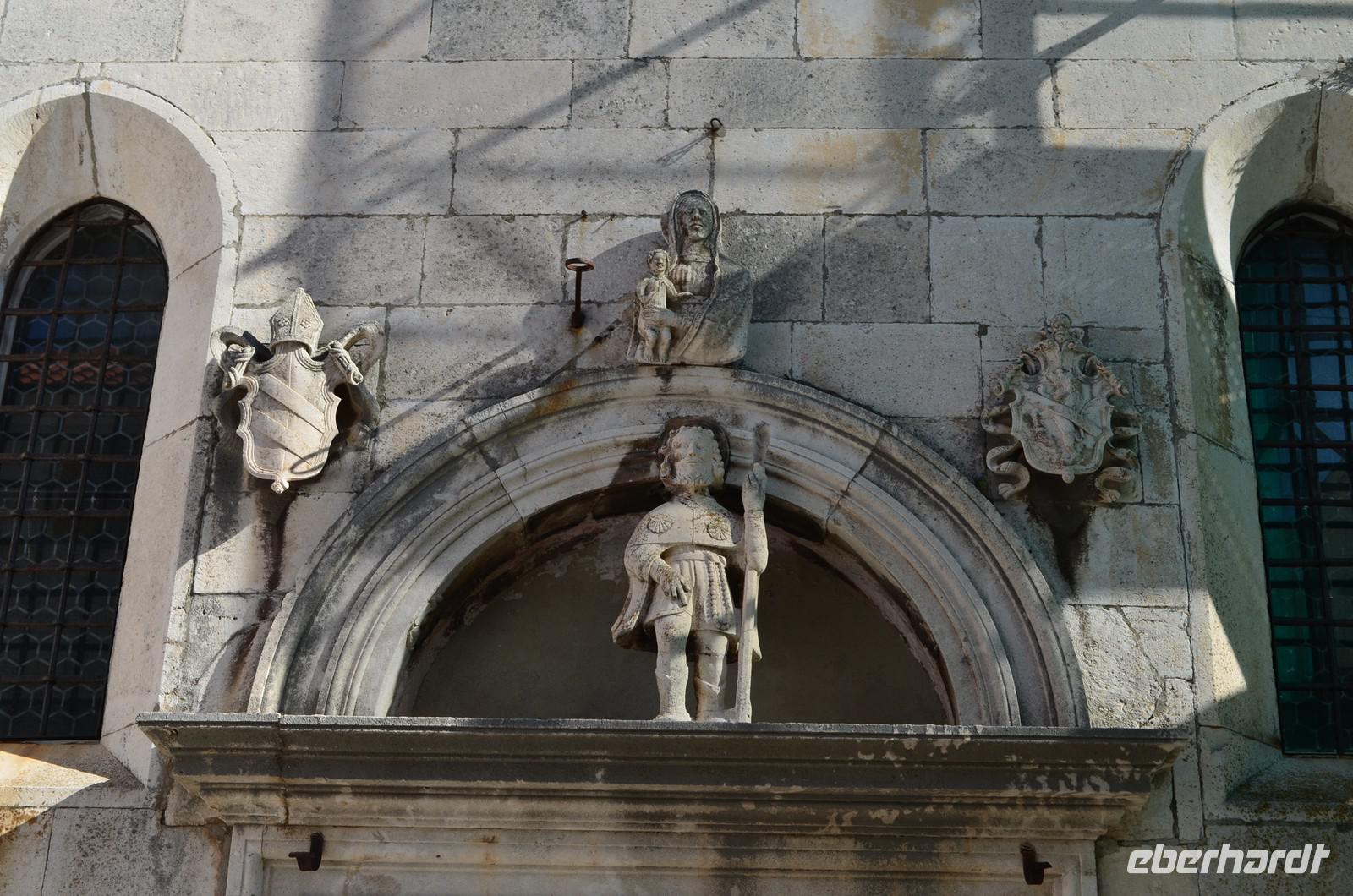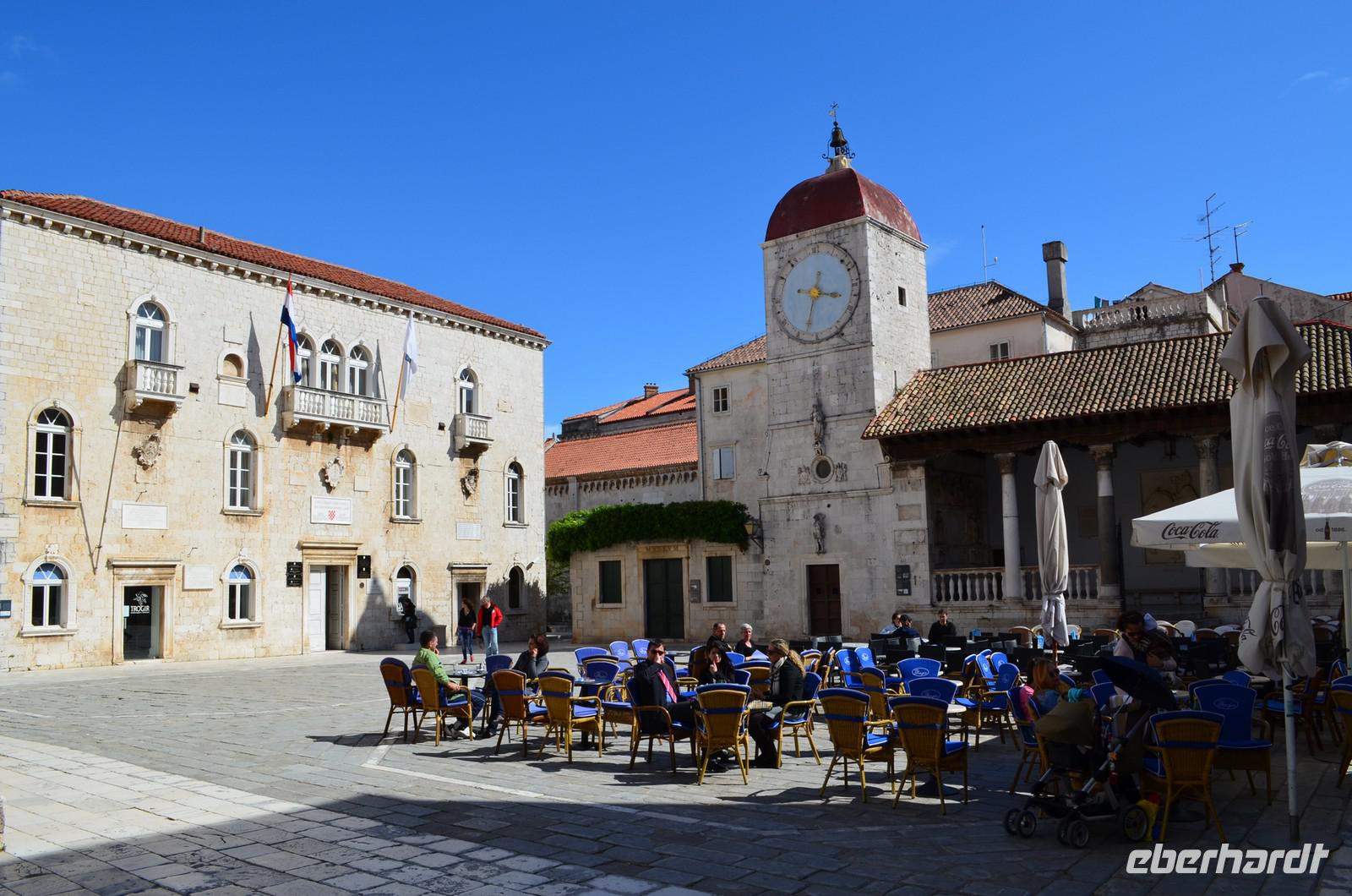 In Trogir starten wir vom Busbahnhof trotzdem zu einer kleinen Stadtführung durch dieses Juwel der Adriastädtchen. Leider prasselt der Regen schon wieder unbarmherzig auf uns herab. Die Fotos von Trogir sind deshalb mit Bildern aus anderen Reisen ergänzt.