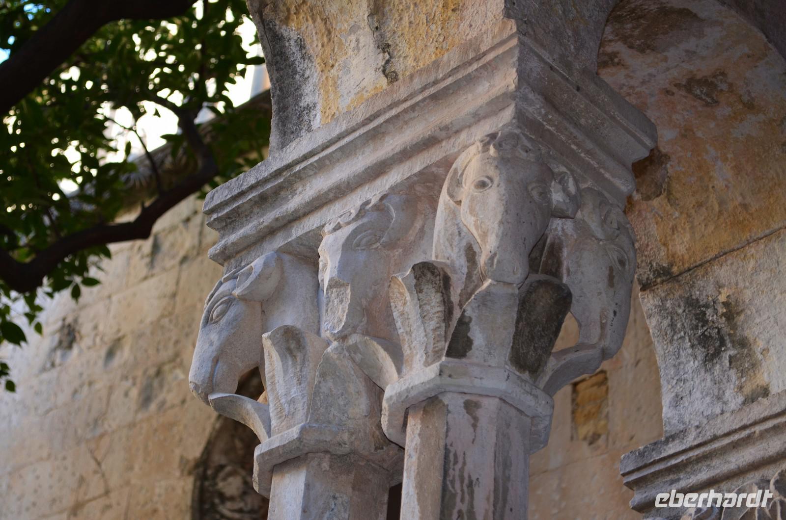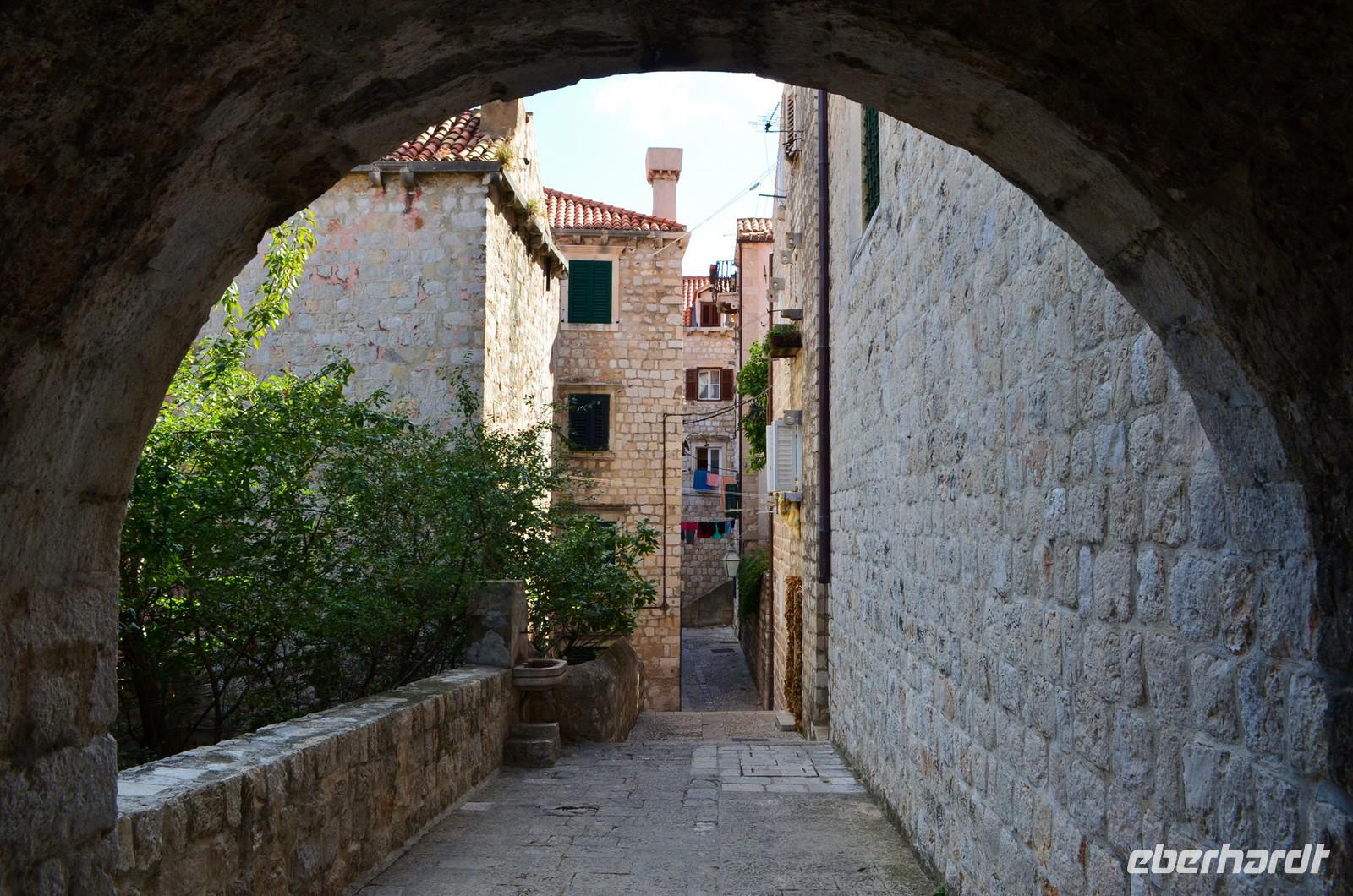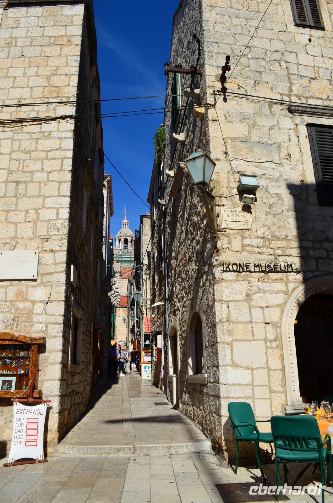 In Trogir starten wir vom Busbahnhof trotzdem zu einer kleinen Stadtführung durch dieses Juwel der Adriastädtchen. Leider prasselt der Regen schon wieder unbarmherzig auf uns herab. Die Fotos von Trogir sind deshalb mit Bildern aus anderen Reisen ergänzt.
