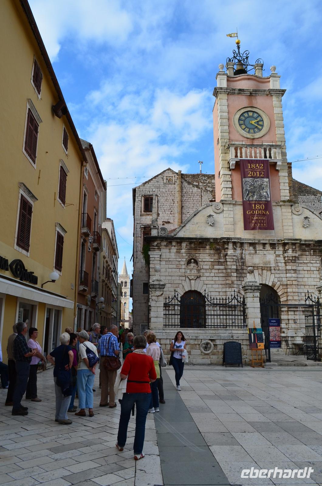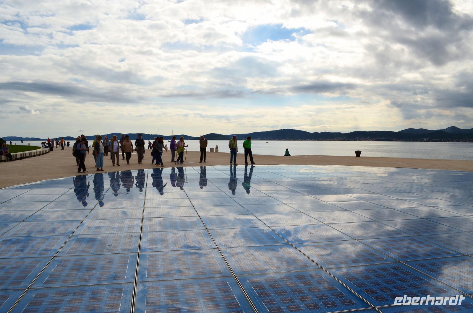 An der Stadtmauer der Altstadt von Zadar erwarten uns schon Lilijana und Nina. Nina übernimmt die Stadtführung - zeigt und erklärt uns die hübsche Stadt, die noch die Spuren vieler ihrer Bewohner aufweist - ob Römer, Venezianer oder natürlich die Kroaten. Letztere haben durch ihre Architekten mit der Wasserorgel und dem Planetensystem neue Attraktionen geschaffen.